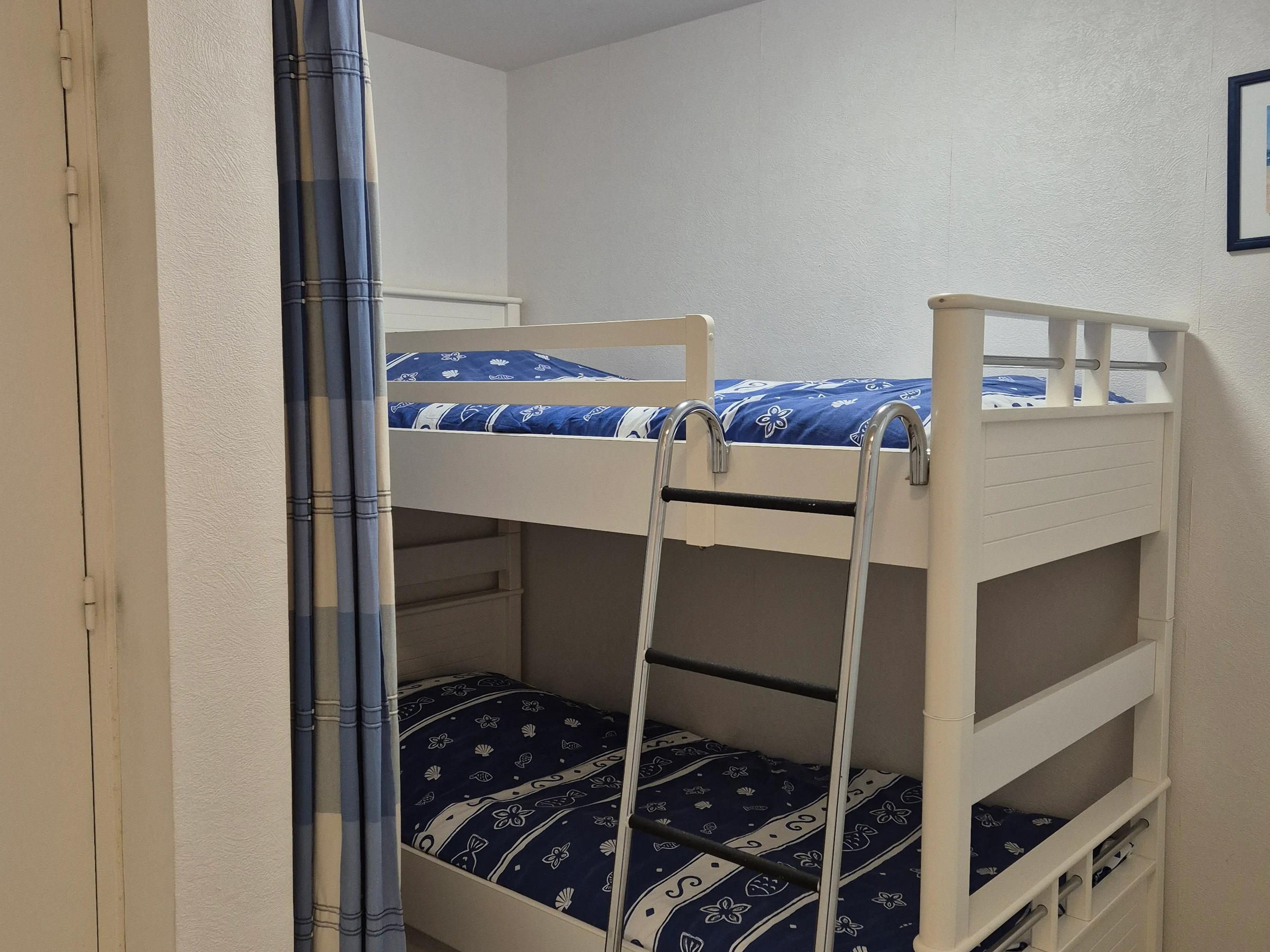 CĂŽtĂ© nuit, vous disposez de 2 chambres confortables, d’une cabine avec lits superposĂ©s, et d’une salle de bains fonctionnelle.