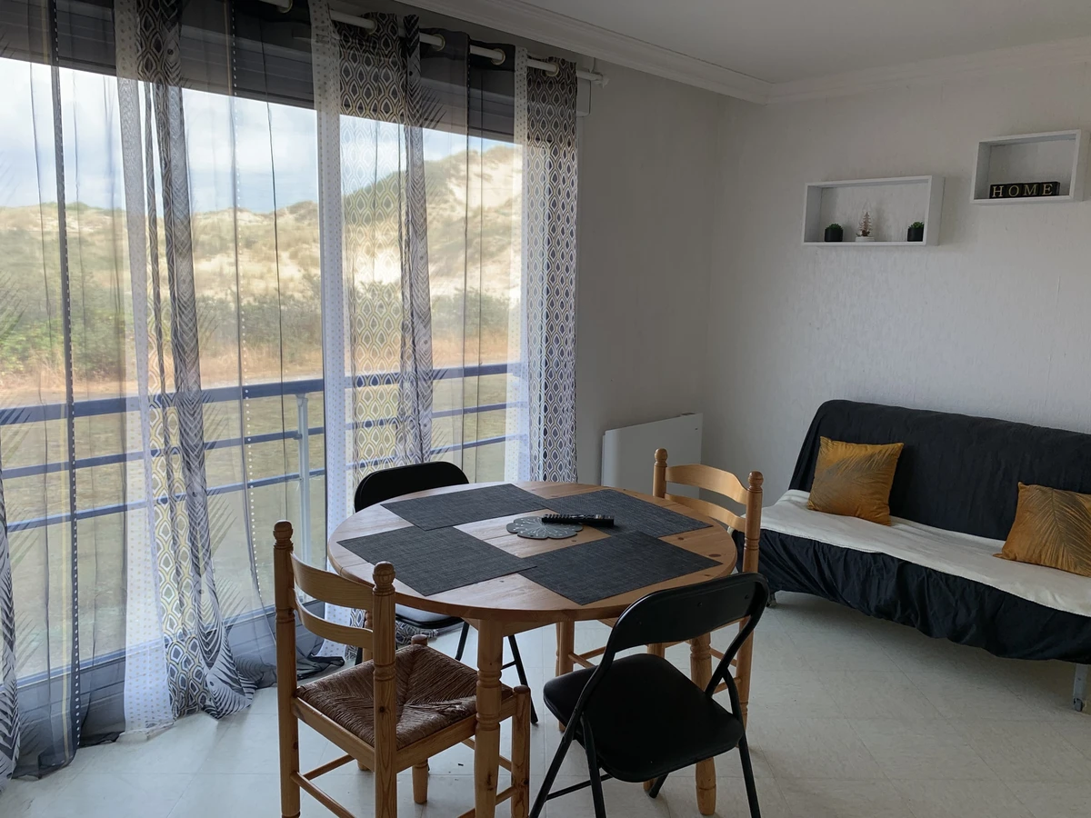 Le séjour offre une vue sur les dunes. Place de parking mise a disposition.