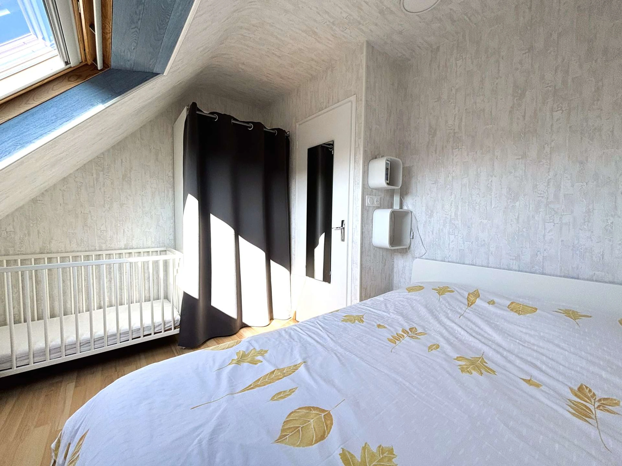 - Une chambre double avec lit de 140x200cm + 1 lit bébé à barreau