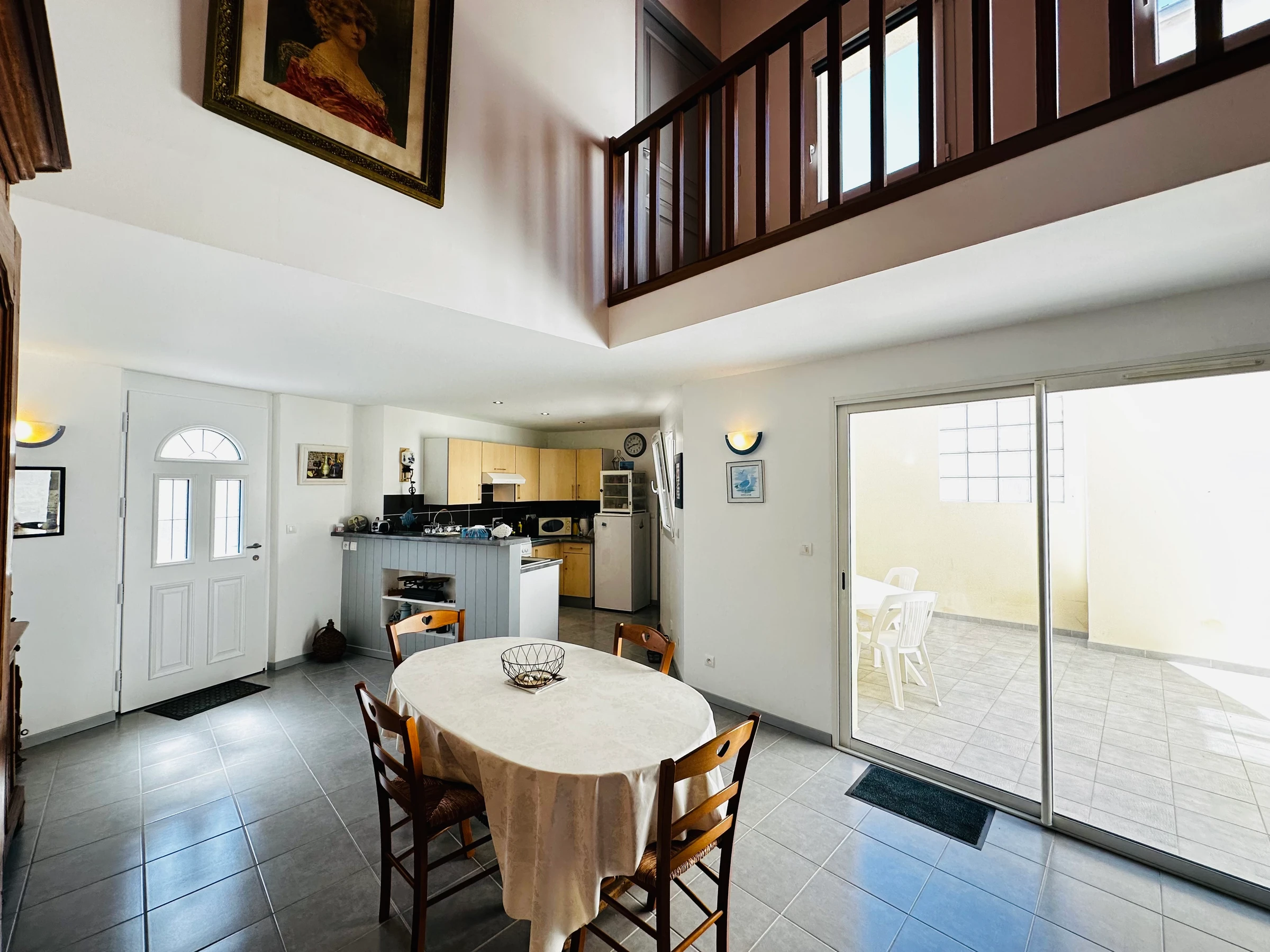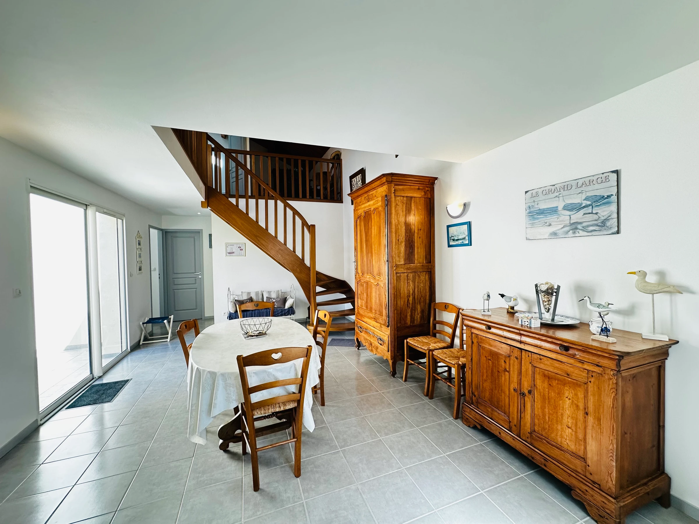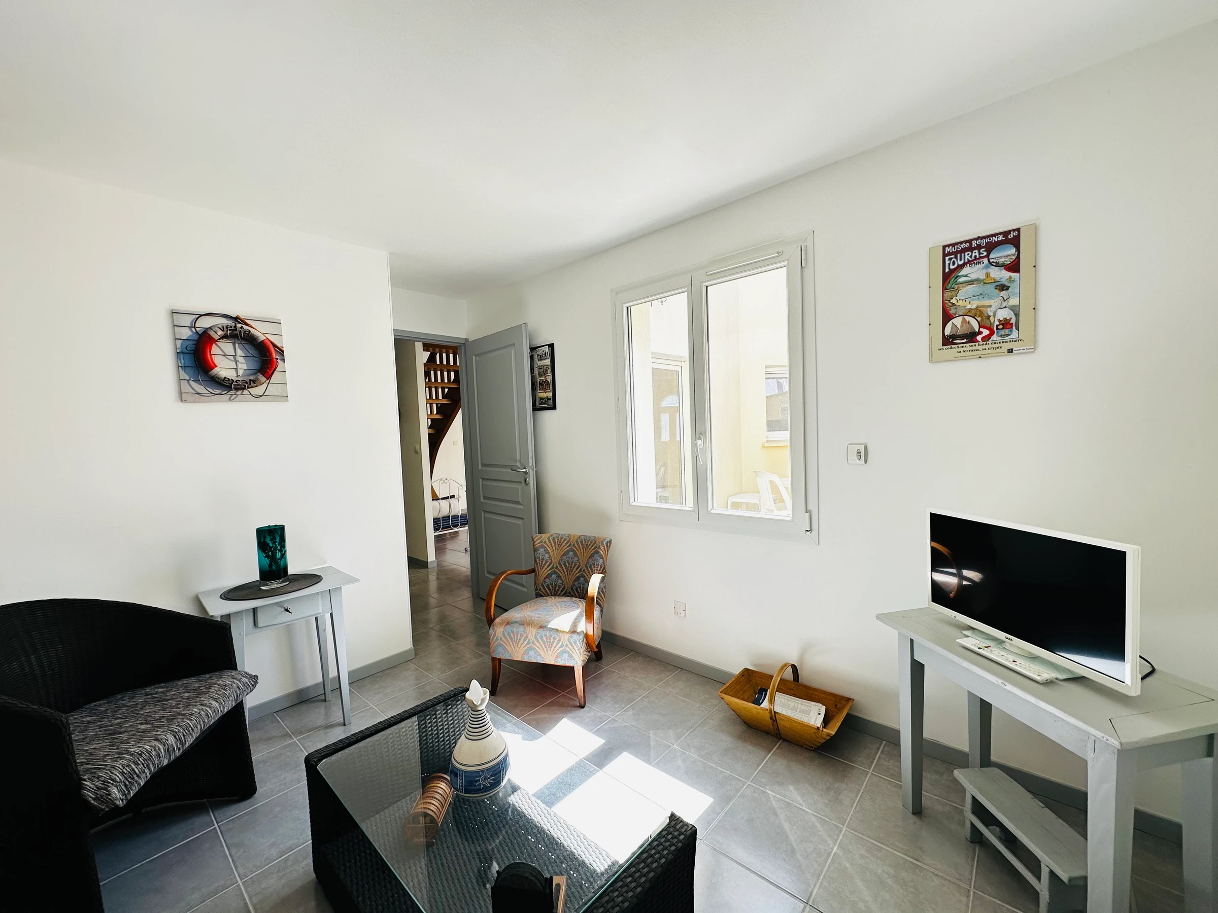 Pour des vacances familiales, maison de ville d'une surface de 120 m² et aménagée pour 5 personnes, à quelques mètres des plages et du centre ville. En RDC : séjour-salon, cuisine ouverte, arrière cuisine, WC, salle d'eau. À l'étage: mezzanine bureau, 3 chambres, salle d'eau. Cour fermée. Aménagement cuisine : aspirateur, frigo-congélateur, hotte, lave vaisselle, ... Éléments de confort : TV écran plat... Équipements de loisirs : salon de jardin, barbecue, parasol... Couchage: 2 X 140. Stationnement. Surface : 120 m². Située à 200m de la plage sud et du plein centre ville, à 500m de la Grande Plage. À REGLER lors de votre arrivée : dépôts de garantie de 600 € pour la location, 150 € pour le ménage, et taxe de séjour. SERVICES EN OPTION à prévoir avant l’arrivée : draps 12 € par lit par semaine, lot de 2 draps de bain ou de plage 12 € par semaine, lot de 2 tapis de bain 7 € par semaine, linge de cuisine (2 torchons et 2 essuie-mains) 7 € par semaine. Ménage : 150 €. La location est consentie pour un séjour qui commence le jour de l’arrivée à partir de 14h30 et se termine le jour du départ à 10h00 au plus tard.