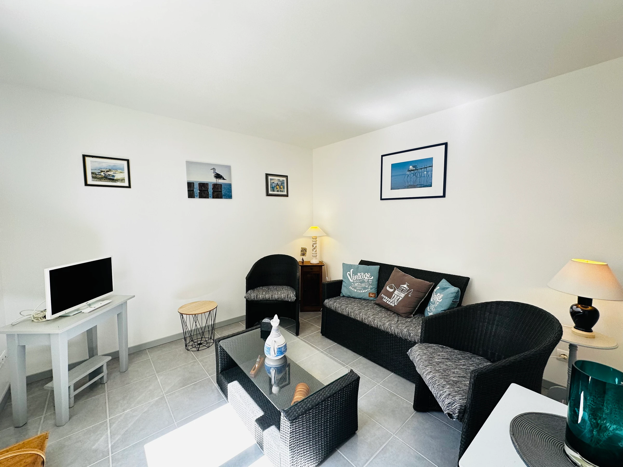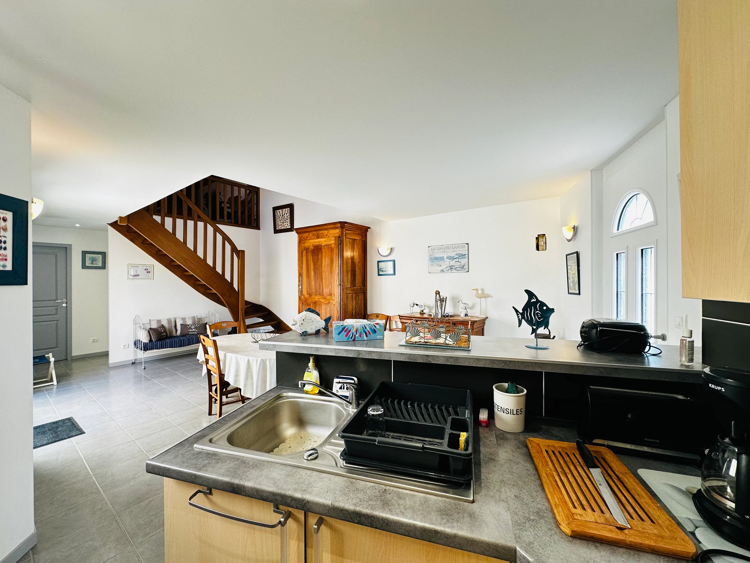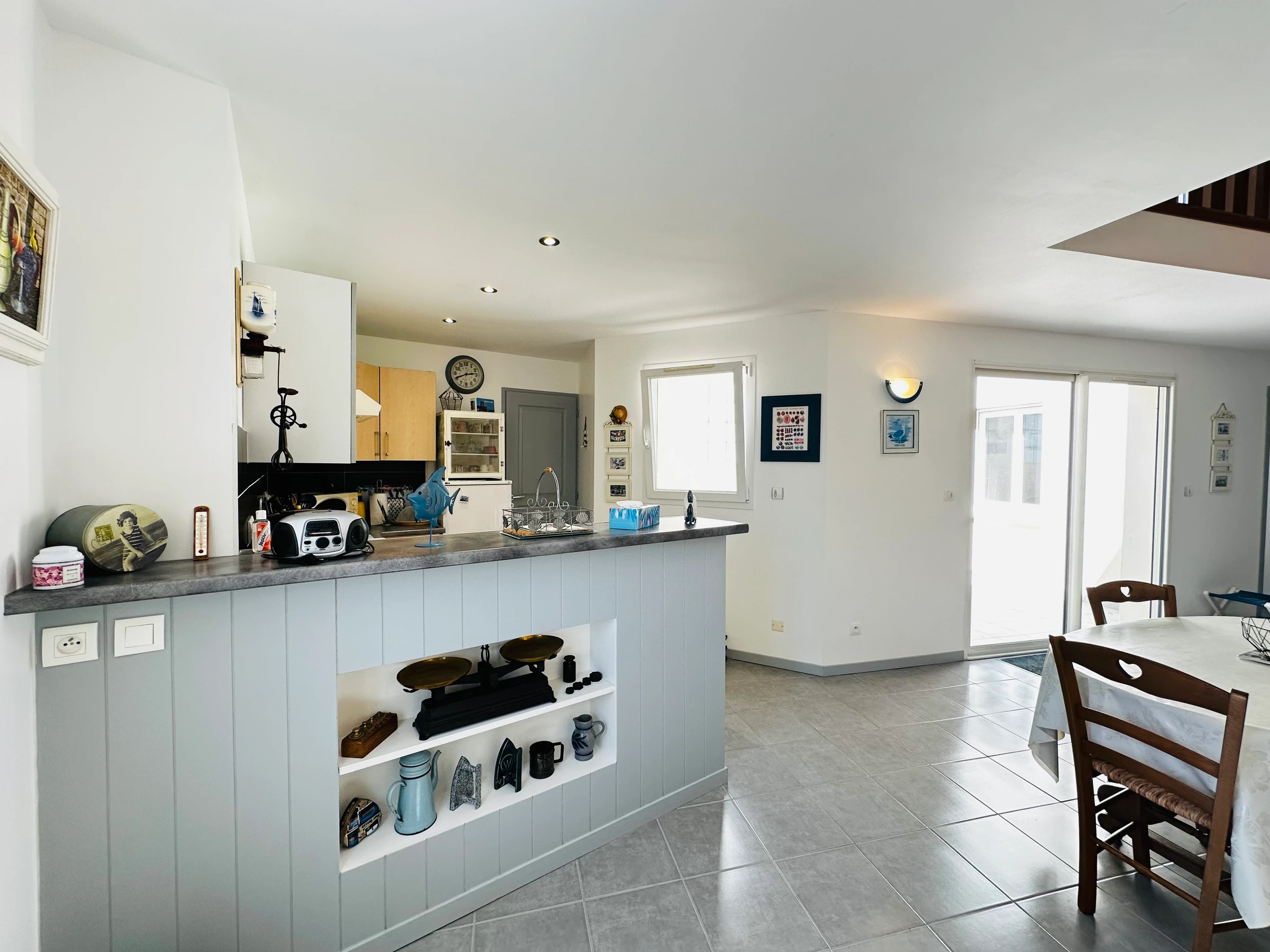 Pour des vacances familiales, maison de ville d'une surface de 120 m² et aménagée pour 5 personnes, à quelques mètres des plages et du centre ville. En RDC : séjour-salon, cuisine ouverte, arrière cuisine, WC, salle d'eau. À l'étage: mezzanine bureau, 3 chambres, salle d'eau. Cour fermée. Aménagement cuisine : aspirateur, frigo-congélateur, hotte, lave vaisselle, ... Éléments de confort : TV écran plat... Équipements de loisirs : salon de jardin, barbecue, parasol... Couchage: 2 X 140. Stationnement. Surface : 120 m². Située à 200m de la plage sud et du plein centre ville, à 500m de la Grande Plage. À REGLER lors de votre arrivée : dépôts de garantie de 600 € pour la location, 150 € pour le ménage, et taxe de séjour. SERVICES EN OPTION à prévoir avant l’arrivée : draps 12 € par lit par semaine, lot de 2 draps de bain ou de plage 12 € par semaine, lot de 2 tapis de bain 7 € par semaine, linge de cuisine (2 torchons et 2 essuie-mains) 7 € par semaine. Ménage : 150 €. La location est consentie pour un séjour qui commence le jour de l’arrivée à partir de 14h30 et se termine le jour du départ à 10h00 au plus tard.