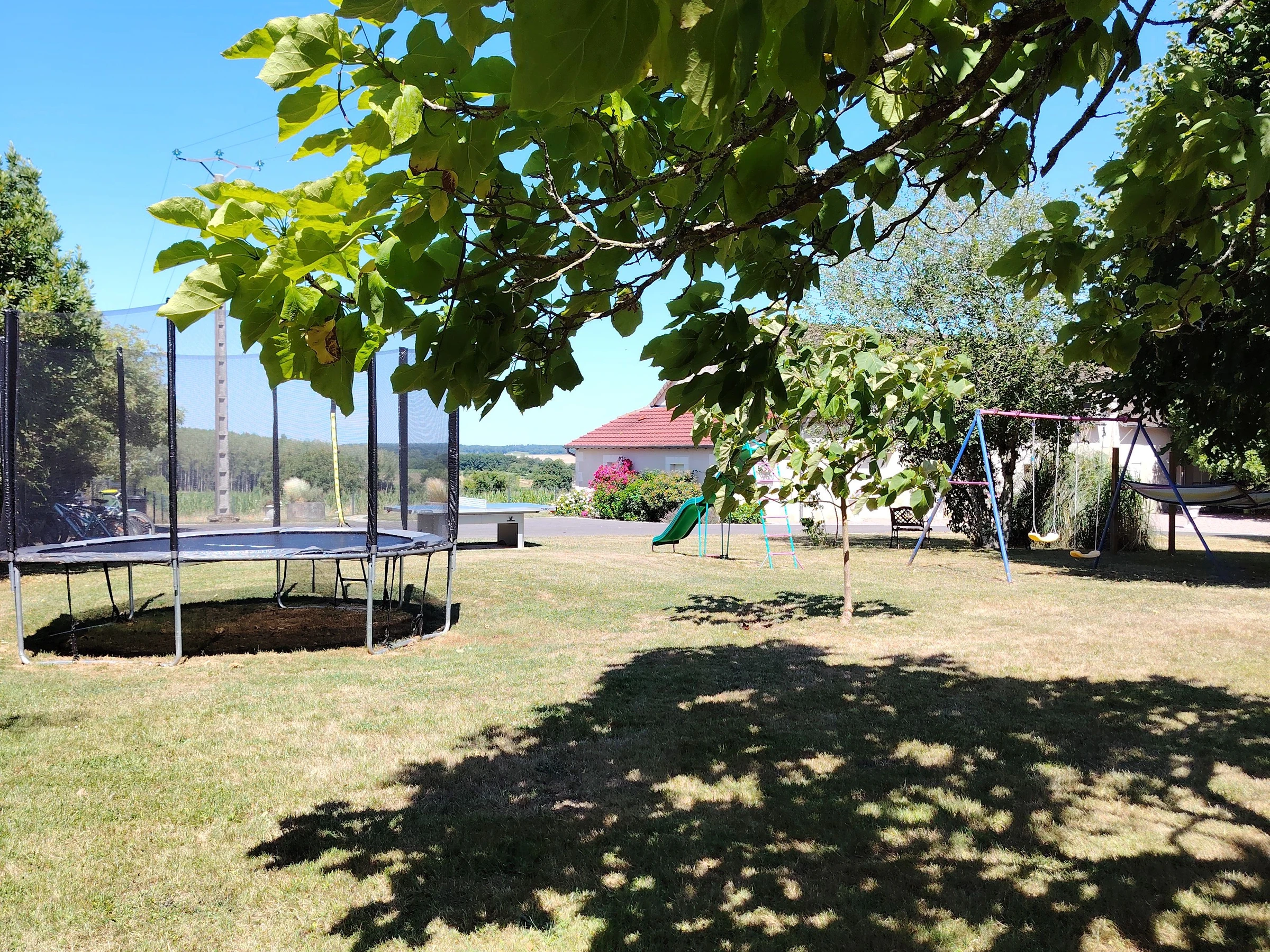 Vous pourrez admirer une vue panoramique sur la campagne environnante. Les installations comprennent un terrain de pétanque, une aire de jeux avec portique, toboggan, table de ping-pong et trampoline ( du 15 avril au 30 septembre) pour les enfants, offrant ainsi des moments de divertissement pour toute la famille. Cette maison dispose d'une terrasse privative et d'un grand jardin clos partagé avec un autre gîte pouvant accueillir 6 personnes.