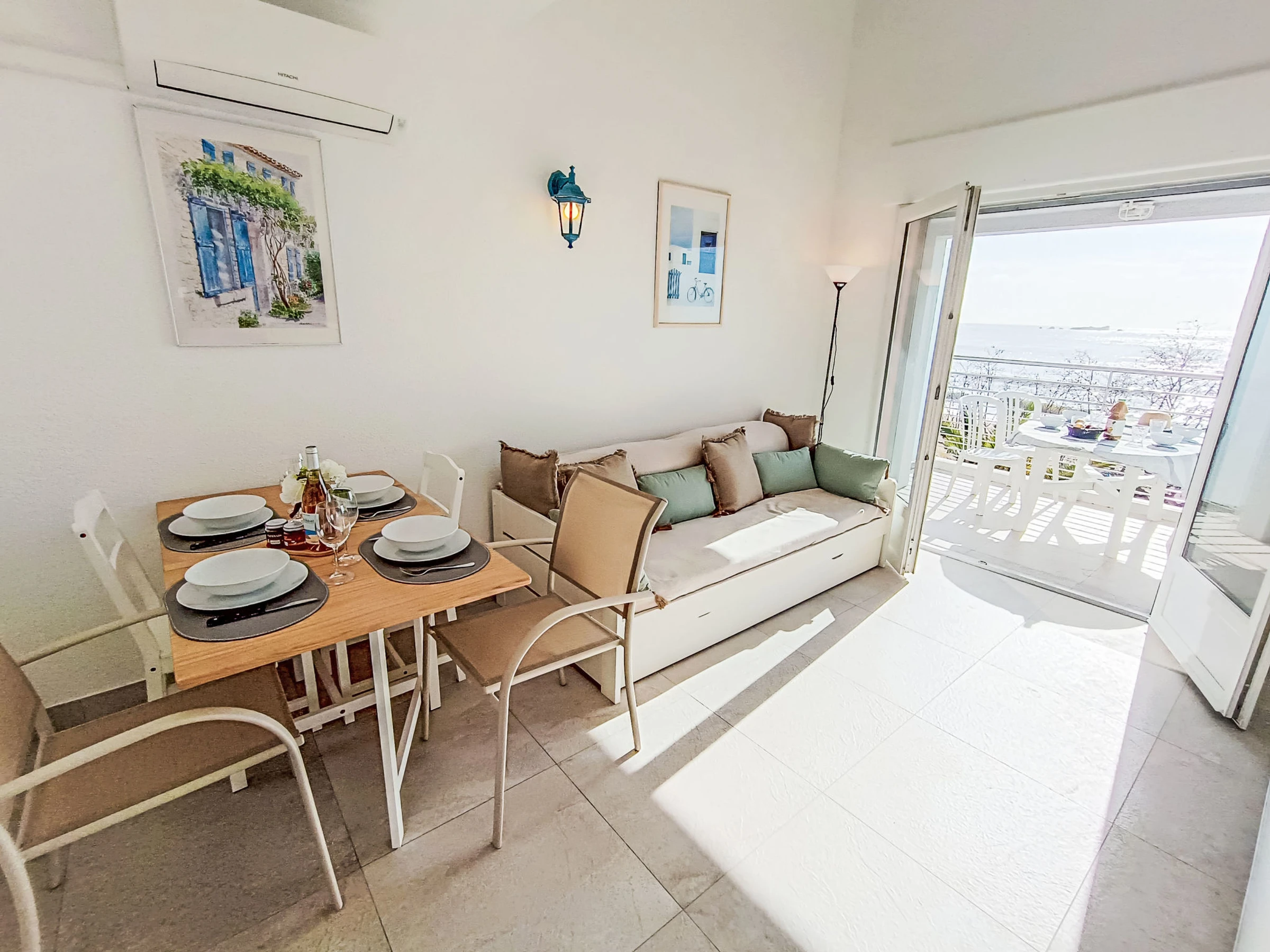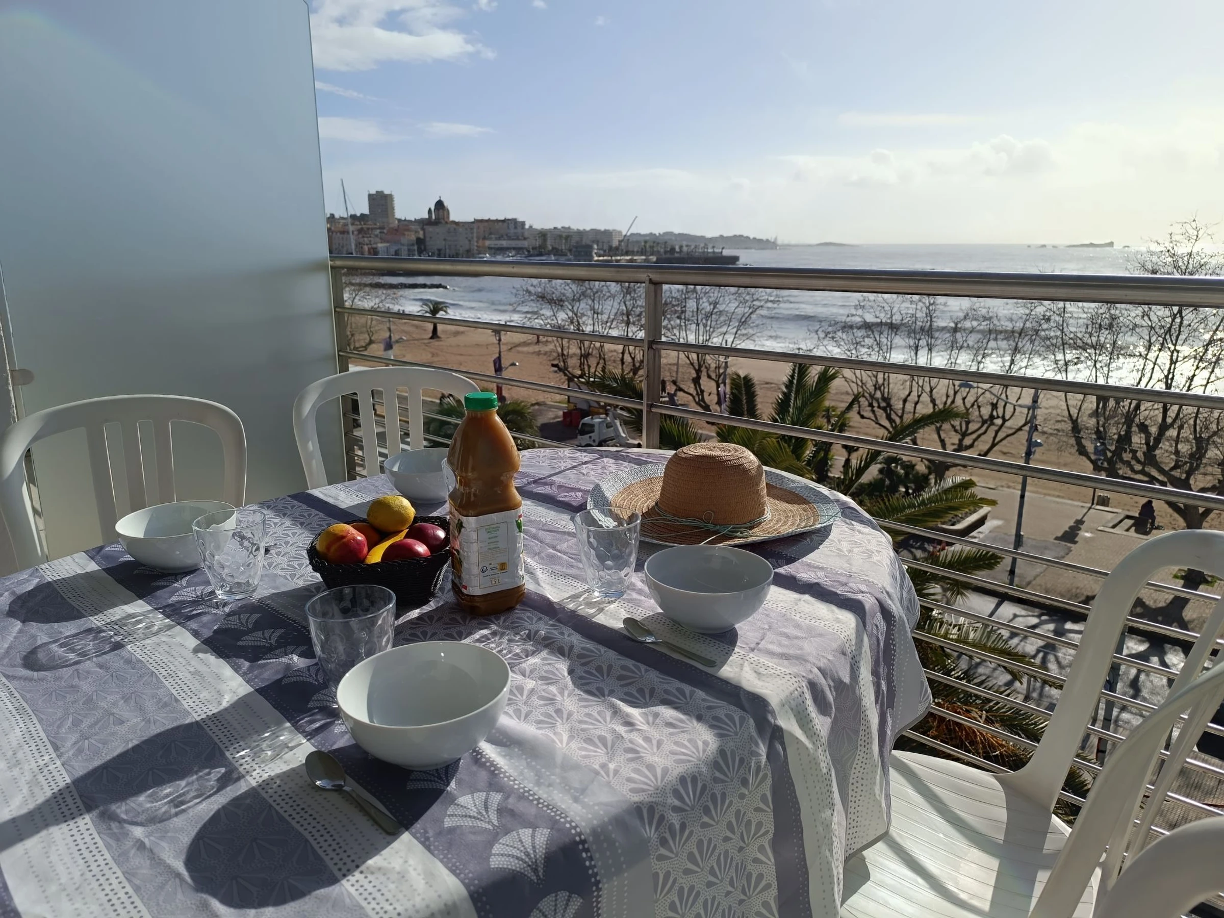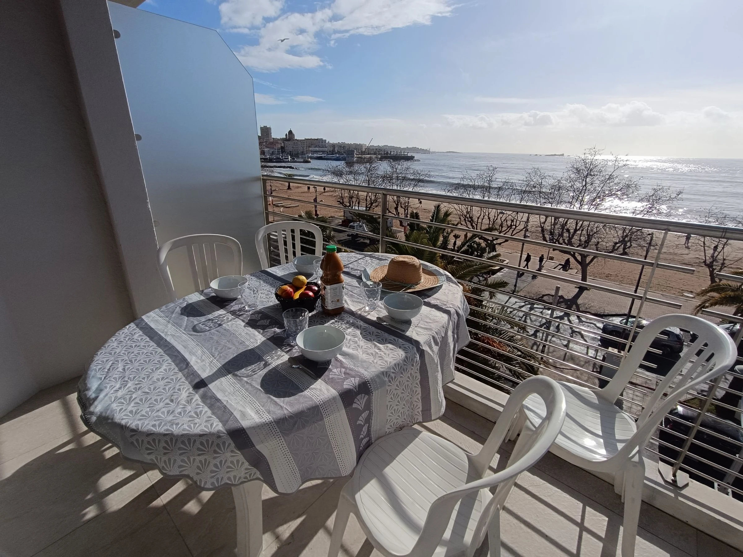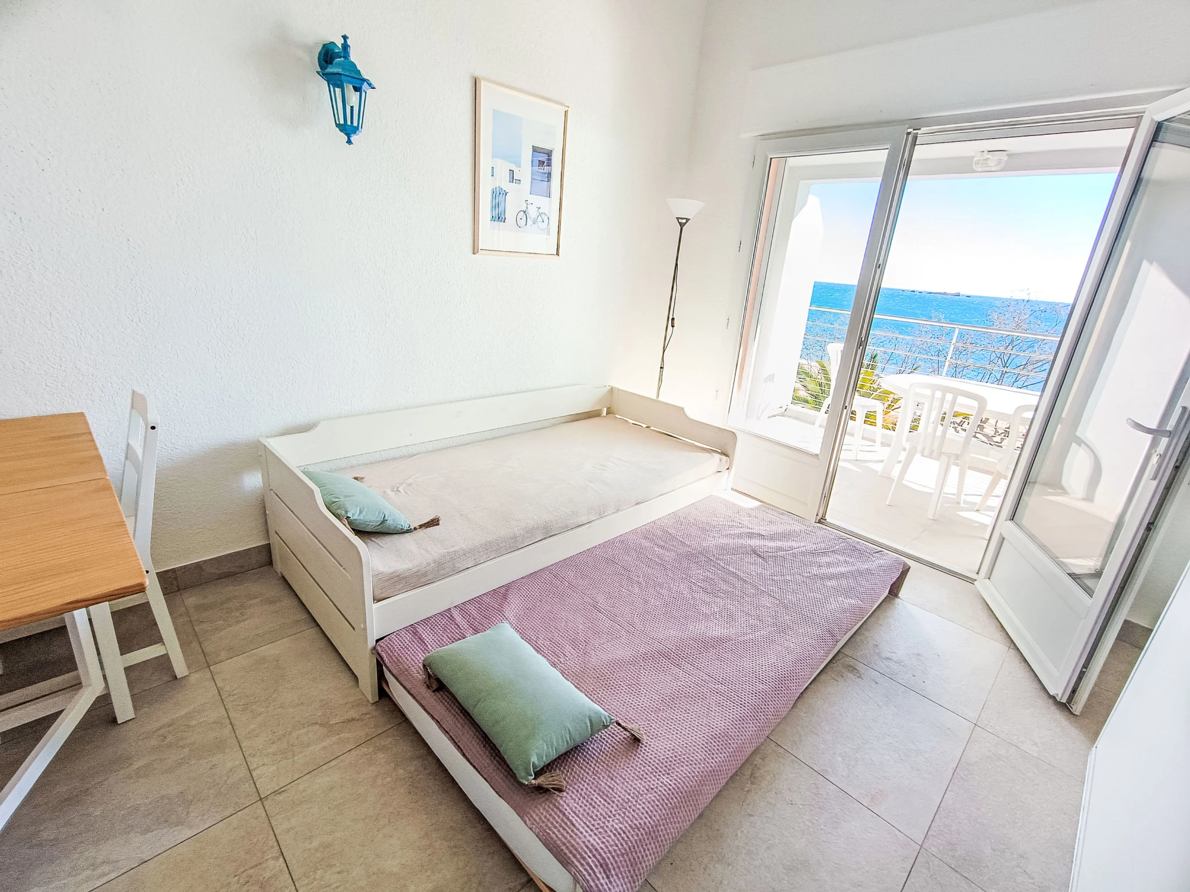 "Le domino", apt 2 pièces 40 m2 sur 2 niveaux au 3ème étage. Rénové en 2026: séjour/salle à manger avec 1 lit gigogne (2 pers. 2 x 90 cm, longueur 200 cm), TV et air-conditionné. Sortie sur la terrasse. Cuisine ouverte (four, lave-vaisselle, 3 plaques à induction, bouilloire électrique, micro-ondes, cafetière électrique). À l'étage supérieur: galerie mansardée avec 1 lit double (160 cm, longueur 200 cm), air-conditionné. Douche, WC séparé. Chauffage électrique. Terrasse 7 m2, situation sud et situation ouest. Meubles de terrasse. Vue panoramique sur la mer. A disposition: lave-linge, fer à repasser. Internet (Connexion WIFI, gratuit). Garage (en sus) près de la maison. Veuillez noter: détecteur de fumée. Annonce d'un particulier (art 155, IV du CGI).