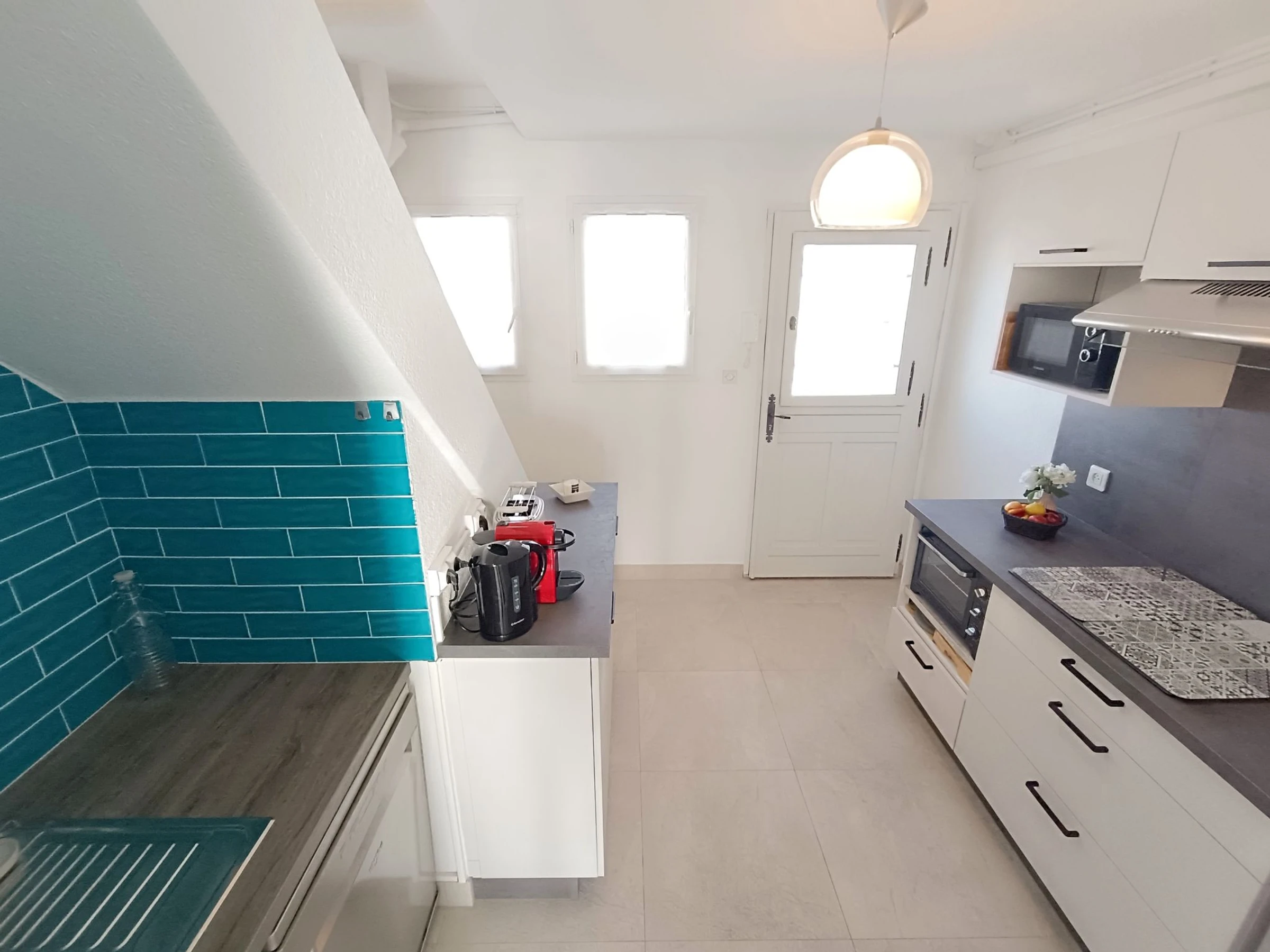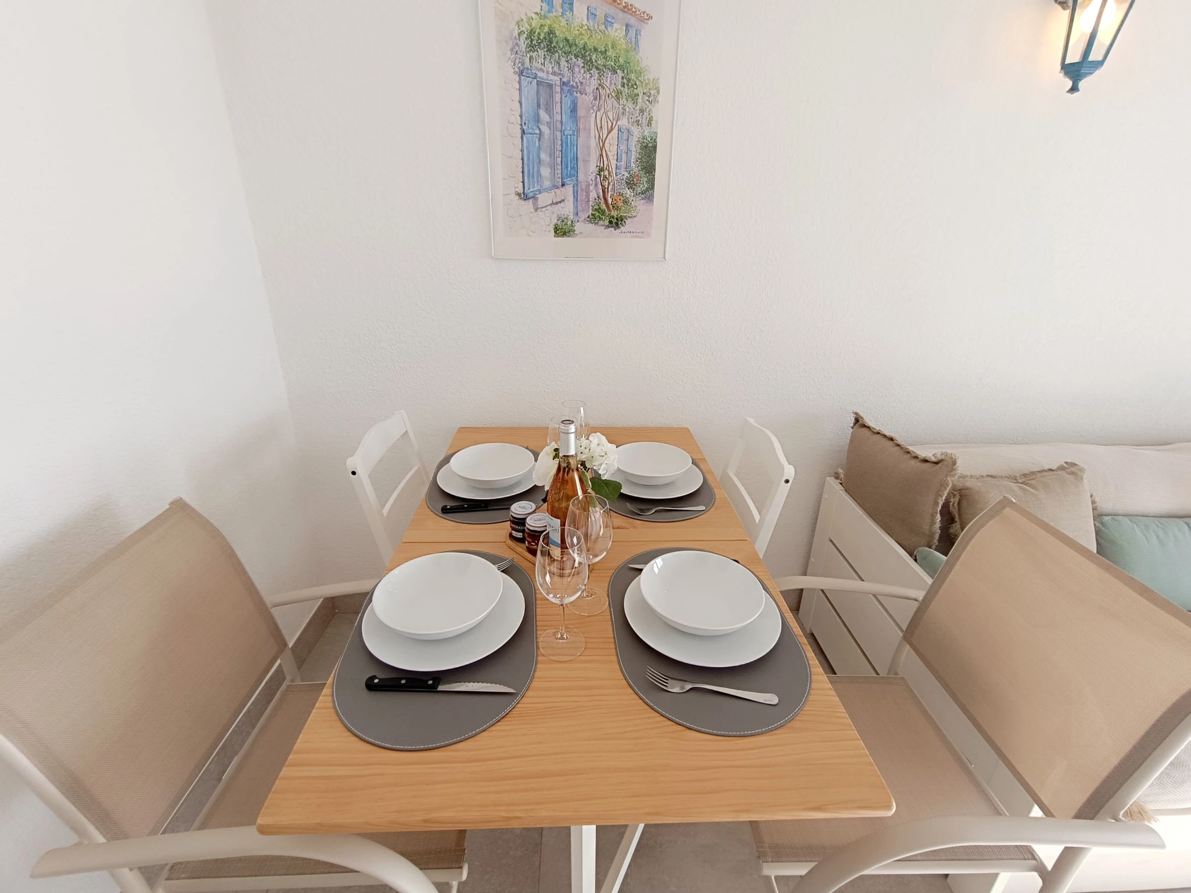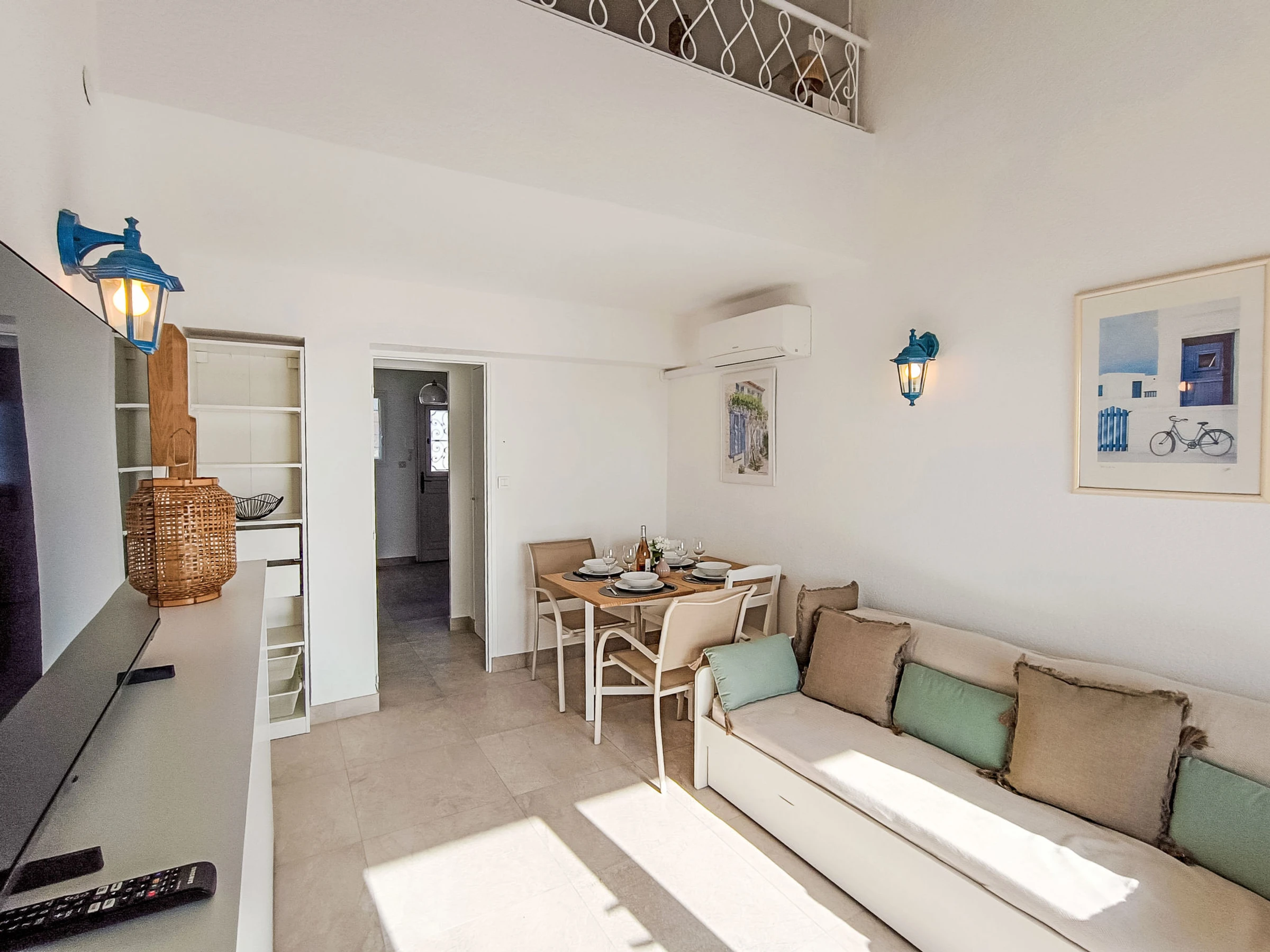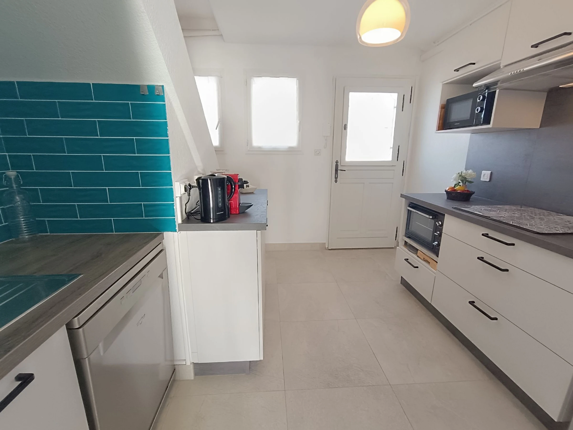 "Le domino", apt 2 pièces 40 m2 sur 2 niveaux au 3ème étage. Rénové en 2026: séjour/salle à manger avec 1 lit gigogne (2 pers. 2 x 90 cm, longueur 200 cm), TV et air-conditionné. Sortie sur la terrasse. Cuisine ouverte (four, lave-vaisselle, 3 plaques à induction, bouilloire électrique, micro-ondes, cafetière électrique). À l'étage supérieur: galerie mansardée avec 1 lit double (160 cm, longueur 200 cm), air-conditionné. Douche, WC séparé. Chauffage électrique. Terrasse 7 m2, situation sud et situation ouest. Meubles de terrasse. Vue panoramique sur la mer. A disposition: lave-linge, fer à repasser. Internet (Connexion WIFI, gratuit). Garage (en sus) près de la maison. Veuillez noter: détecteur de fumée. Annonce d'un particulier (art 155, IV du CGI).