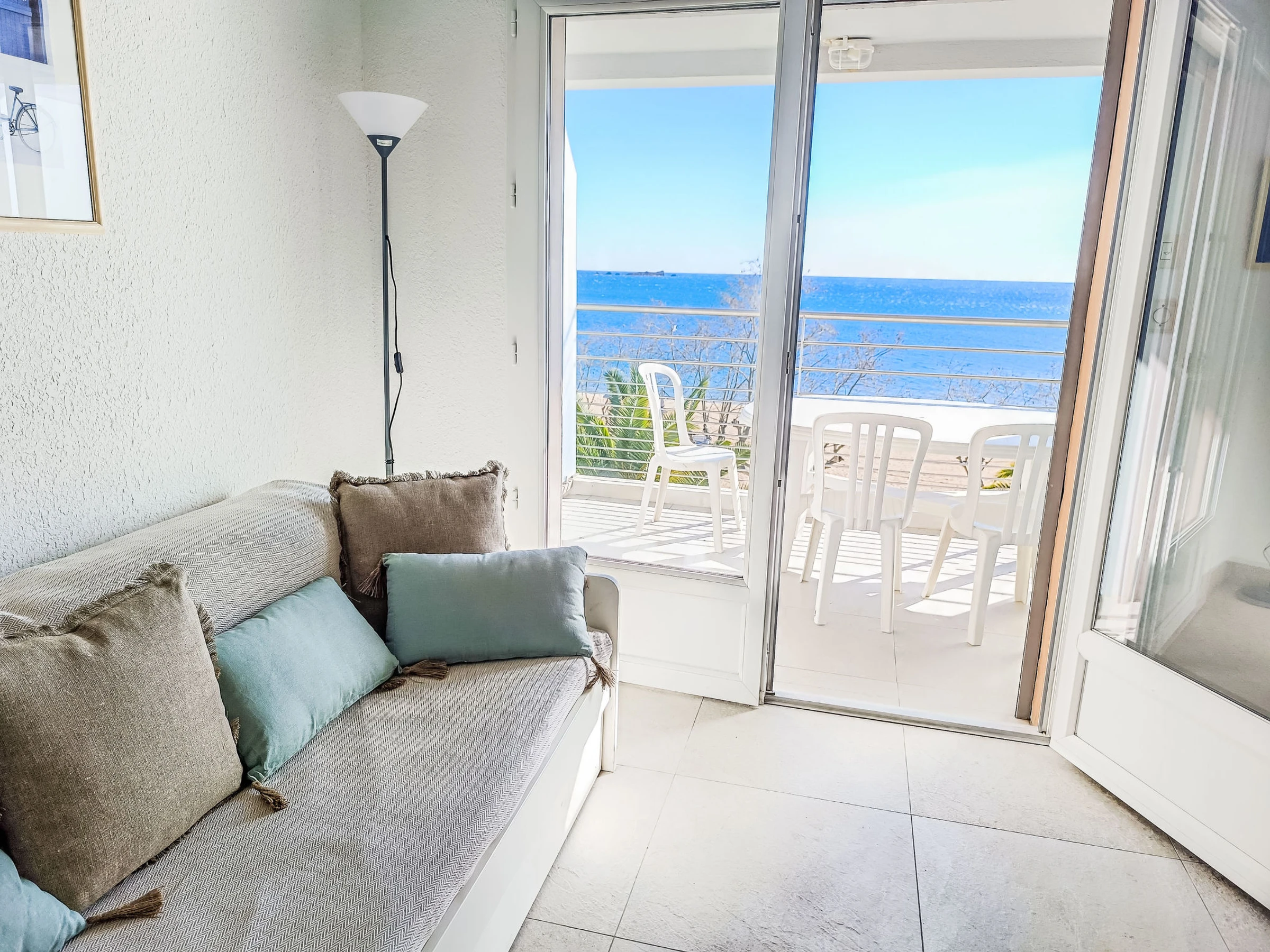 Fréjus Plage: Immeuble "Le Domino", de 3 étages. À 15 m de la mer, à 15 m de la plage. Supermarché 5 m, restaurant 10 m, boulangerie 50 m, arrêt de bus "Oasis" 200 m, gare ferroviaire "St Raphael" 600 m, plage de sable "Plages de Fréjus" 15 m, centre de plongée 600 m. Port plaisance 800 m, terrain de golf (18 trous) 6 km. Attractions à proximité: Cannes 40 km, Saint-Tropez 40 km, Nice 70 km, Gorges du Verdon 90 km. Les lacs connus sont facilement accessibles: Sainte-Croix 90 km. Région de randonnées: Estérel 8 km. Veuillez noter: sans ascenseur.
