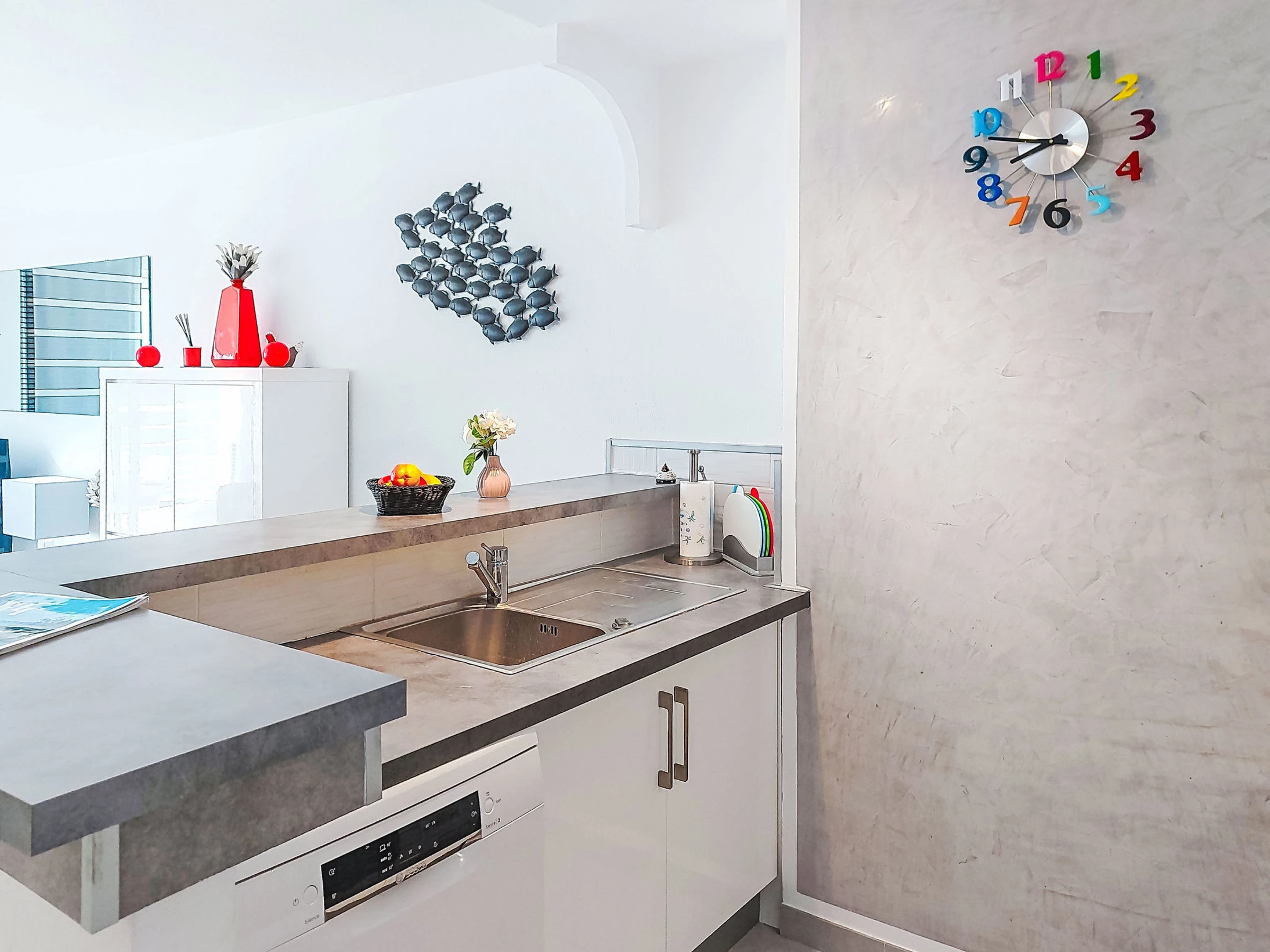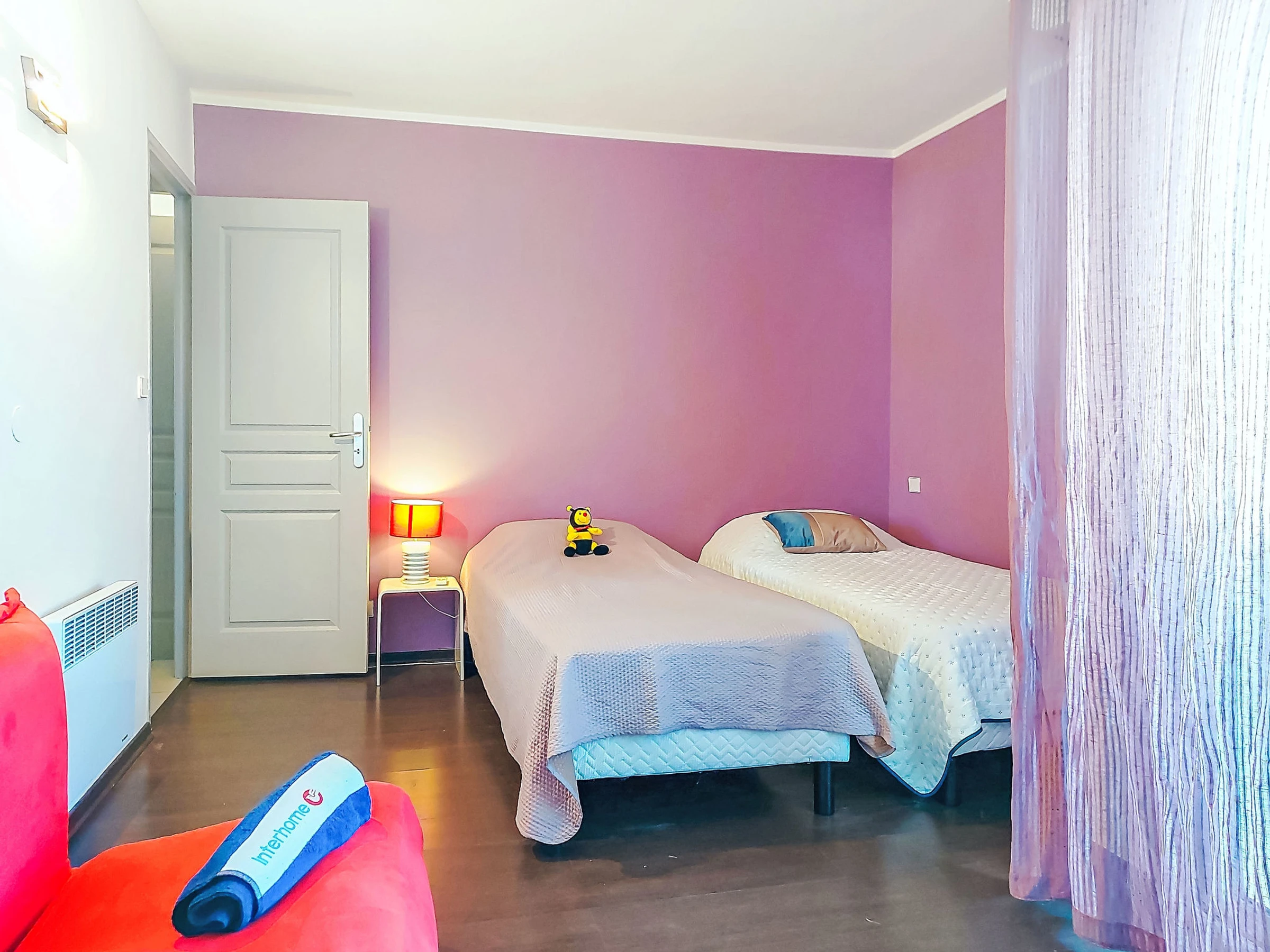 Apt 3 pièces 70 m2 au 2ème étage. Aménagement agréable: séjour/salle à manger avec 1 divan-lit double (1 x 140 cm, longueur 190 cm), TV (écran plat), volet roulant électrique. Sortie sur la terrasse. 1 chambre avec 1 grand-lit (160 cm, longueur 190 cm). 1 grande chambre avec Dressing avec 2 lits (90 cm, longueur 190 cm). Sortie sur le balcon. Cuisine ouverte (3 plaques de cuisson, four, lave-vaisselle, grille-pain, bouilloire électrique, congélateur, cafetière électrique, Capsules pour machine à café (Nespresso) (NON INCLUSES)). Douche, WC séparé. Chauffage électrique, air-conditionné. Petit balcon 4 m2, situation nord et situation ouest, terrasse 12 m2 partiellement couverte, situation sud et situation est. Meubles de terrasse. A disposition: lave-linge, sèche-linge, fer à repasser, sèche-cheveux. Internet (Connexion WIFI, en sus). Veuillez noter: TV seulement FR. Détecteur de fumée. Annonce d'un professionnel (art 155, IV du CGI)