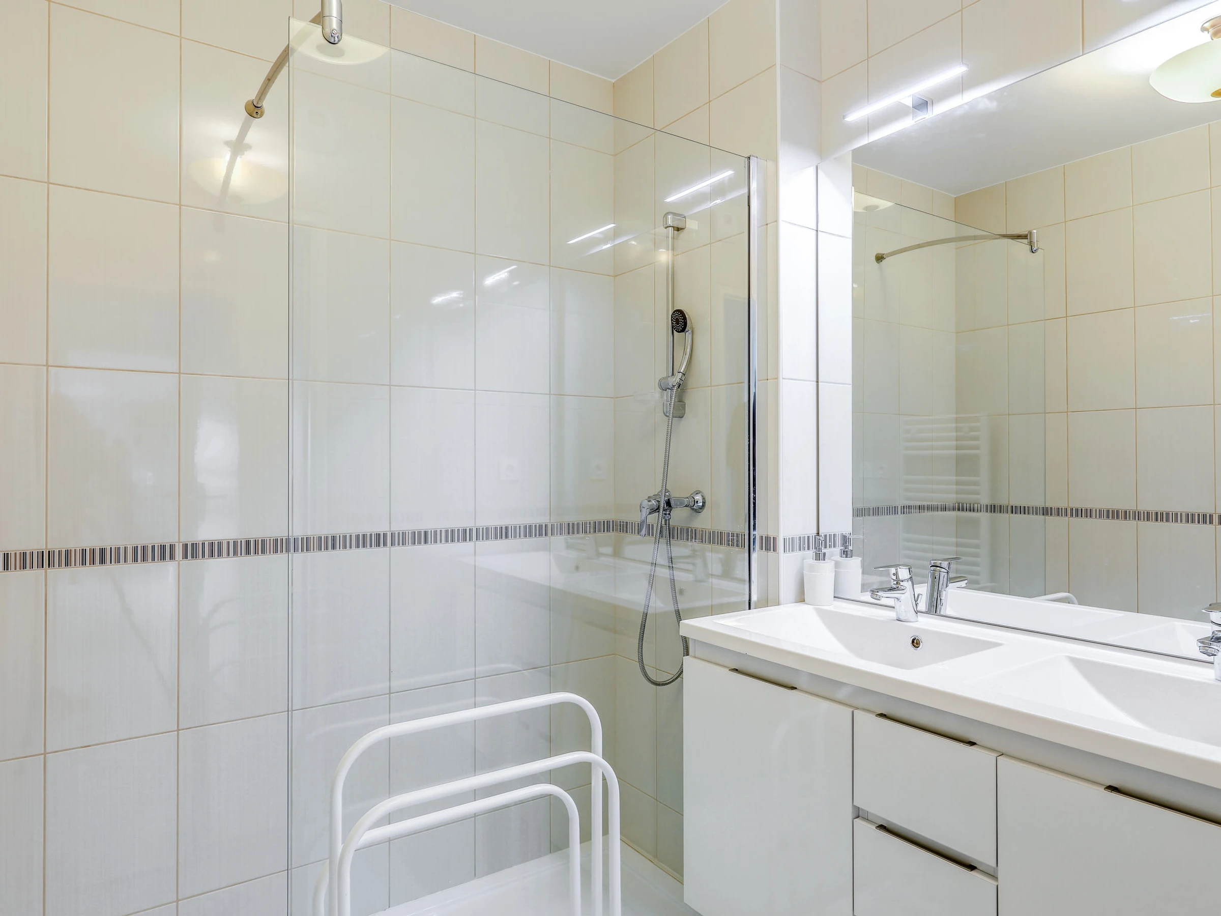 Apt 4 pièces 110 m2 au 3ème étage. Logement idéal pour 6 adultes + 1 enfant. Aménagement moderne: séjour/salle à manger avec TV, chauffage électrique et air-conditionné. Sortie sur la terrasse. 1 chambre avec 1 lit double (1 x 180 cm, longueur 200 cm), chauffage électrique et air-conditionné. Sortie sur la terrasse. 1 chambre avec 2 lits (90 cm, longueur 190 cm), chauffage électrique et air-conditionné. Sortie sur la terrasse. 1 chambre avec 1 grand-lit (1 x 140 cm, longueur 190 cm), bain/douche/WC, double vasque, chauffage électrique et air-conditionné. Sortie sur la terrasse. Cuisine ouverte (four, lave-vaisselle, 3 plaques vitrocéramiques, grille-pain, bouilloire électrique, micro-ondes, congélateur, cafetière électrique, Capsules pour machine à café (Dolce Gusto) (NON INCLUSES)). Douche, WC séparé, double vasque. Chauffage électrique, air-conditionné. Grande terrasse, situation sud. Meubles de terrasse. Belle vue sur la mer. A disposition: lave-linge, sèche-linge, fer à repasser, sèche-cheveux. Internet (Connexion WIFI, gratuit). Place de parking No 96 (couvert), hauteur 190 cm, largeur 340 cm. Veuillez noter: logement non-fumeur. Détecteur de fumée.