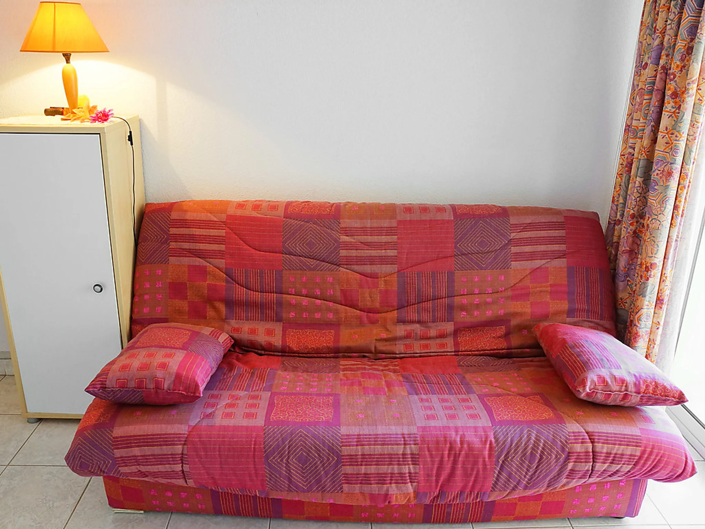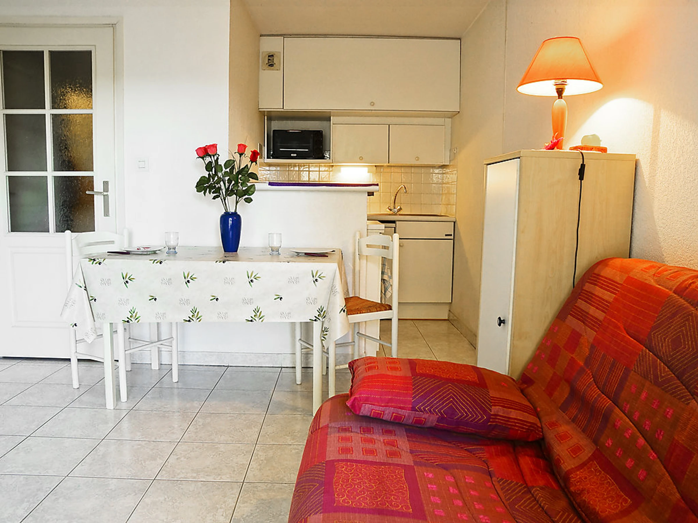 Apt 2 pièces 32 m2 au 1er étage. Séjour/salle à manger avec 1 divan-lit double et TV. 1 chambre avec 1 grand-lit (1 x 140 cm, longueur 190 cm). Petite cuisine (2 plaques de cuisson, mini-four, lave-vaisselle, congélateur, cafetière électrique). Salle de bains, WC séparé. Chauffage électrique, chauffe eau (250 litres). Terrasse 8 m2, situation nord. Meubles de terrasse. A disposition: lave-linge. Place de parking No 27. Veuillez noter: logement pour non fumeurs. Inclus: Place de stationnement Disponible sur le site avec supplément: Serviettes (premier jeu) 6.0EUR par personne, Poussette 3.0EUR par jour, Réhausseur bébé (pour enfants) 3.0EUR par jour, WIFI (connexion 3/4G max. 10 appareils – limité à 1 GO par jour) 5.6EUR par jour, Chaise haute 3.0EUR par jour, Linge de lit (premier jeu) 10.0EUR par personne, Lit bébé (jusqu'à 2 ans) 3.0EUR par jour Services supplémentaires obligatoires sur le site: Taxe de séjour enfants (par personne et par jour), Taxe de séjour bébés (0-2) (par personne et par jour), Taxe de séjour 0.88EUR par personne et par jour, Nettoyage final 20.0EUR par personne, Taxe de séjour 0.44EUR par personne et par jour