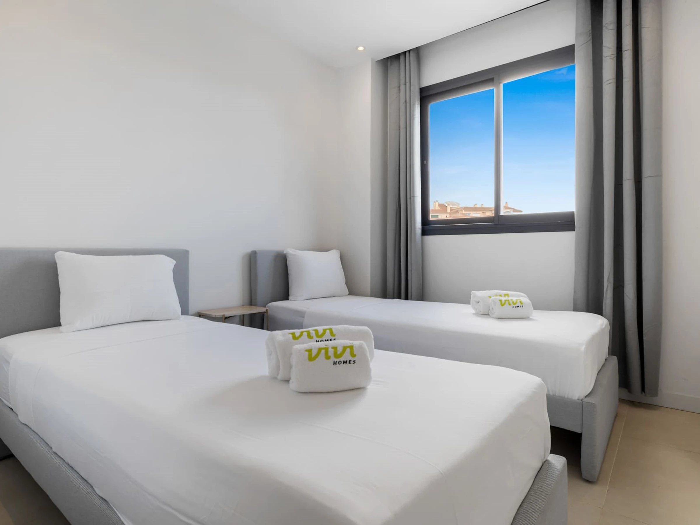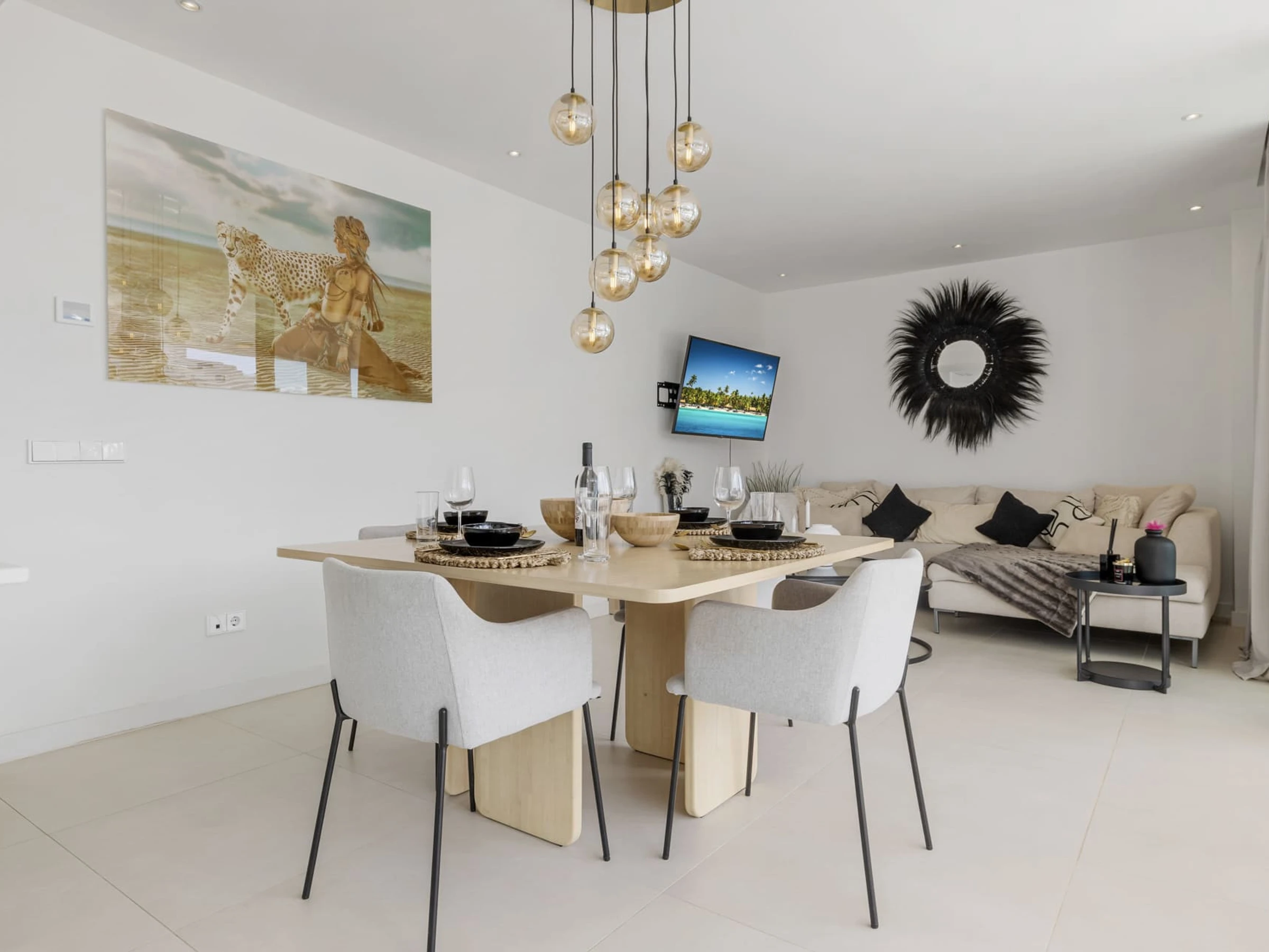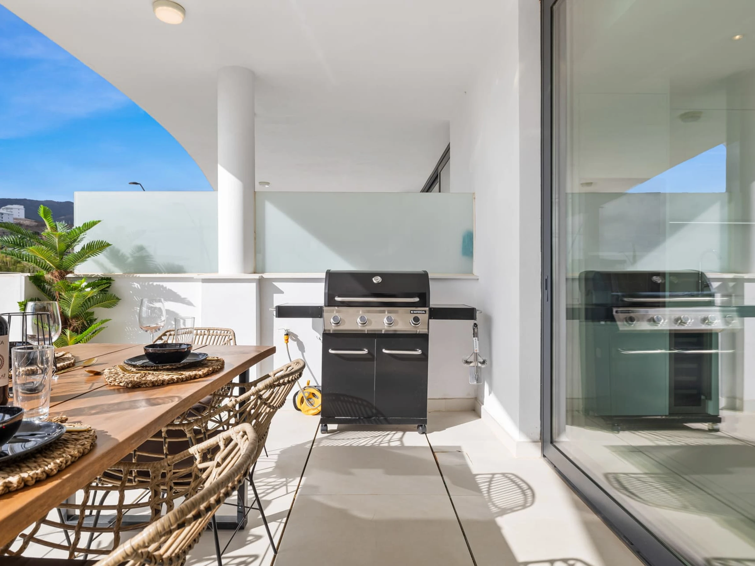 Elle dispose de ascenseur, mobilier de jardin, clôture, 25 m² de terrasse, lave-linge, sèche-linge, fer à repasser, coffre-fort, accès internet (wifi), sèche-cheveux, balcon, chauffage central, climatisation dans tout le logement, piscine collective+infantile, parking extérieur bâtiment proche, 2 Télévisions.