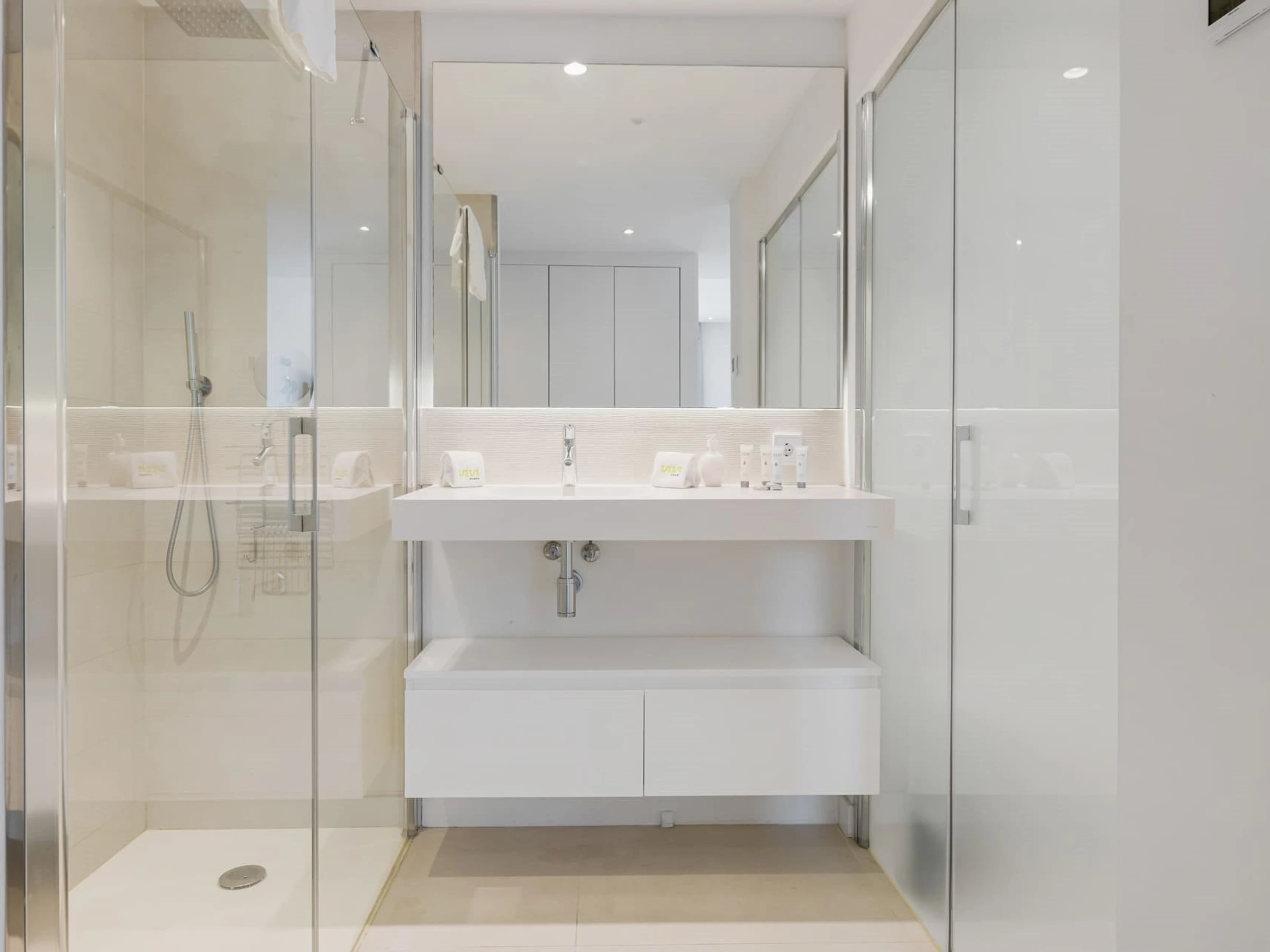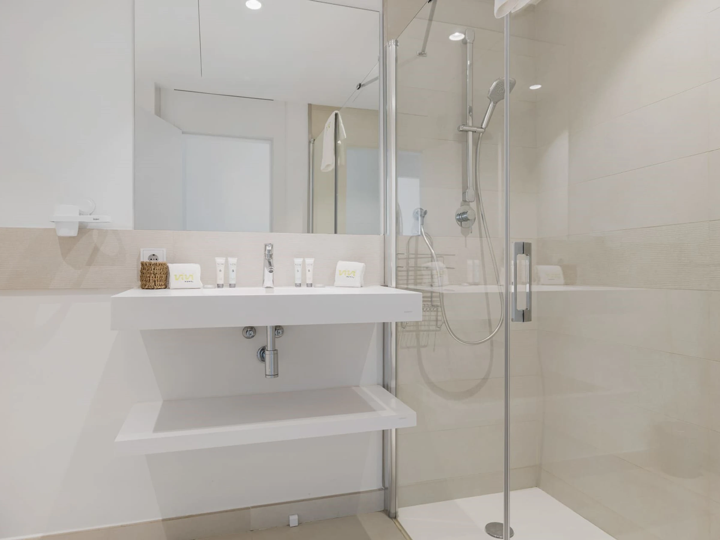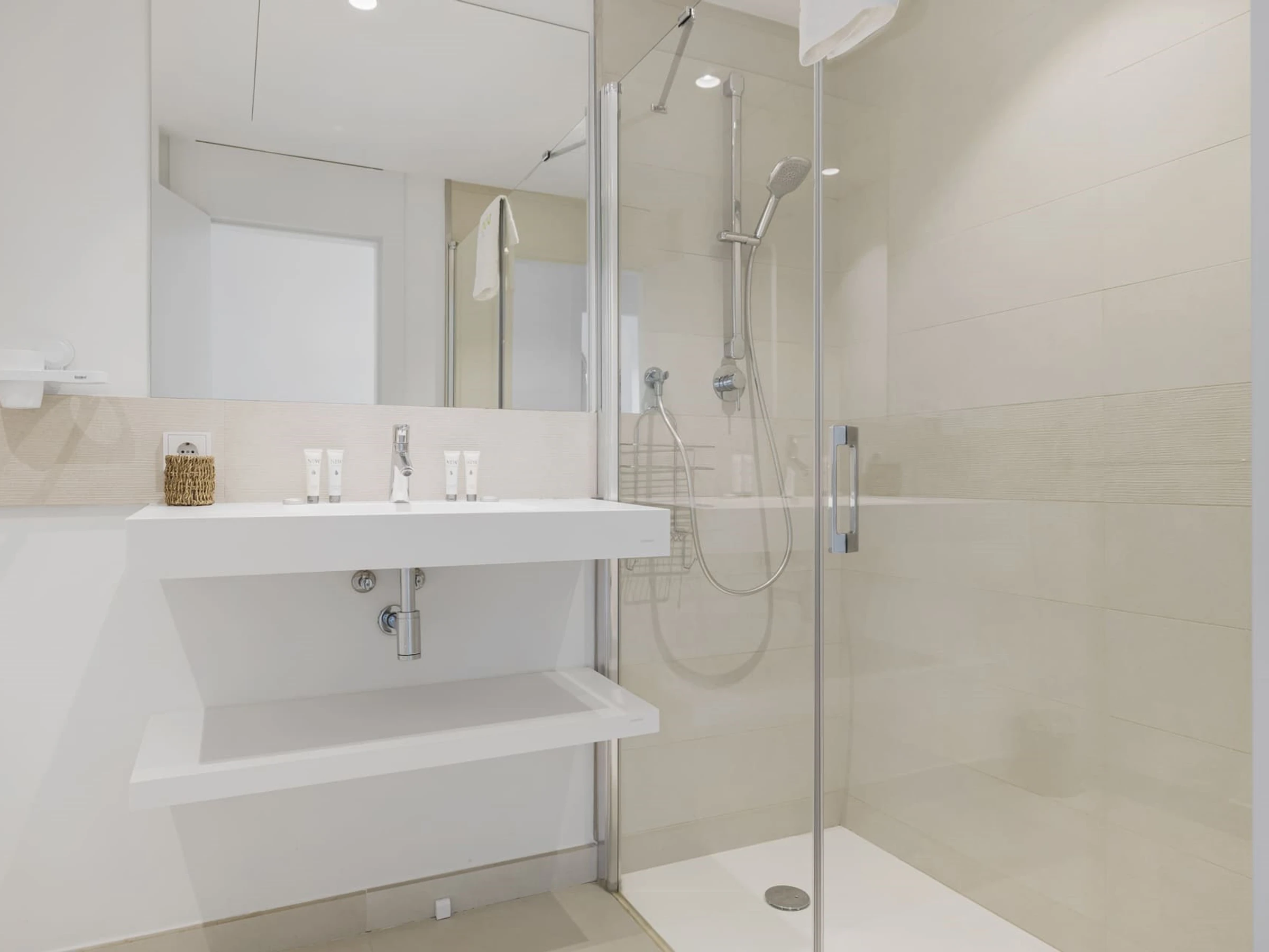 Elle dispose de ascenseur, mobilier de jardin, clôture, 25 m² de terrasse, lave-linge, sèche-linge, fer à repasser, coffre-fort, accès internet (wifi), sèche-cheveux, balcon, chauffage central, climatisation dans tout le logement, piscine collective+infantile, parking extérieur bâtiment proche, 2 Télévisions.