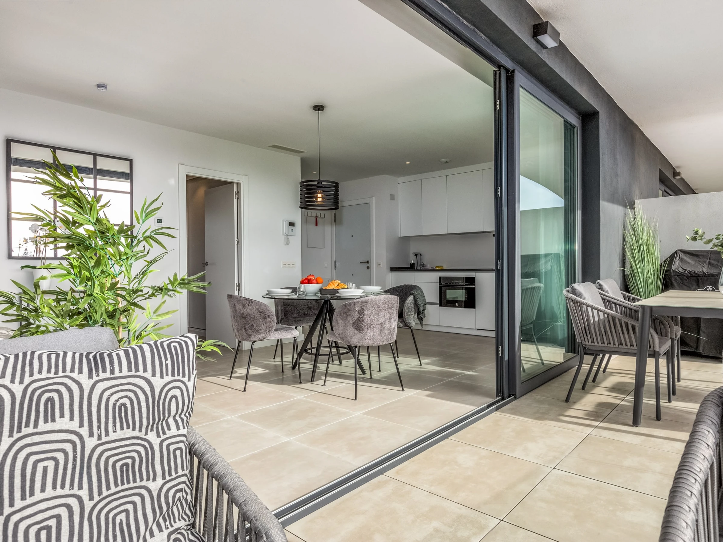 Logement de 75 m² confortable et moderne, avec vue sur le jardin et la piscine.