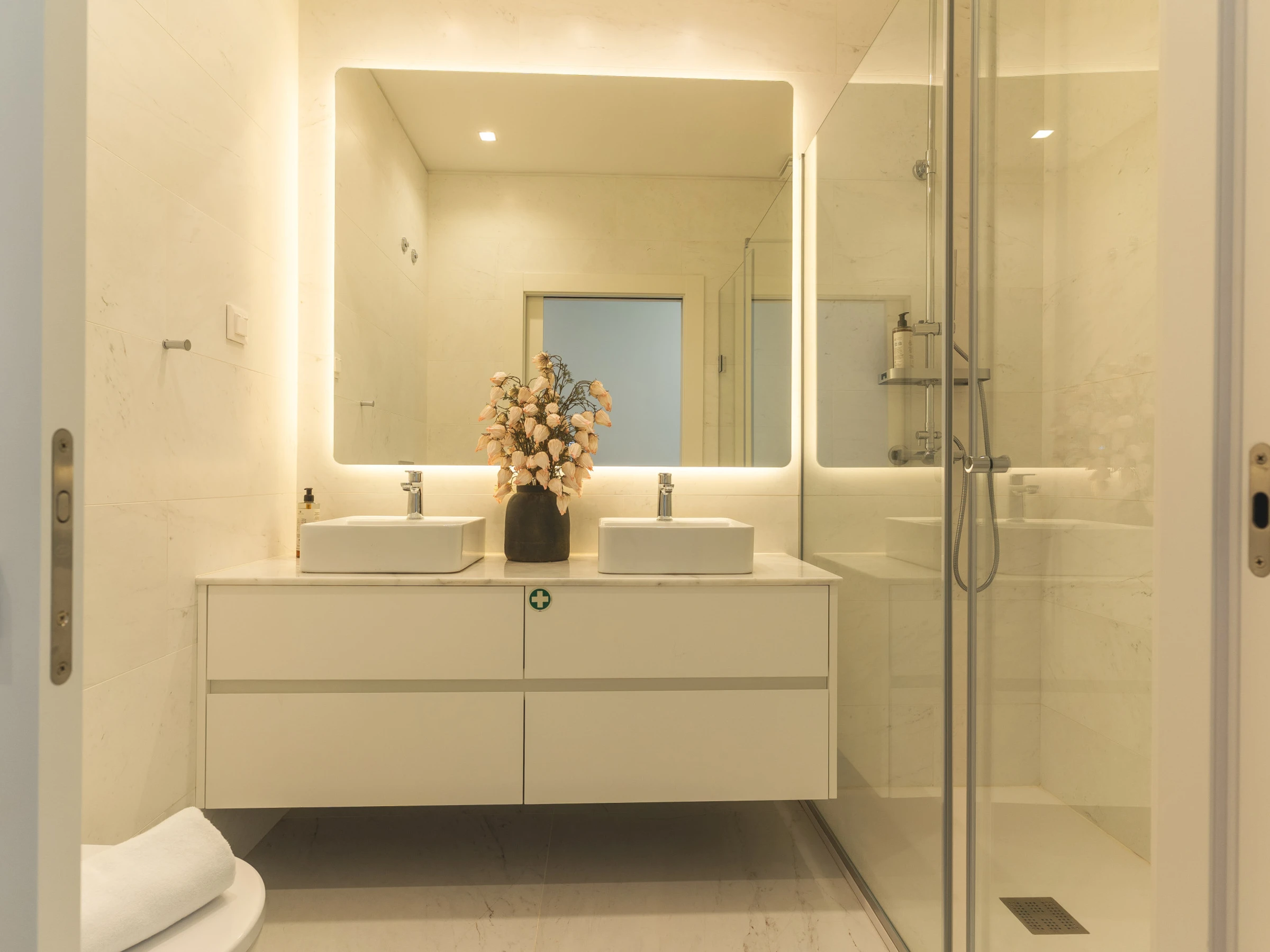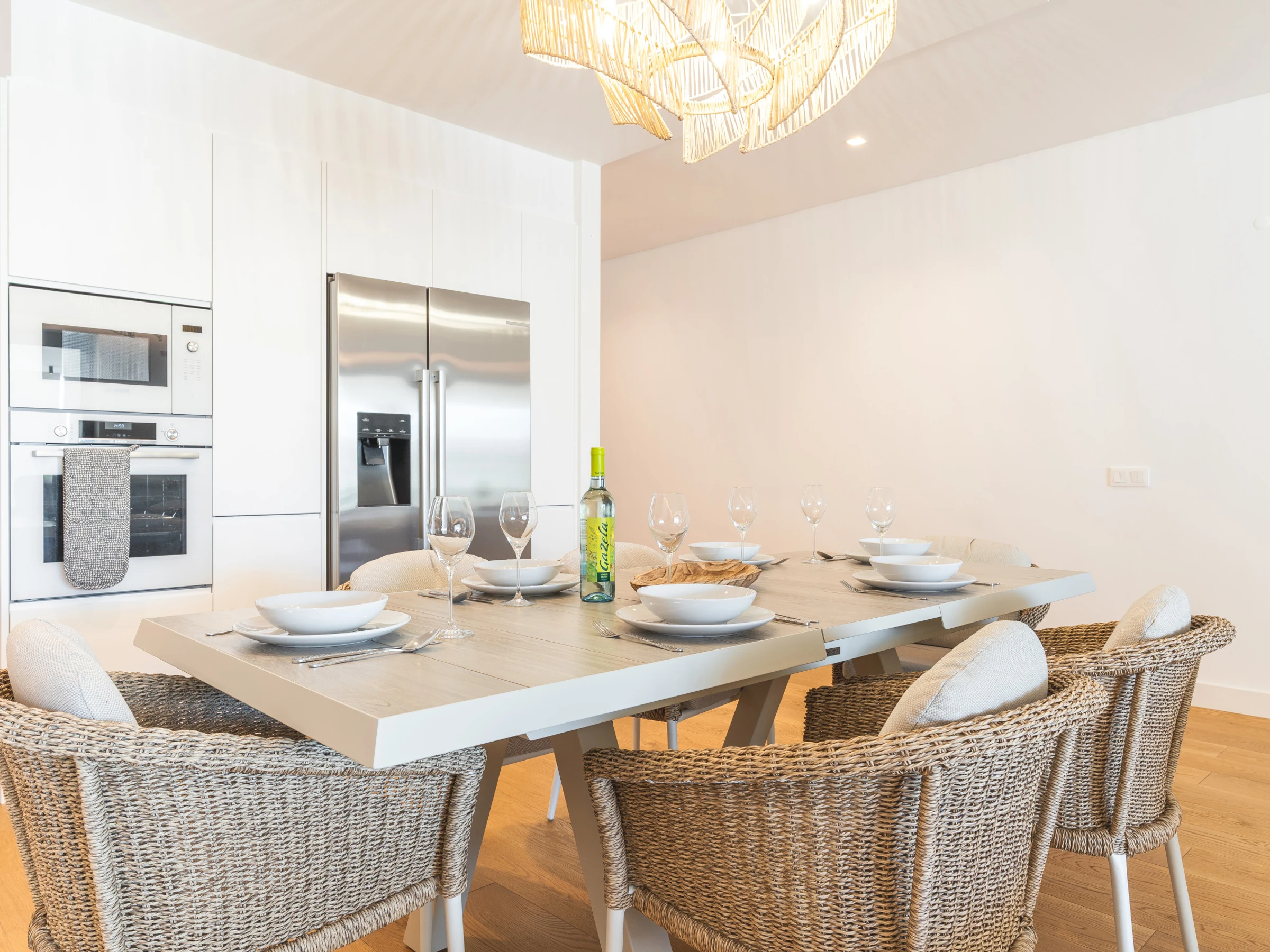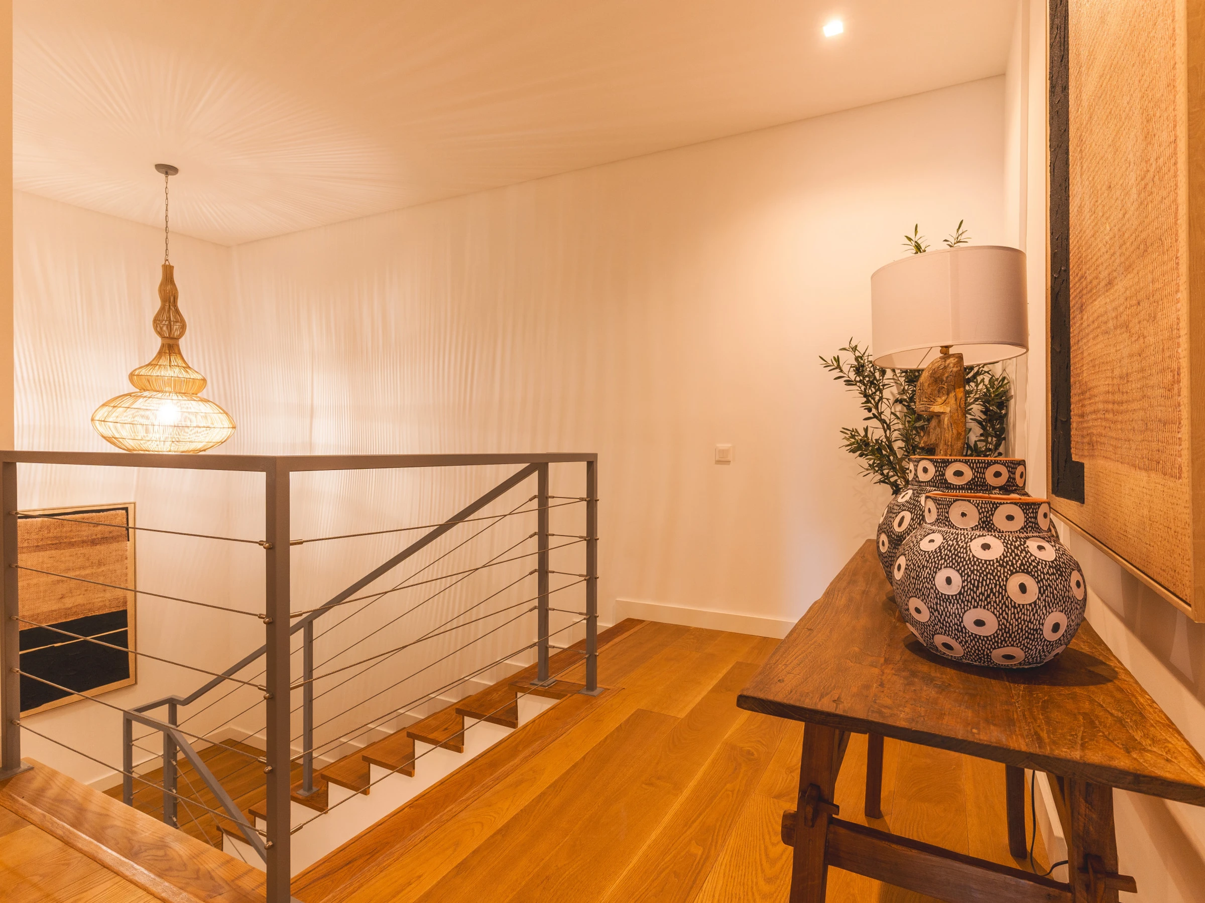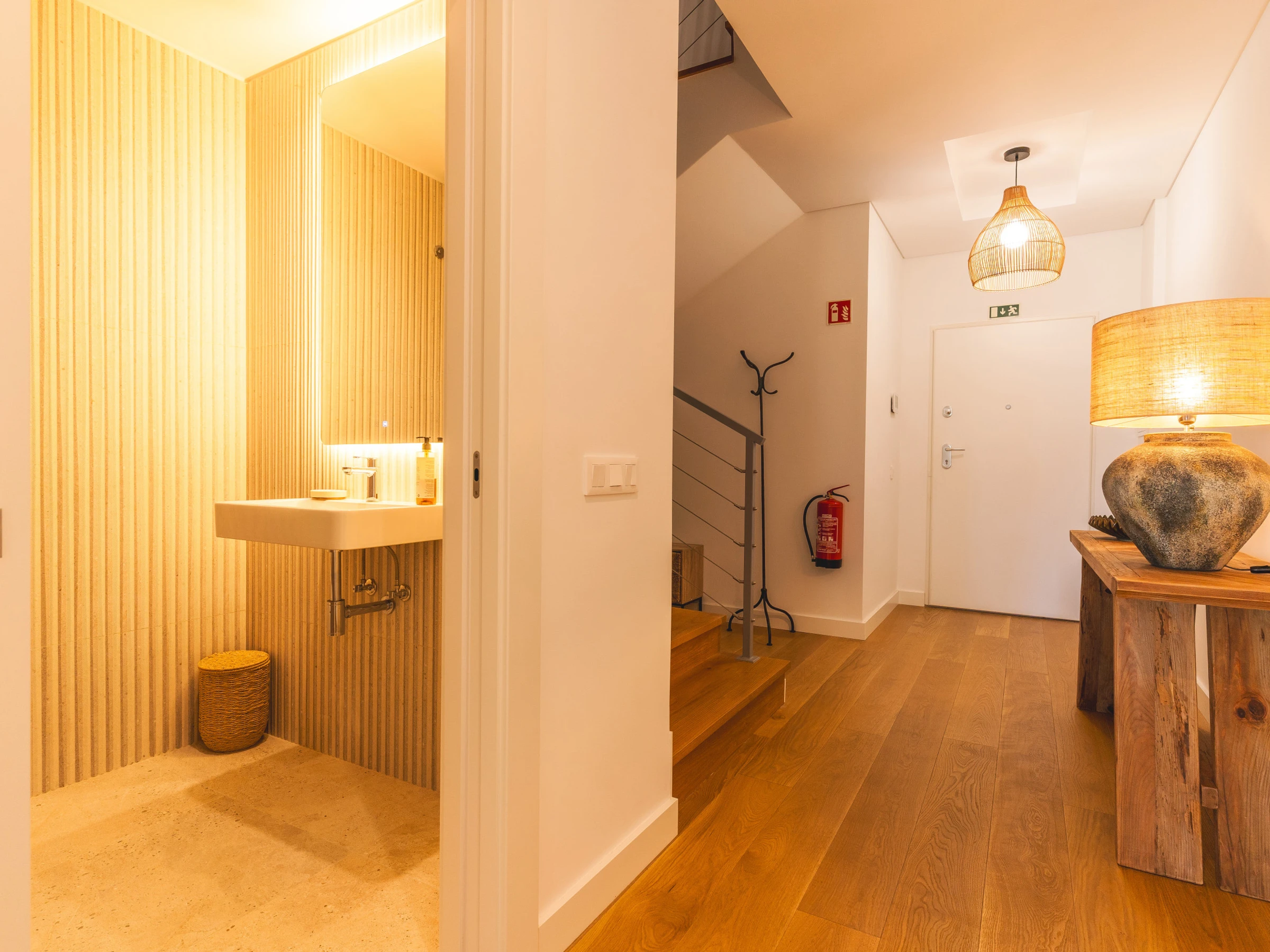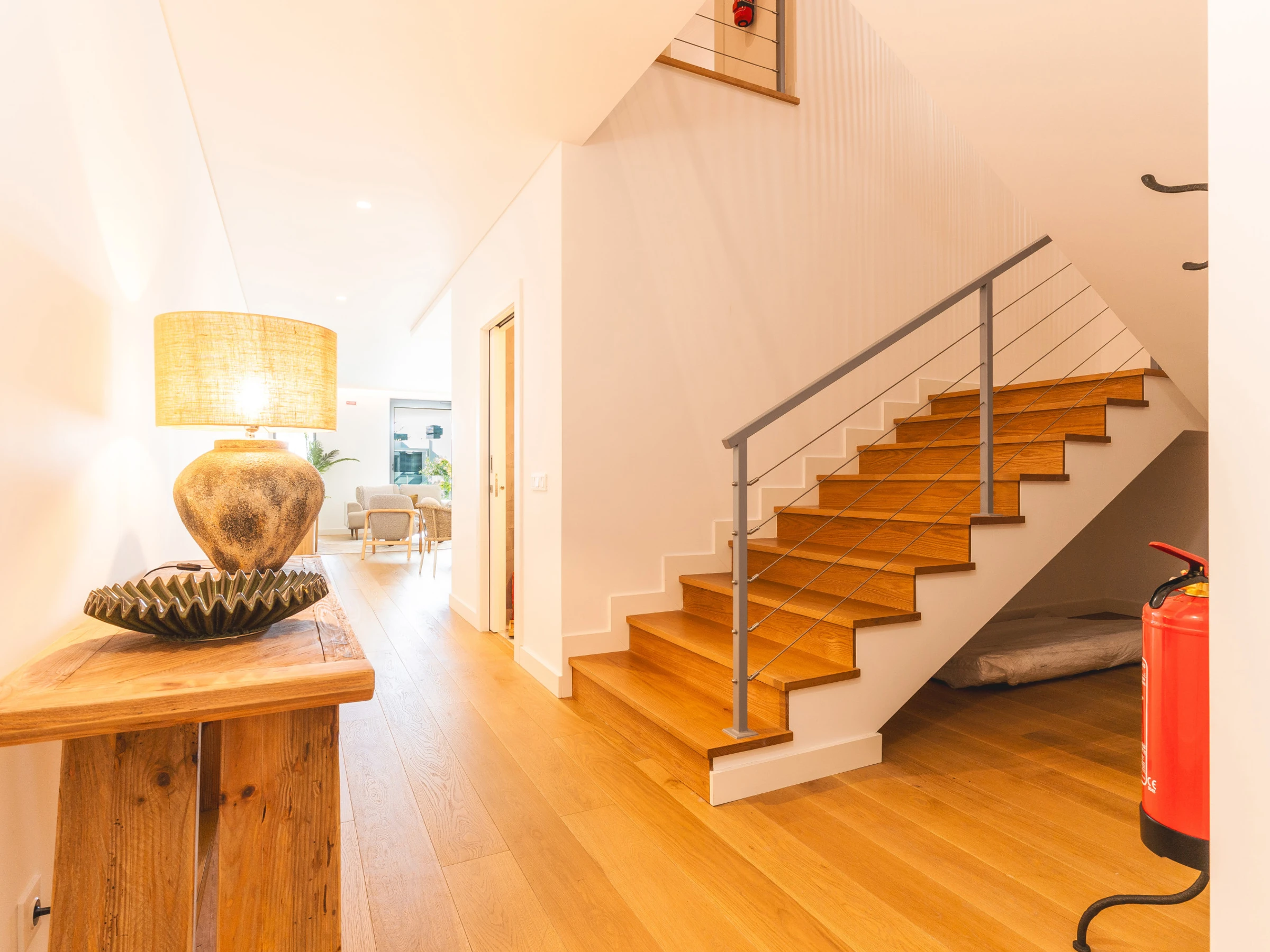 Le premier étage offre des espaces accueillants pour se détendre et dîner, comprenant un salon avec télévision connectée et une cuisine entièrement équipée avec réfrigérateur, congélateur, four, micro-ondes, plaque de cuisson, lave-vaisselle, couverts, vaisselle et tous les ustensiles nécessaires pour cuisiner. À l’étage supérieur, vous trouverez deux chambres : l’une avec un lit queen-size et l’autre avec deux lits simples et un canapé-lit double. Chaque chambre dispose de sa propre salle de bain avec douche, ainsi qu’un WC séparé. La climatisation et le chauffage sont disponibles dans les deux chambres. L’appartement comprend également un lave-linge, un sèche-linge, un sèche-cheveux, un lit bébé et une chaise haute.