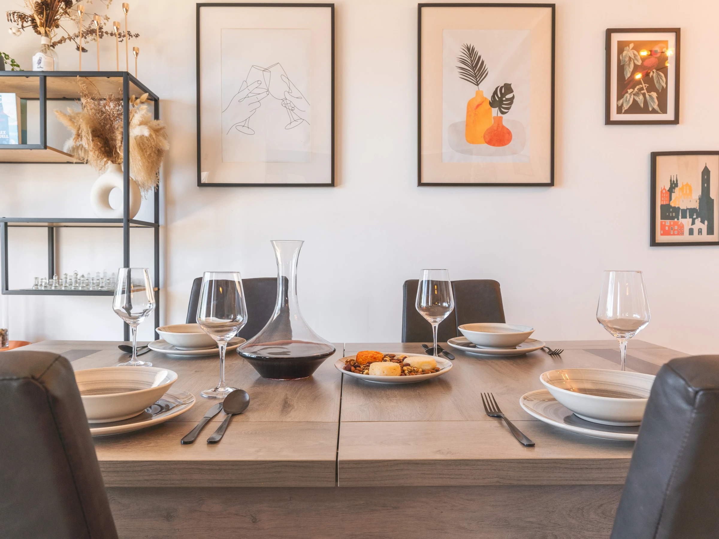La cuisine entièrement équipée comprend un réfrigérateur, un congélateur, un four, un micro-ondes, une plaque de cuisson, un lave-vaisselle, des couverts, des assiettes et tous les essentiels pour préparer et apprécier vos repas préférés. Le salon est équipé de la climatisation et d'une smart TV avec un boîtier TV, tandis qu'une télévision supplémentaire dans l'une des chambres garantit des soirées relaxantes pour tous.