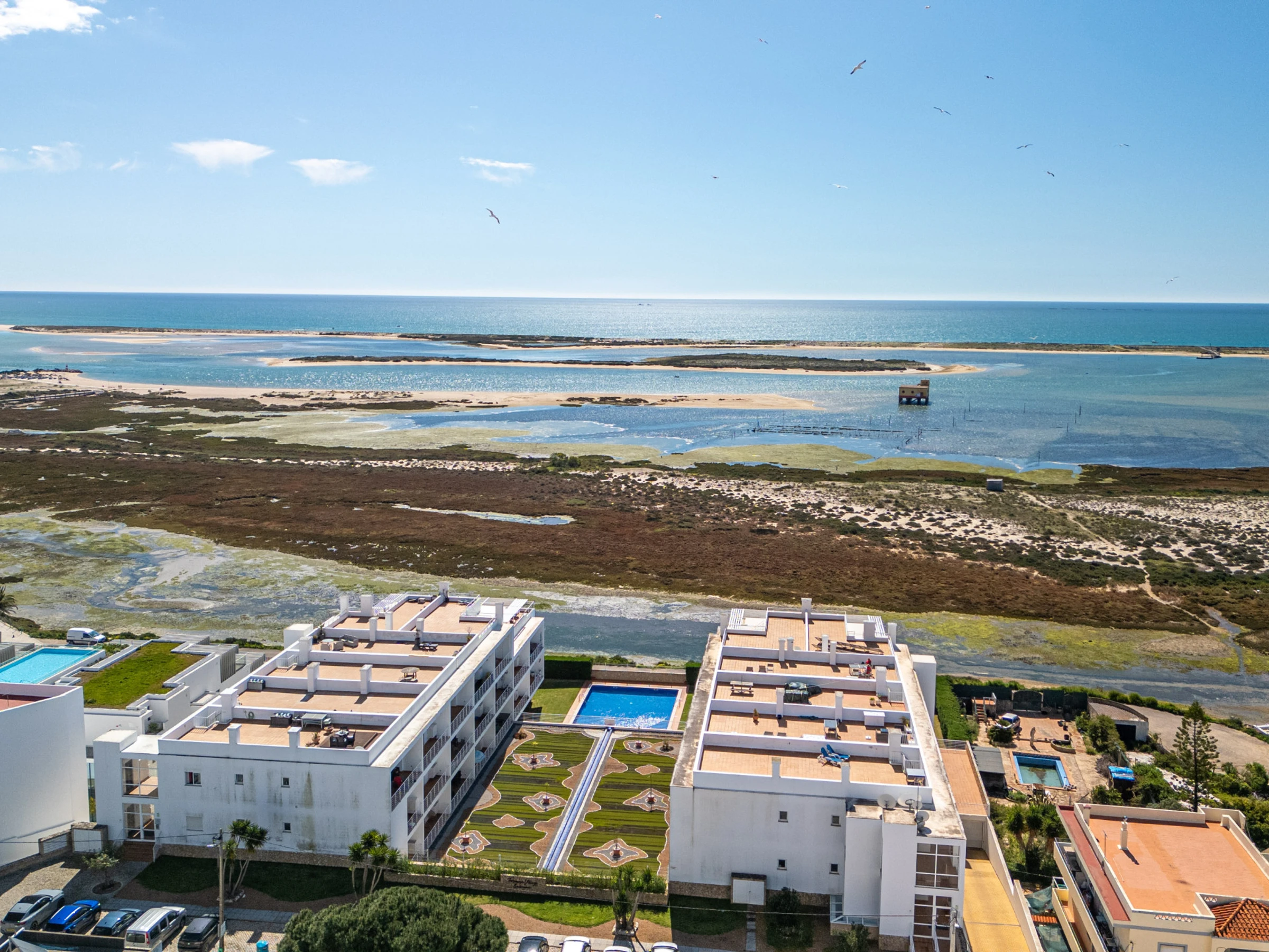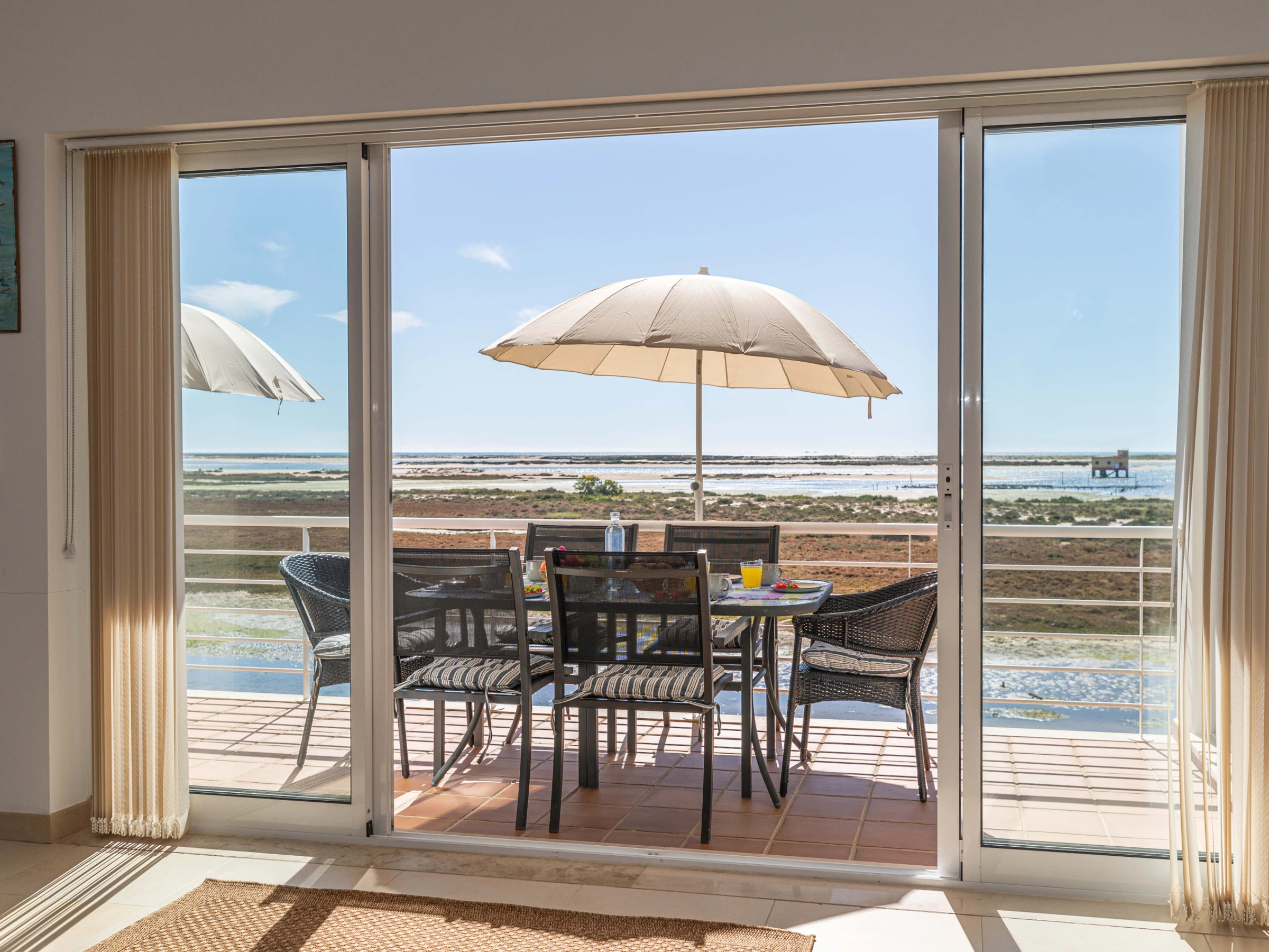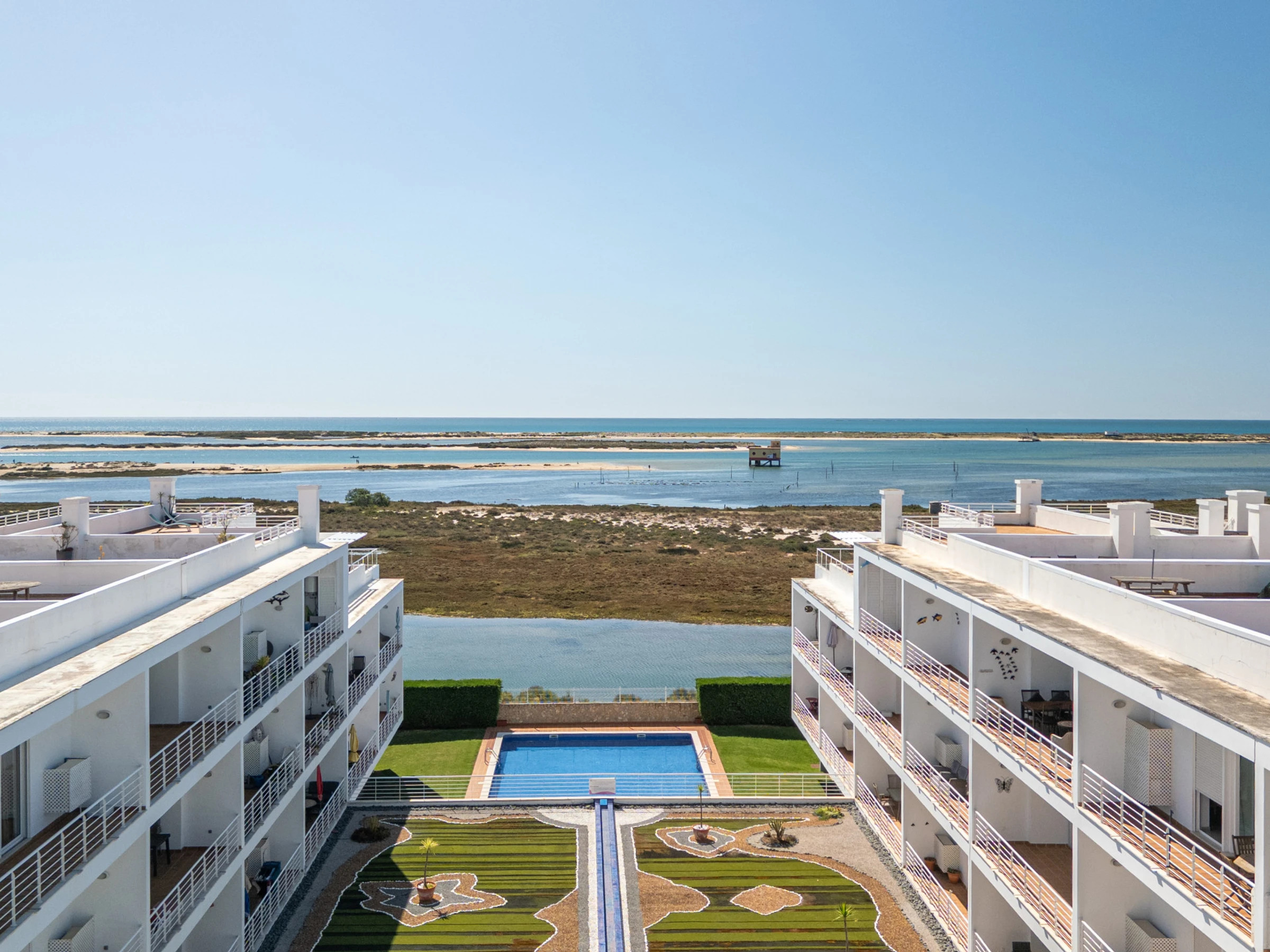Ce magnifique appartement du premier étage offre une vue imprenable sur la lagune de Ria Formosa en direction de l'océan Atlantique. Le cœur de la maison est un espace de vie ouvert spacieux qui combine un salon élégant avec vue sur la mer, une cuisine entièrement équipée et un espace repas parfait pour des repas décontractés ou des moments de convivialité.