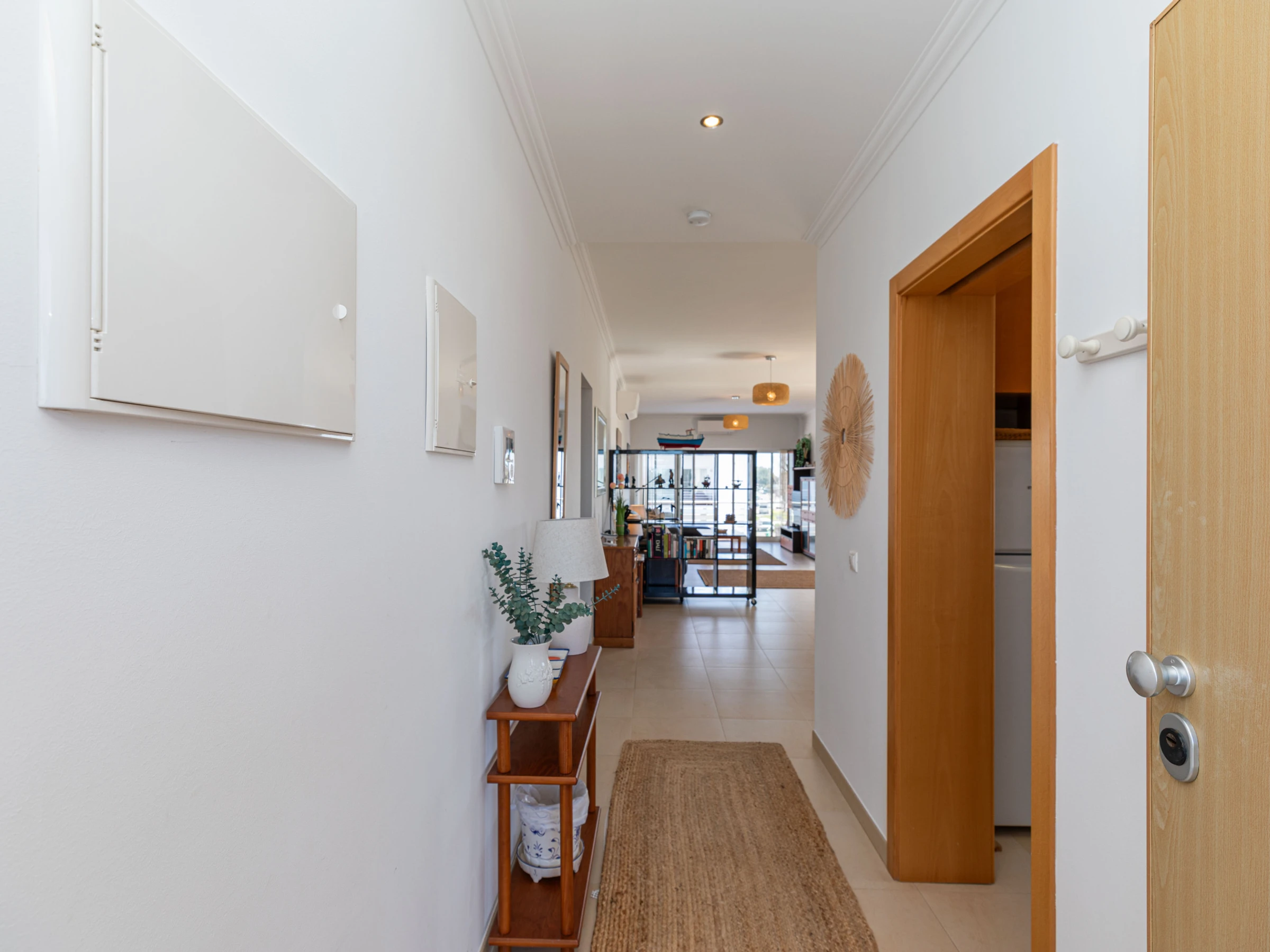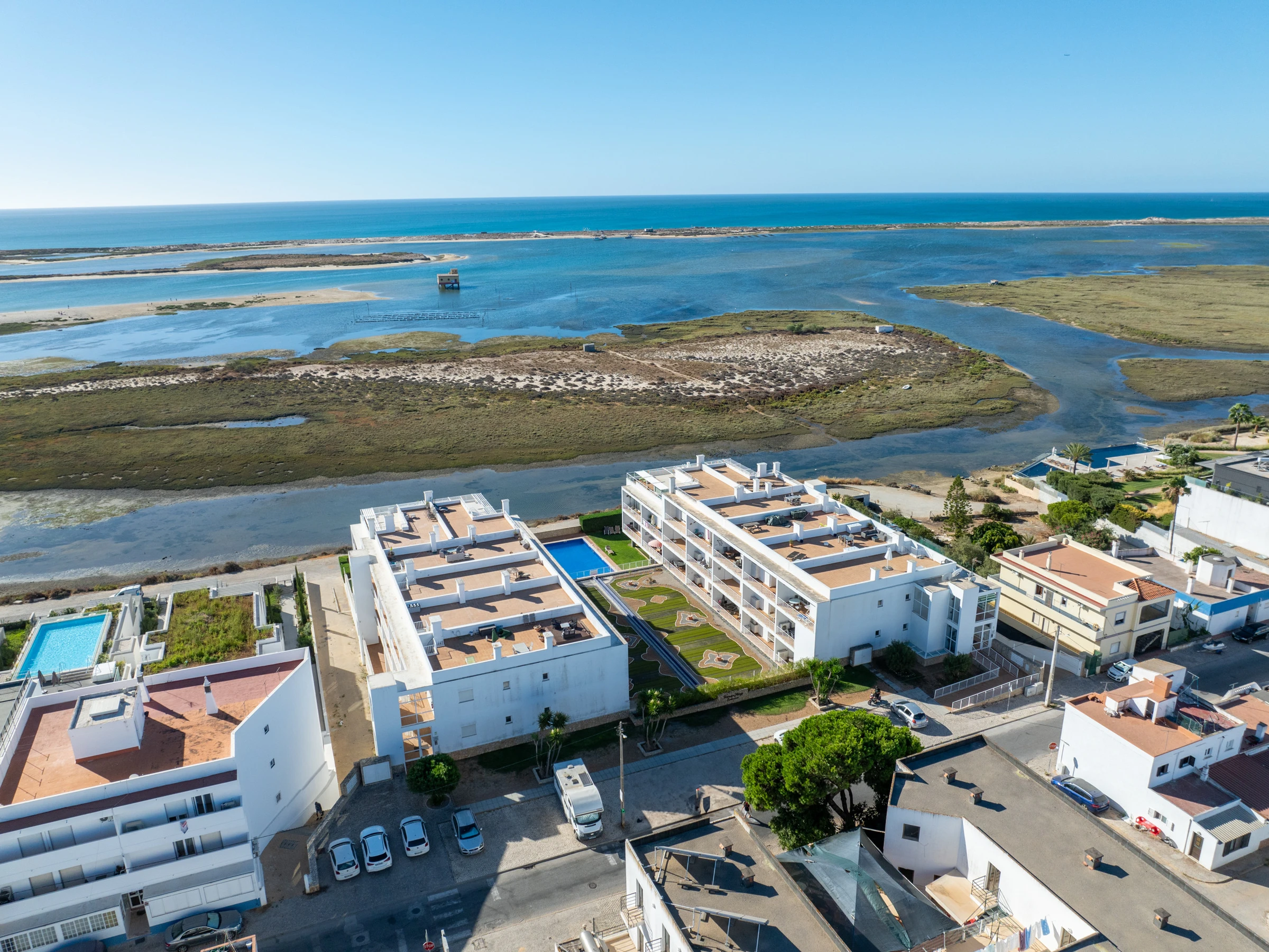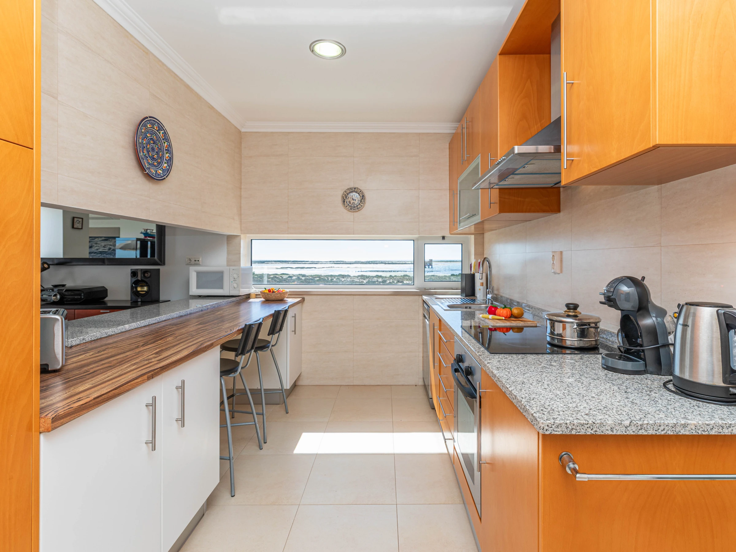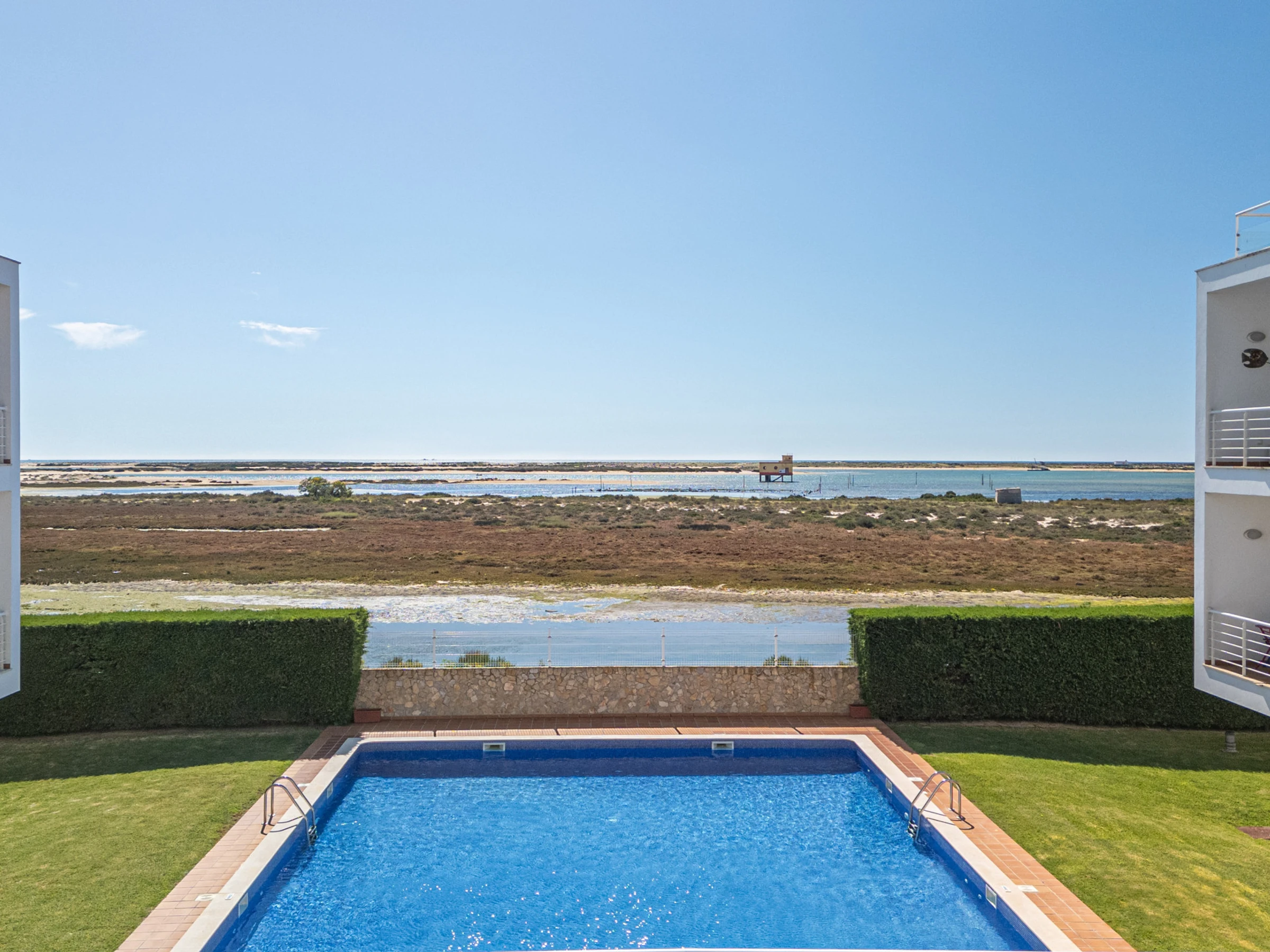 Ce magnifique appartement du premier étage offre une vue imprenable sur la lagune de Ria Formosa en direction de l'océan Atlantique. Le cœur de la maison est un espace de vie ouvert spacieux qui combine un salon élégant avec vue sur la mer, une cuisine entièrement équipée et un espace repas parfait pour des repas décontractés ou des moments de convivialité.