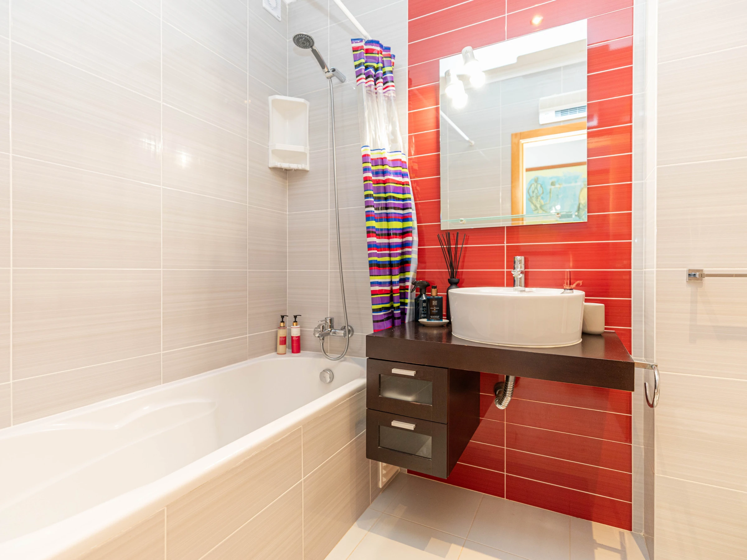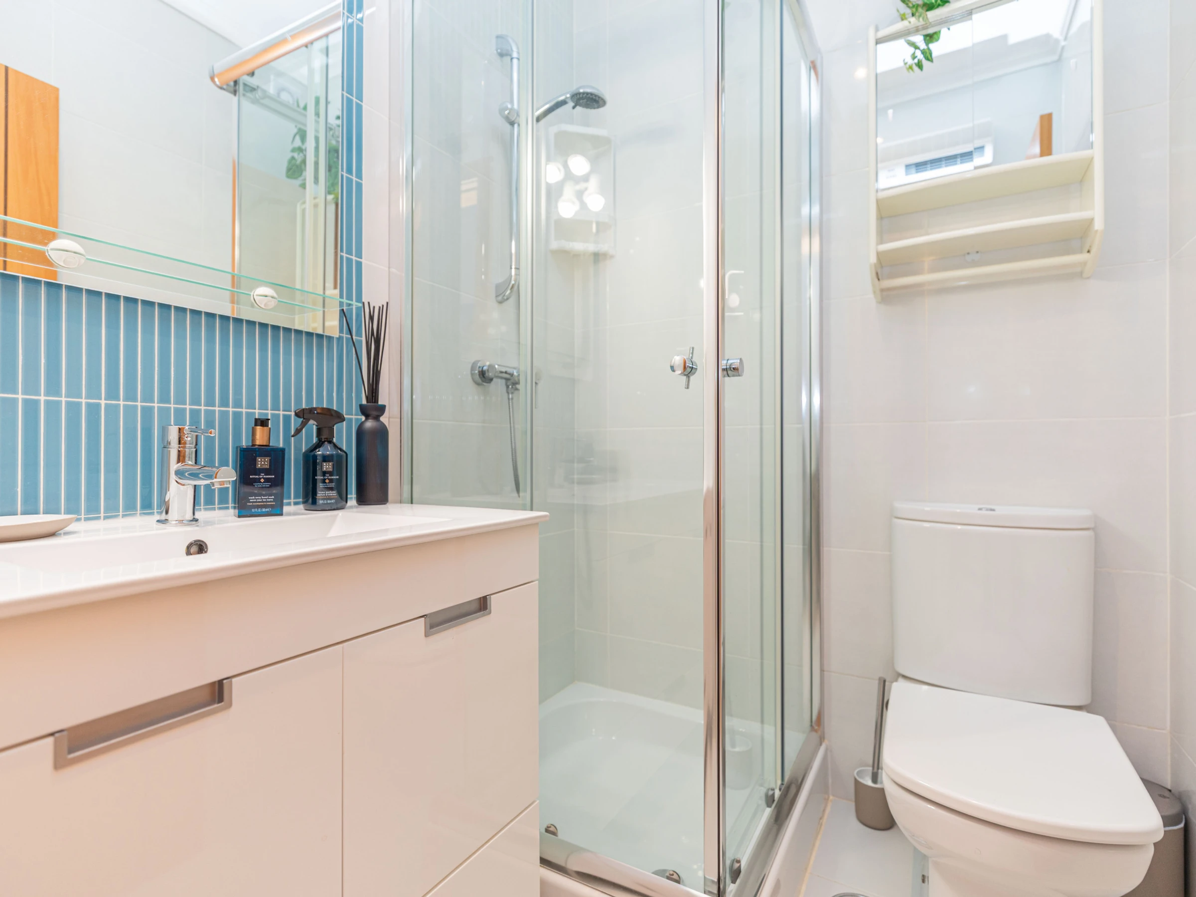 À l'arrière de l'appartement, vous trouverez deux chambres spacieuses et confortables, toutes deux dotées d'un grand espace de rangement et de la climatisation. La chambre principale comprend une salle de bain attenante, tandis qu'une salle de douche séparée dessert la deuxième chambre et les invités.