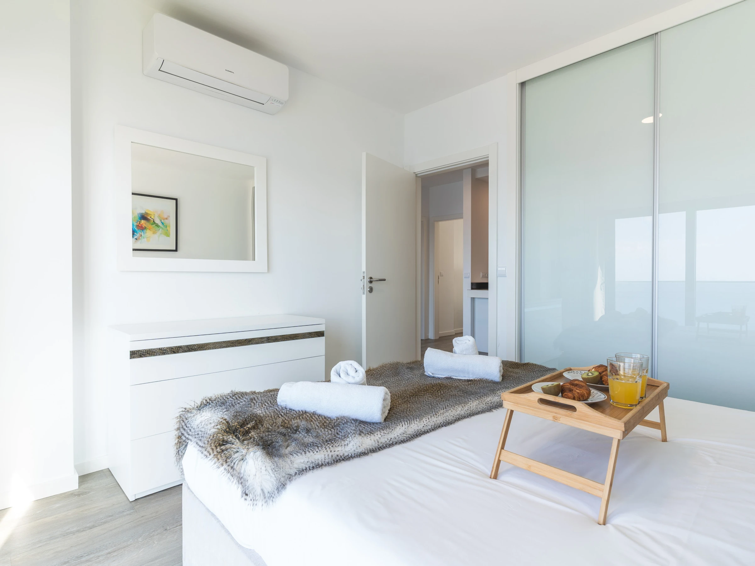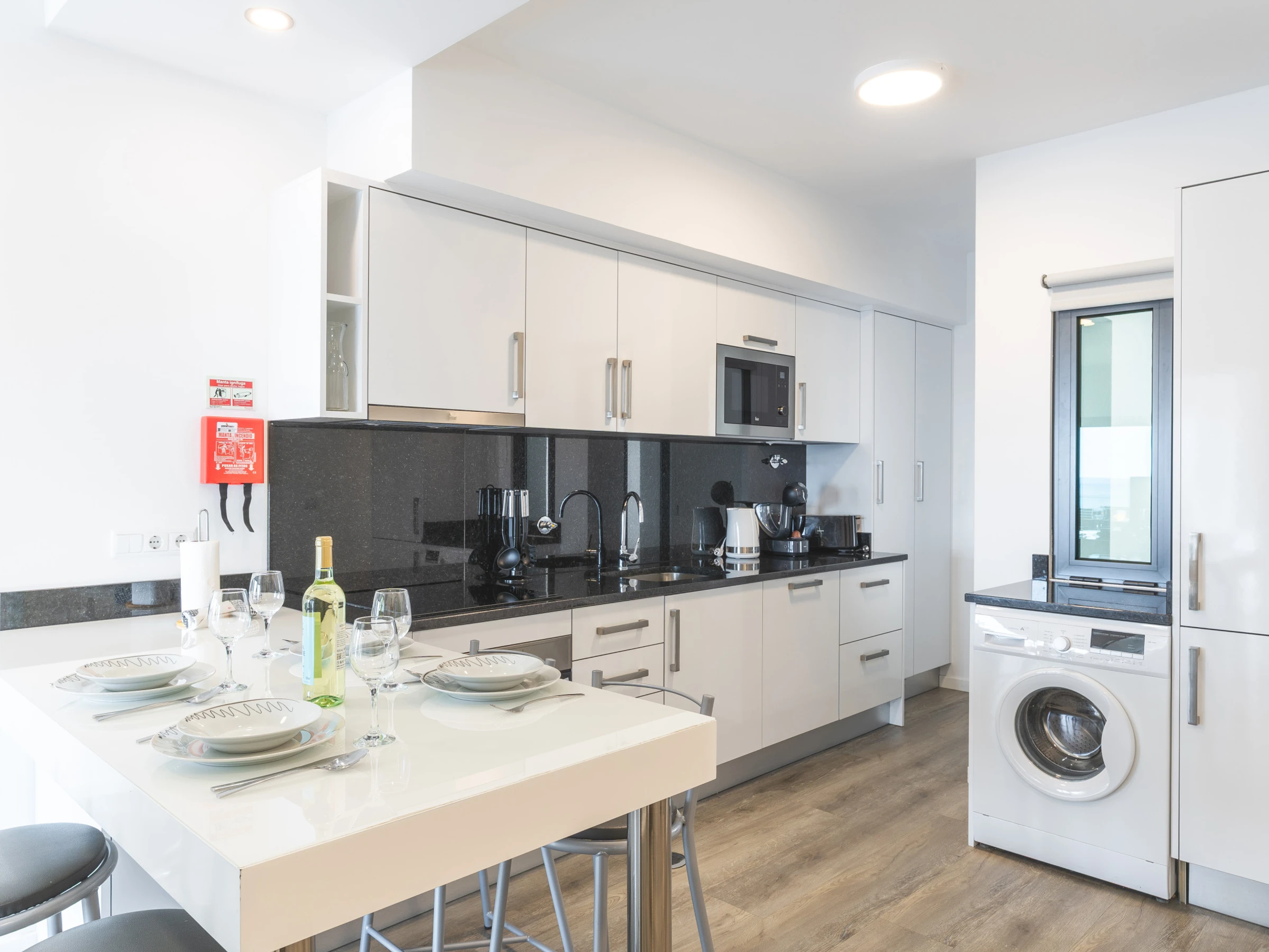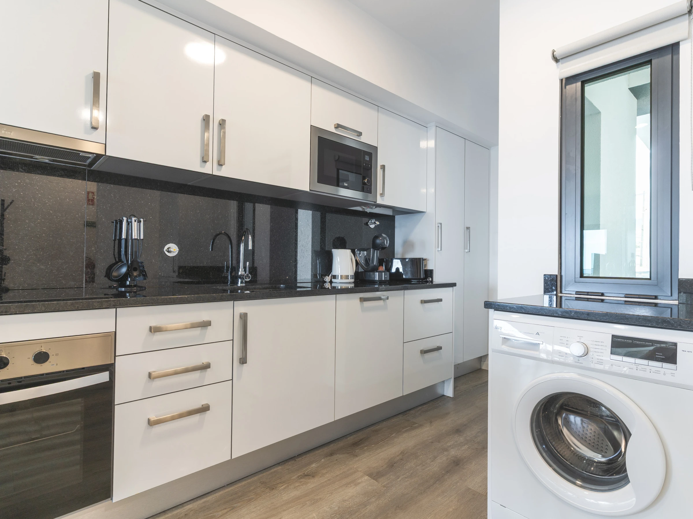 L'appartement comprend une salle de bain avec une douche et une cuisine entièrement équipée disposant d'un réfrigérateur, d'un congélateur, d'un four, d'un micro-ondes, d'une plaque de cuisson, de couverts, d'assiettes et de tout ce qui est nécessaire pour cuisiner. Dans l'espace de vie, vous trouverez une télévision intelligente avec un boîtier pour le divertissement, la climatisation et un lave-linge pour votre confort. Un sèche-cheveux est disponible, un lit de bébé et une chaise haute sont également disponibles sur demande.
