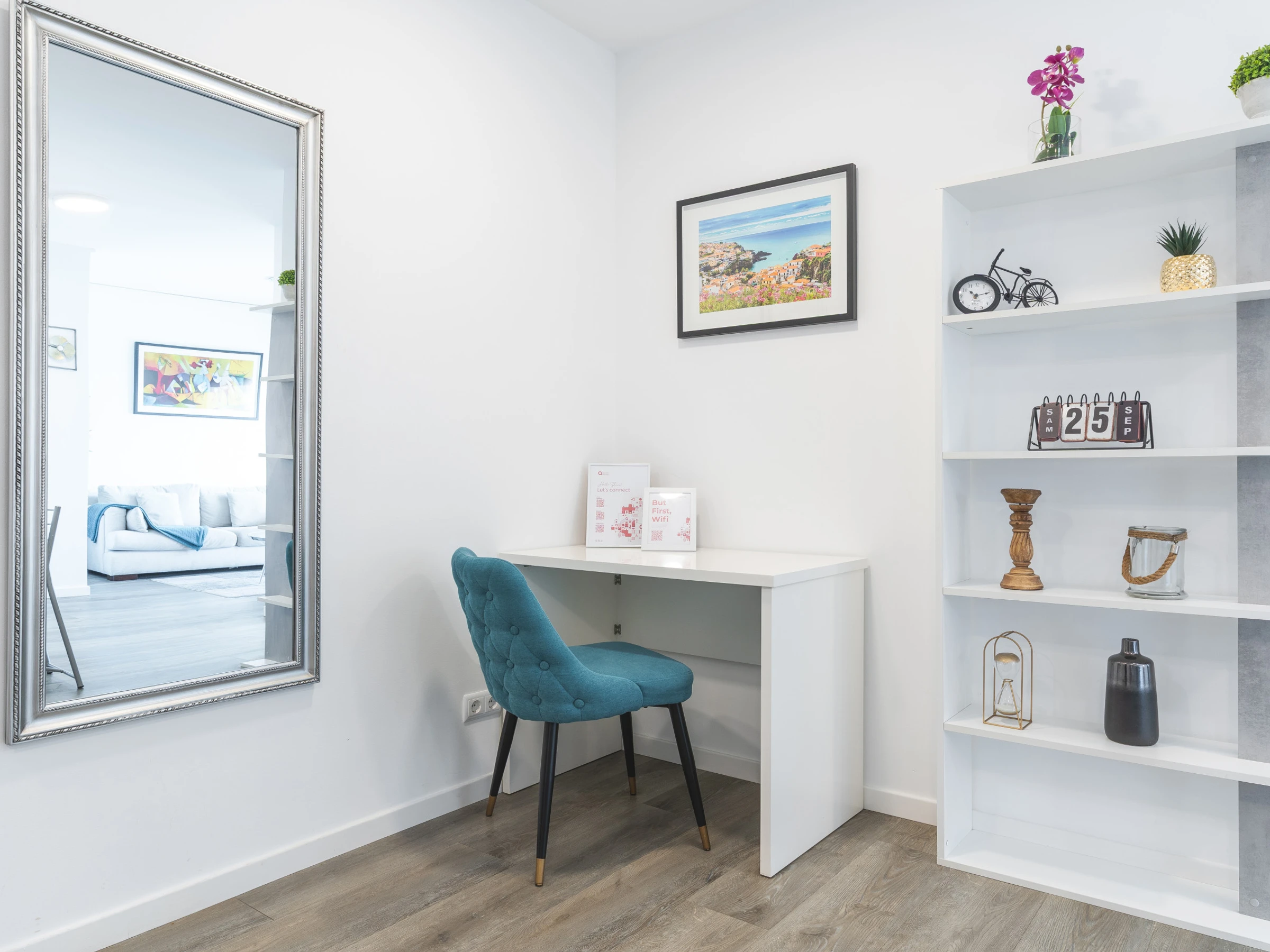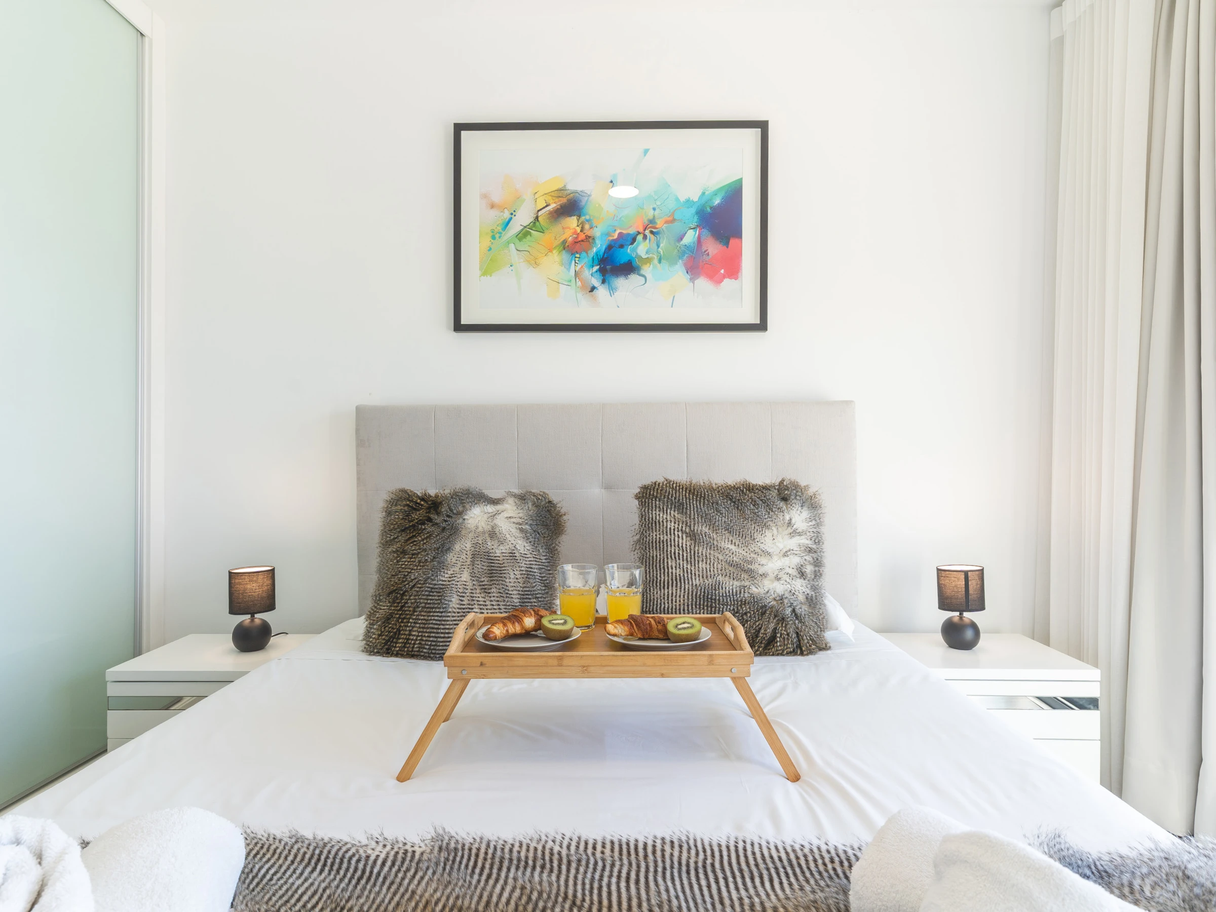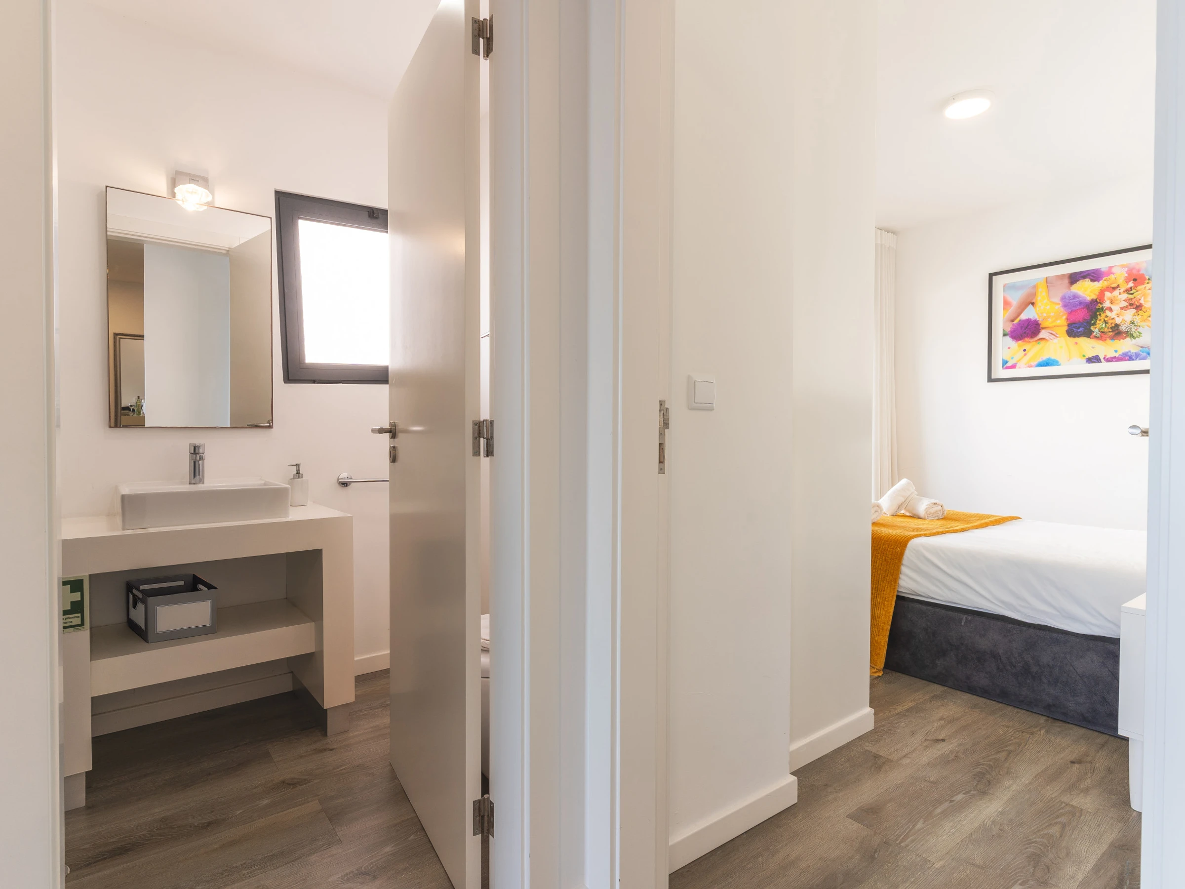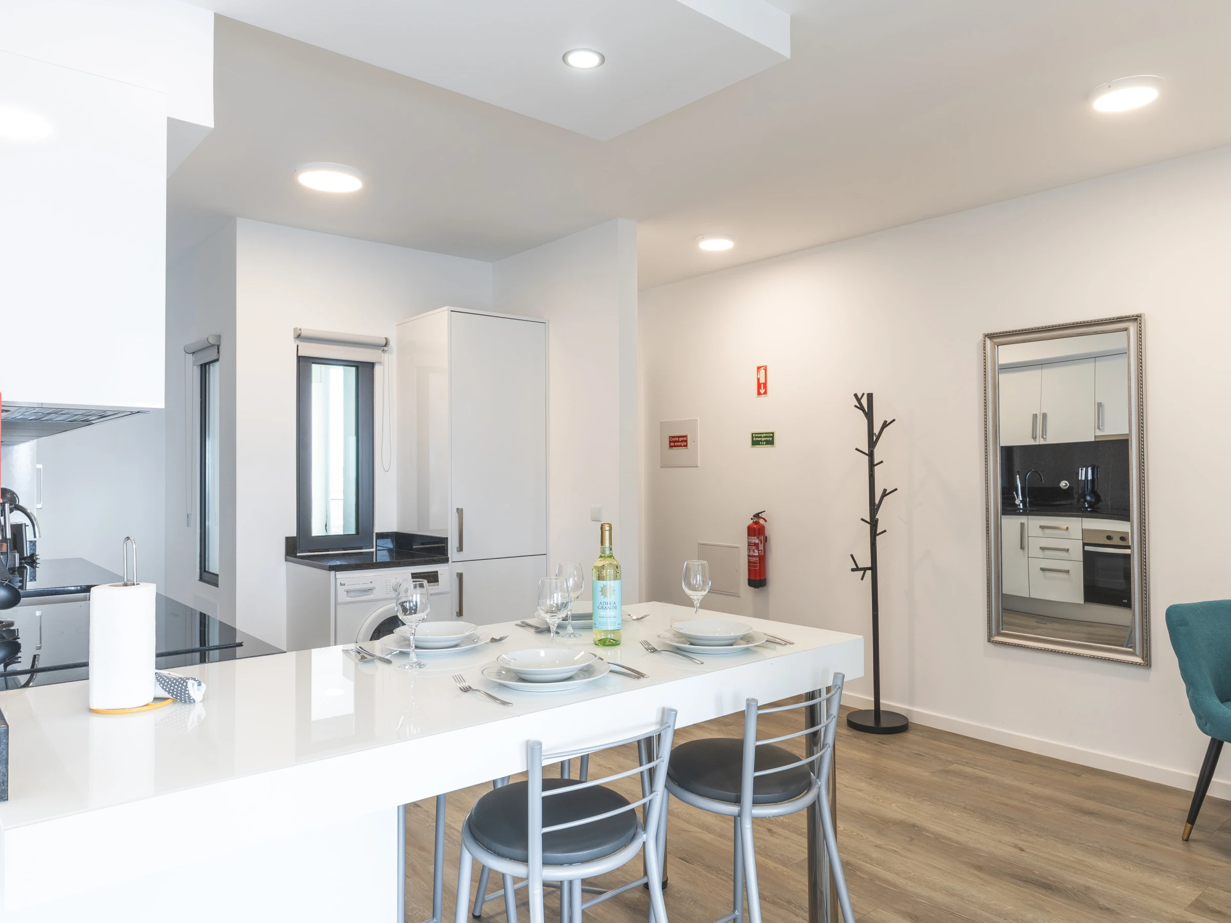 L'appartement comprend une salle de bain avec une douche et une cuisine entièrement équipée disposant d'un réfrigérateur, d'un congélateur, d'un four, d'un micro-ondes, d'une plaque de cuisson, de couverts, d'assiettes et de tout ce qui est nécessaire pour cuisiner. Dans l'espace de vie, vous trouverez une télévision intelligente avec un boîtier pour le divertissement, la climatisation et un lave-linge pour votre confort. Un sèche-cheveux est disponible, un lit de bébé et une chaise haute sont également disponibles sur demande.