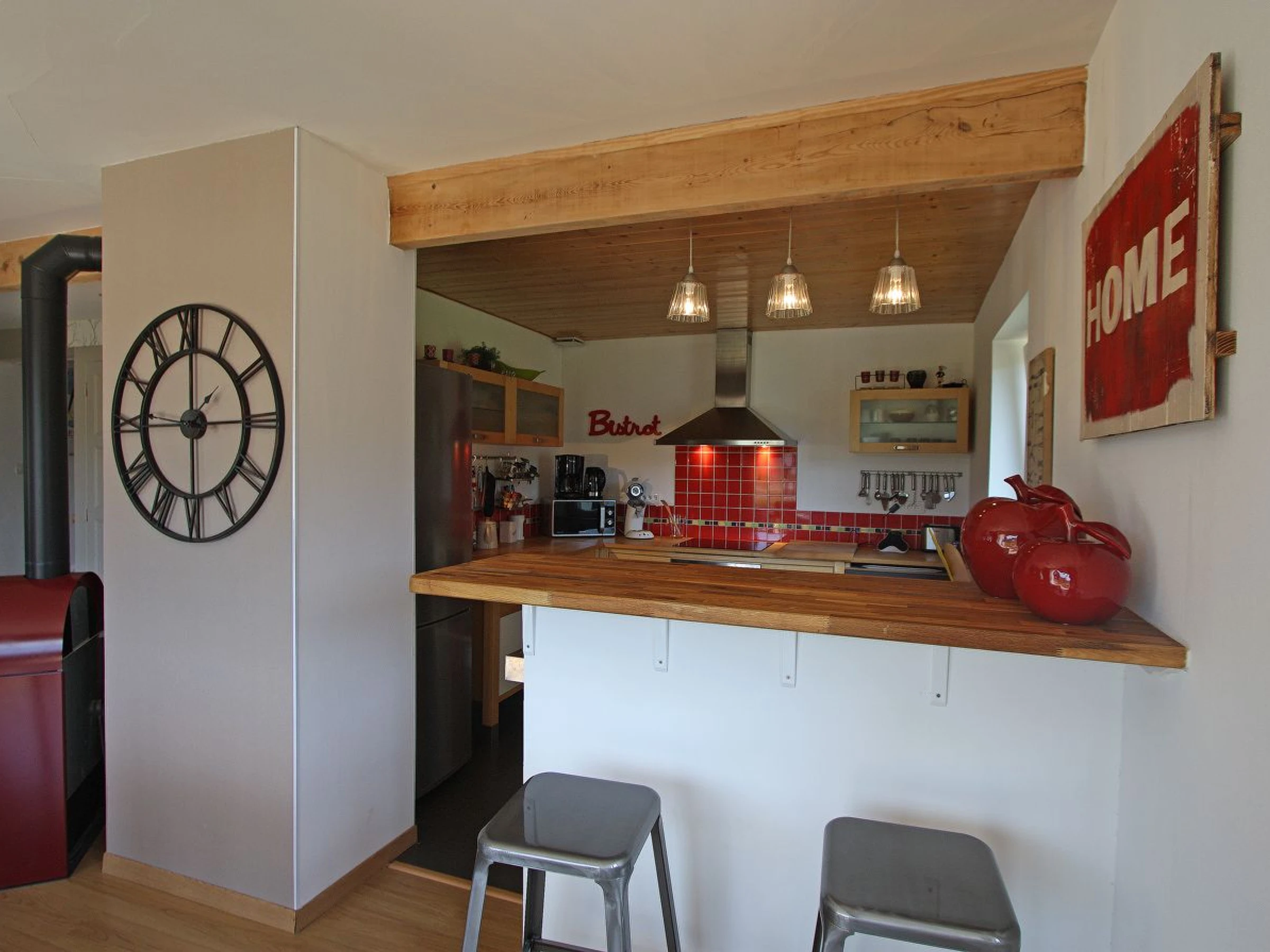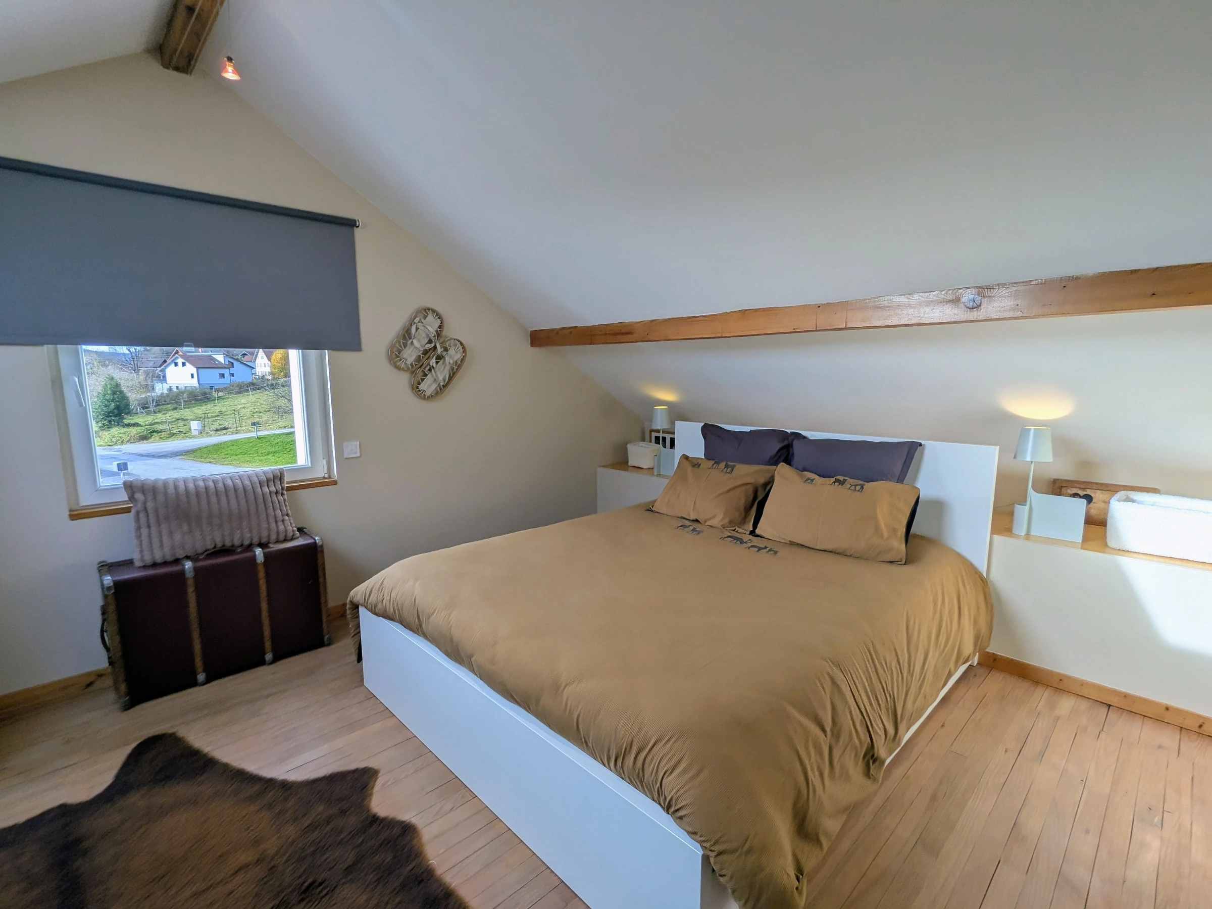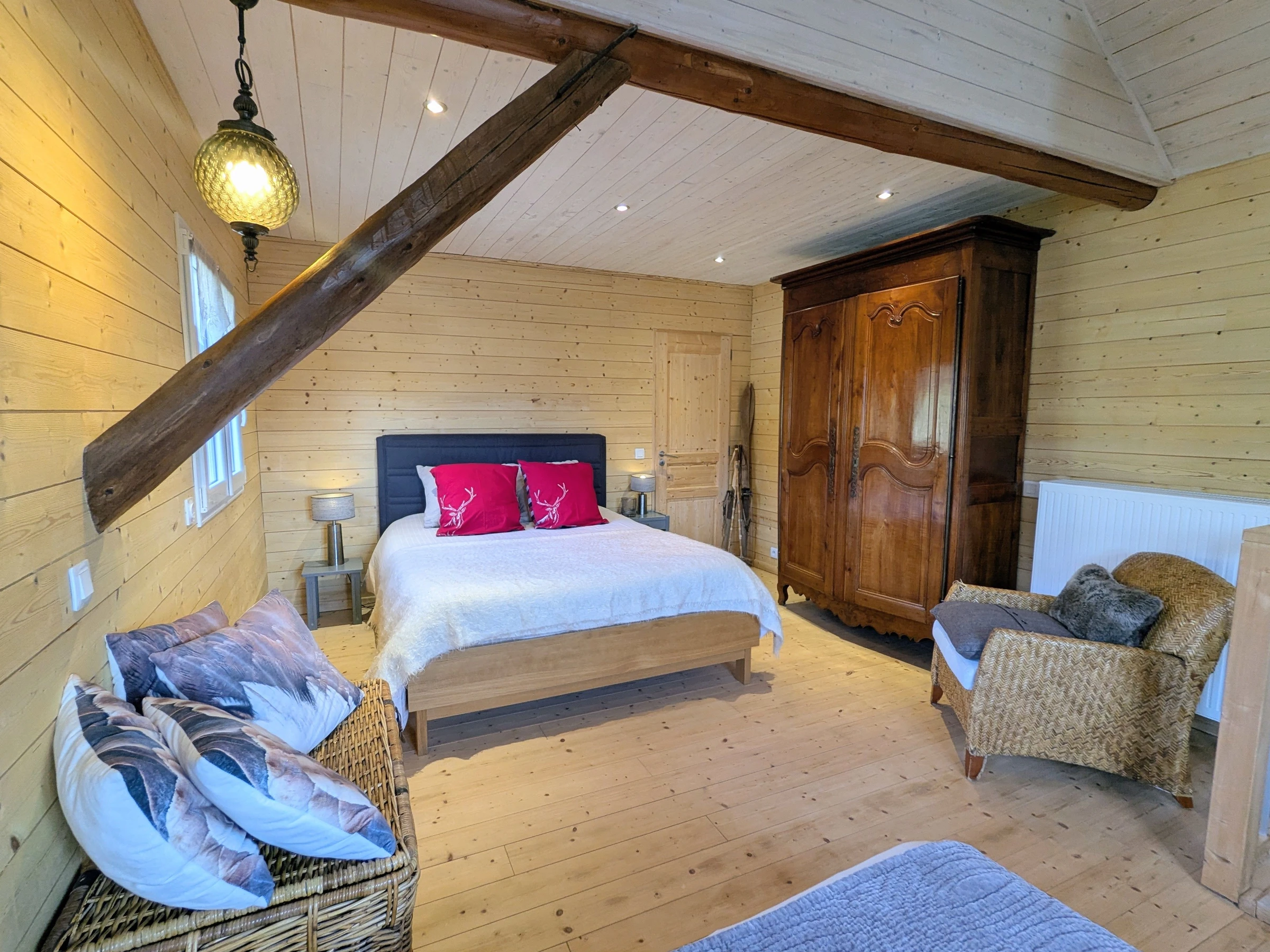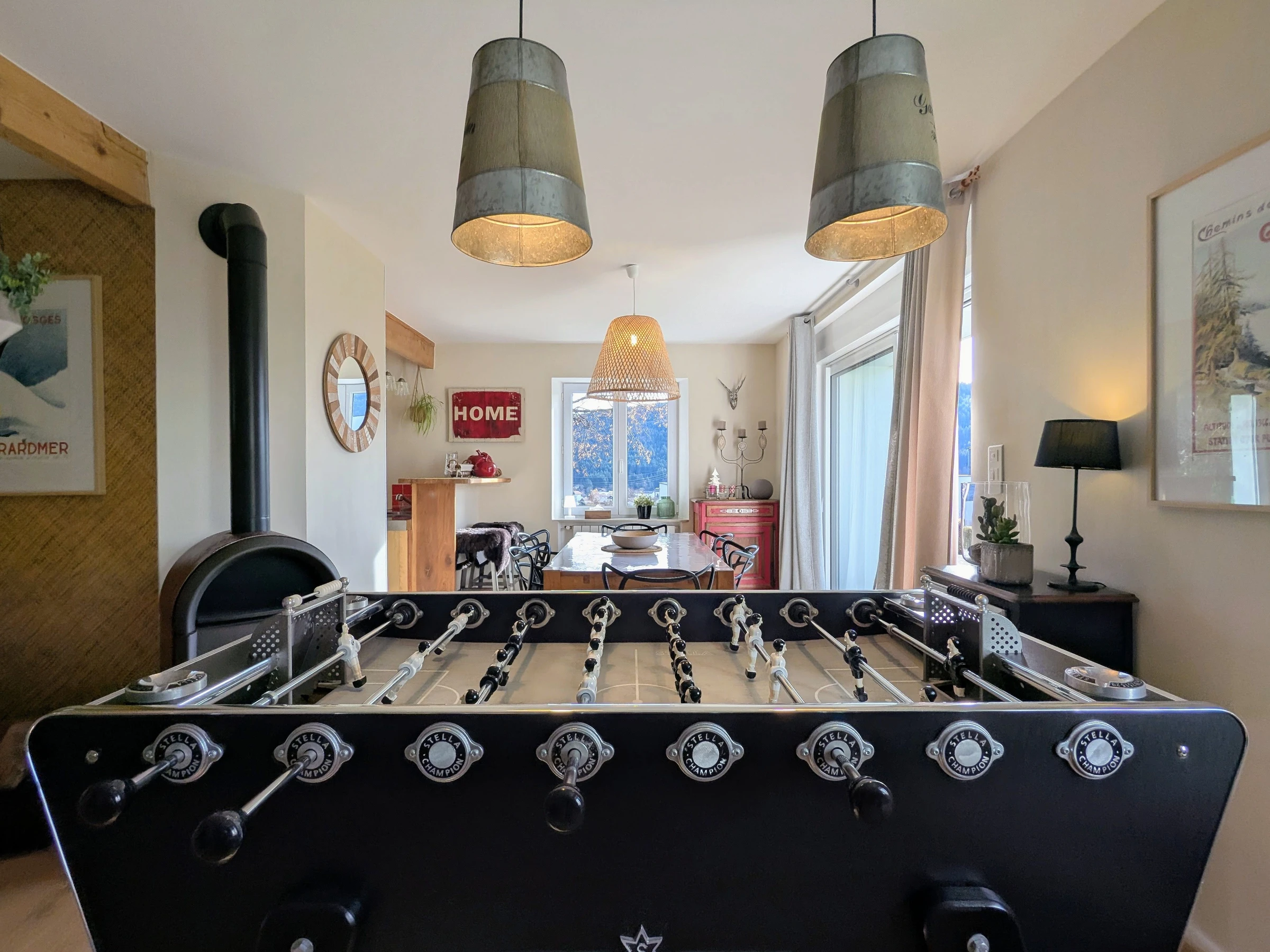 Le gîte dispose d’une pièce de vie accueillante où vous pourrez vous détendre autour d’un babyfoot, pour des moments ludiques en famille ou entre amis. Un poêle cheminée ajoute une touche cosy et authentique, idéale pour les soirées plus fraîches. La maison est également dotée de nombreux rangements, vous permettant d’organiser facilement vos affaires pour un séjour sans encombre.