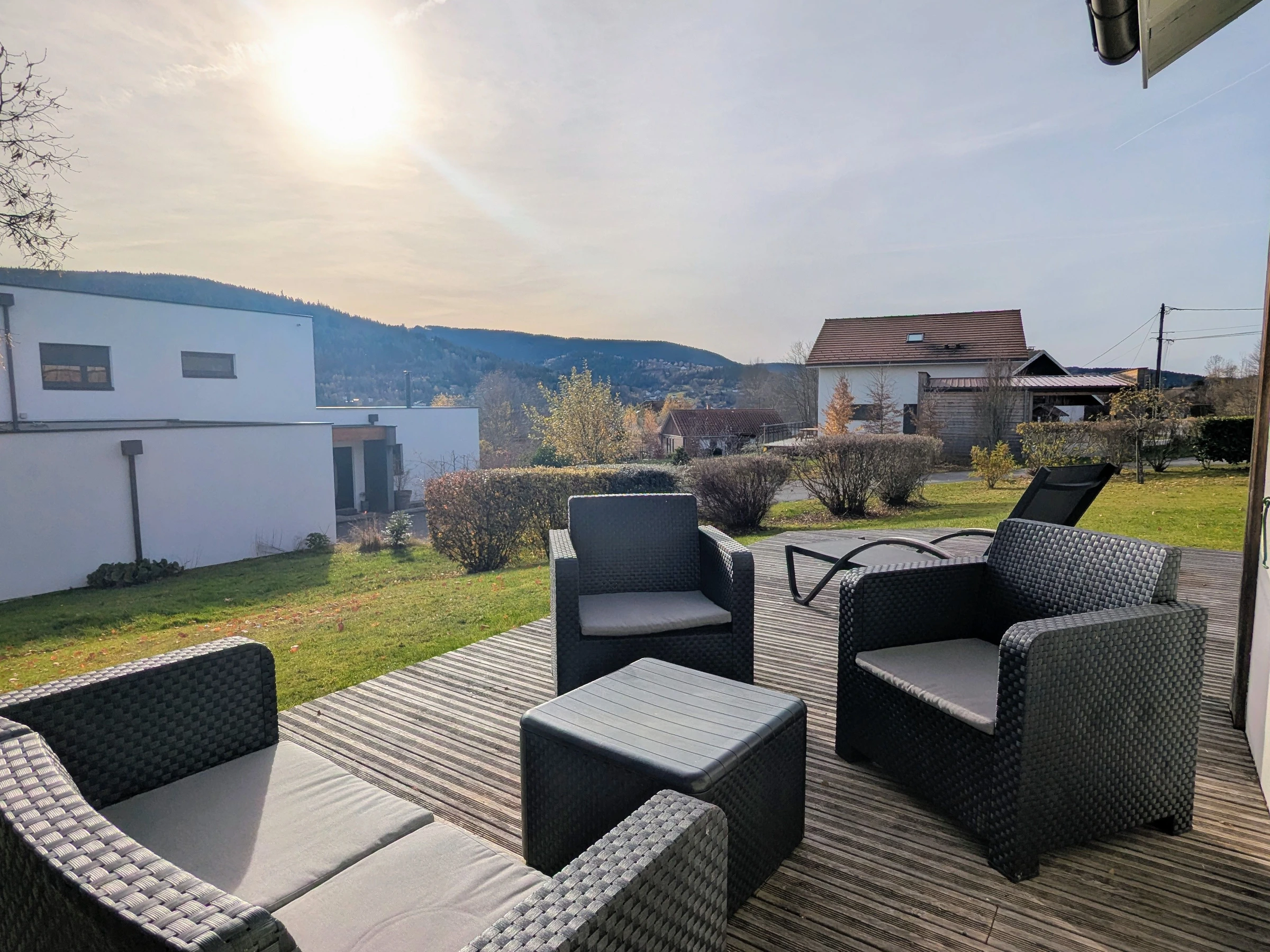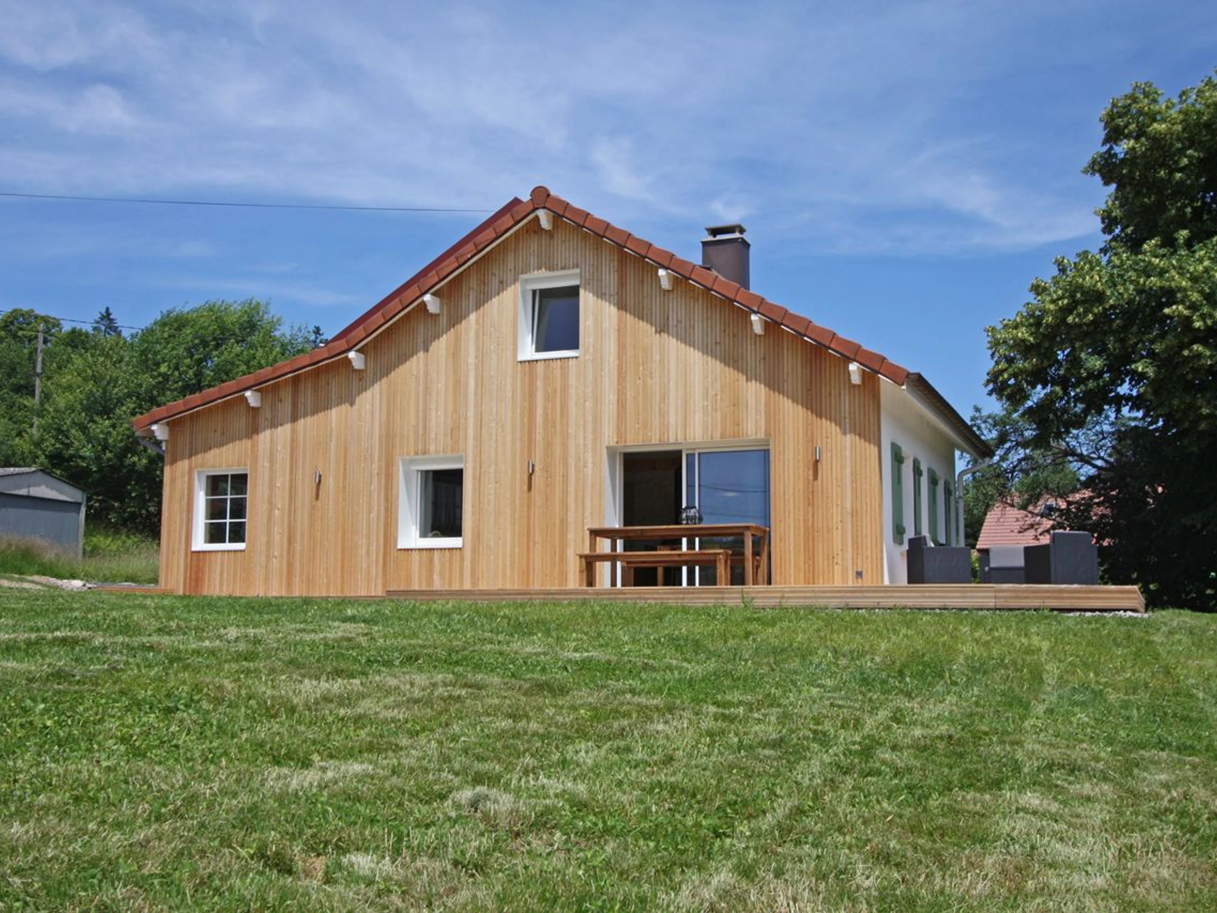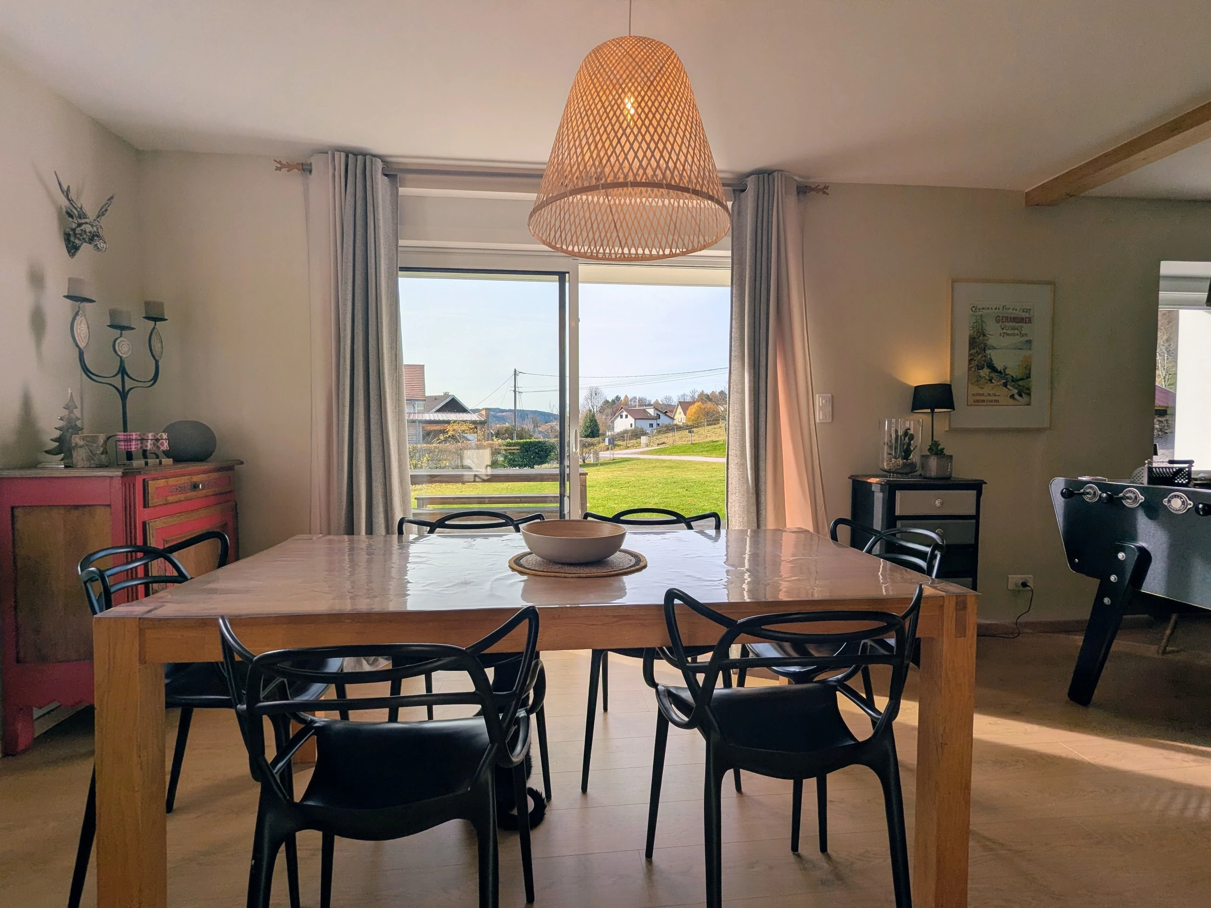 Babyfoot. Buanderie avec lave-linge et sèche-linge. Poêle à bois (1ère corbeille de bois offerte ensuite 10€ le panier supplémentaire). Abri voiture. Terrain en herbe de 800 m². Terrain de pétanque. Terrasse de 55m². Chauffage par pompe à chaleur. Électricité comprise jusqu'à 30kwh/jour