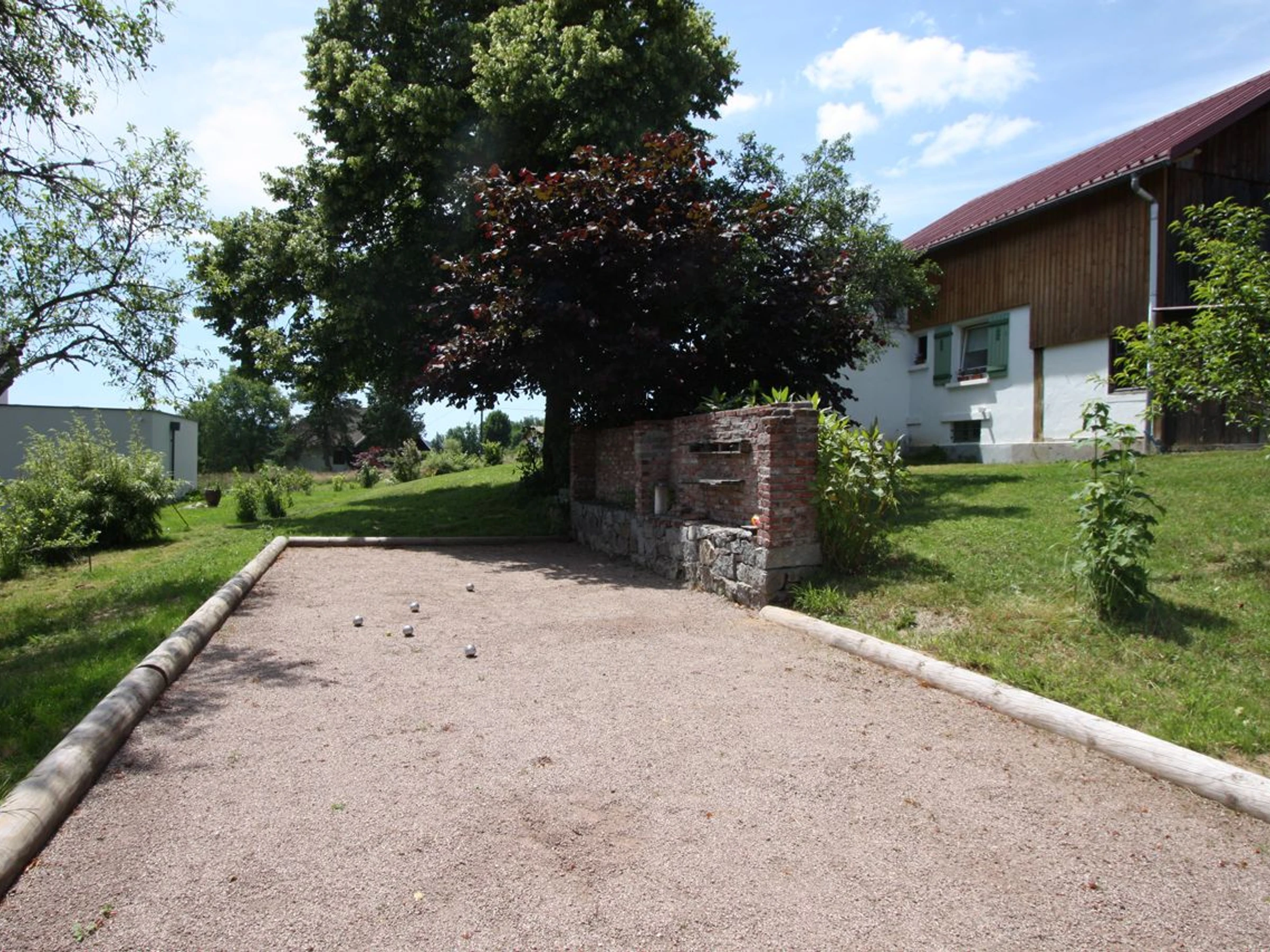 Profitez pleinement de la terrasse en bois de 55 m² orientée plein sud, un véritable espace extérieur pour savourer les journées ensoleillées, prendre vos repas ou simplement vous relaxer en profitant du cadre naturel environnant. Le terrain de pétanque situé sur la propriété invite à la convivialité et aux parties animées en plein air, pour des instants de partage inoubliables.