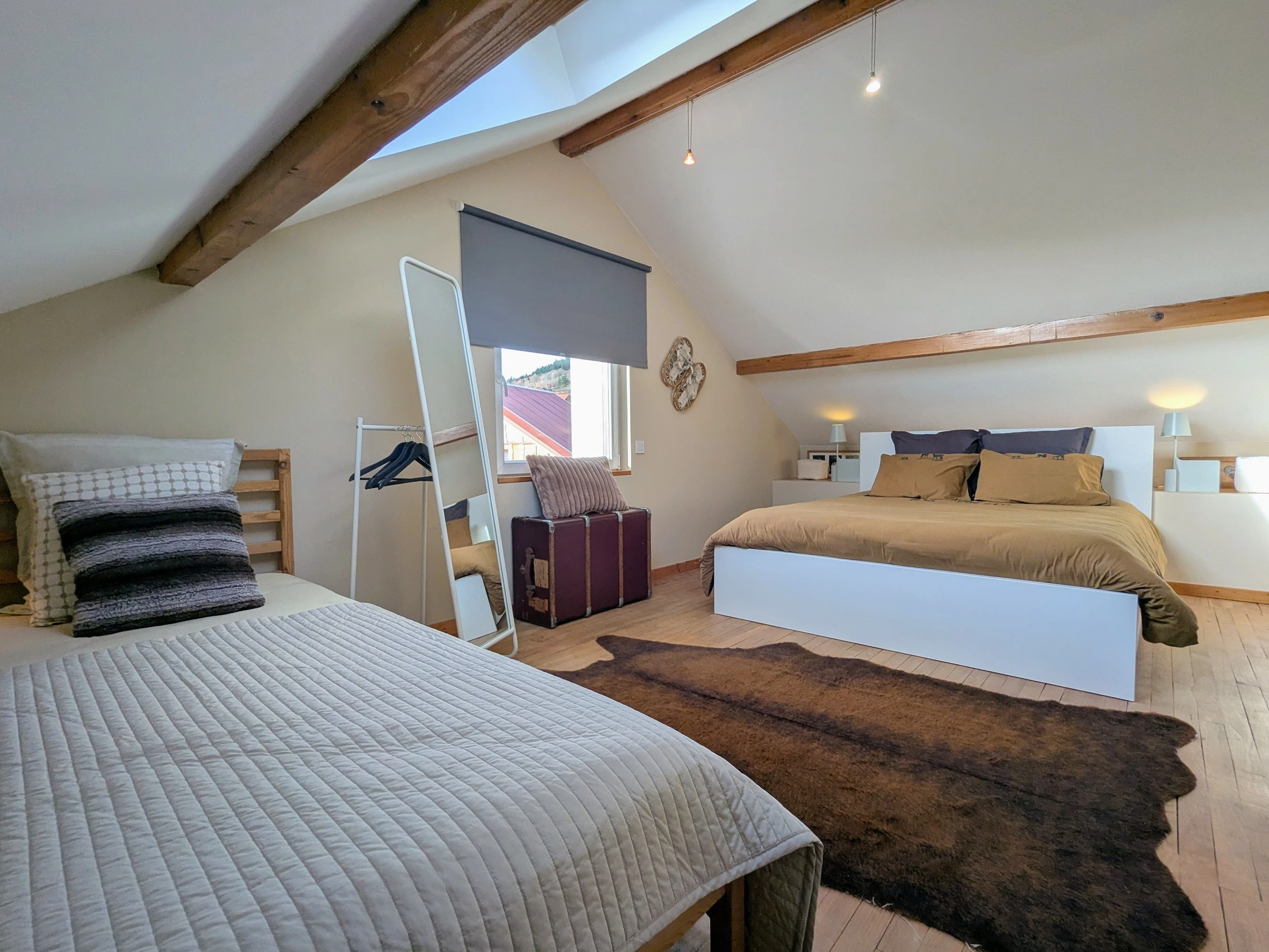 Le gîte dispose d’une pièce de vie accueillante où vous pourrez vous détendre autour d’un babyfoot, pour des moments ludiques en famille ou entre amis. Un poêle cheminée ajoute une touche cosy et authentique, idéale pour les soirées plus fraîches. La maison est également dotée de nombreux rangements, vous permettant d’organiser facilement vos affaires pour un séjour sans encombre.