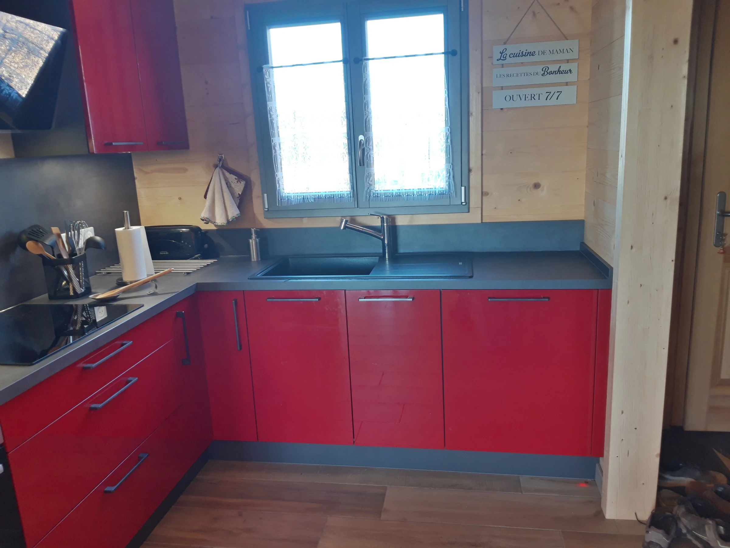 - Cuisine/salle à manger/séjour avec espace détente, TV écran plat (bouquet de chaines Bouygues)
