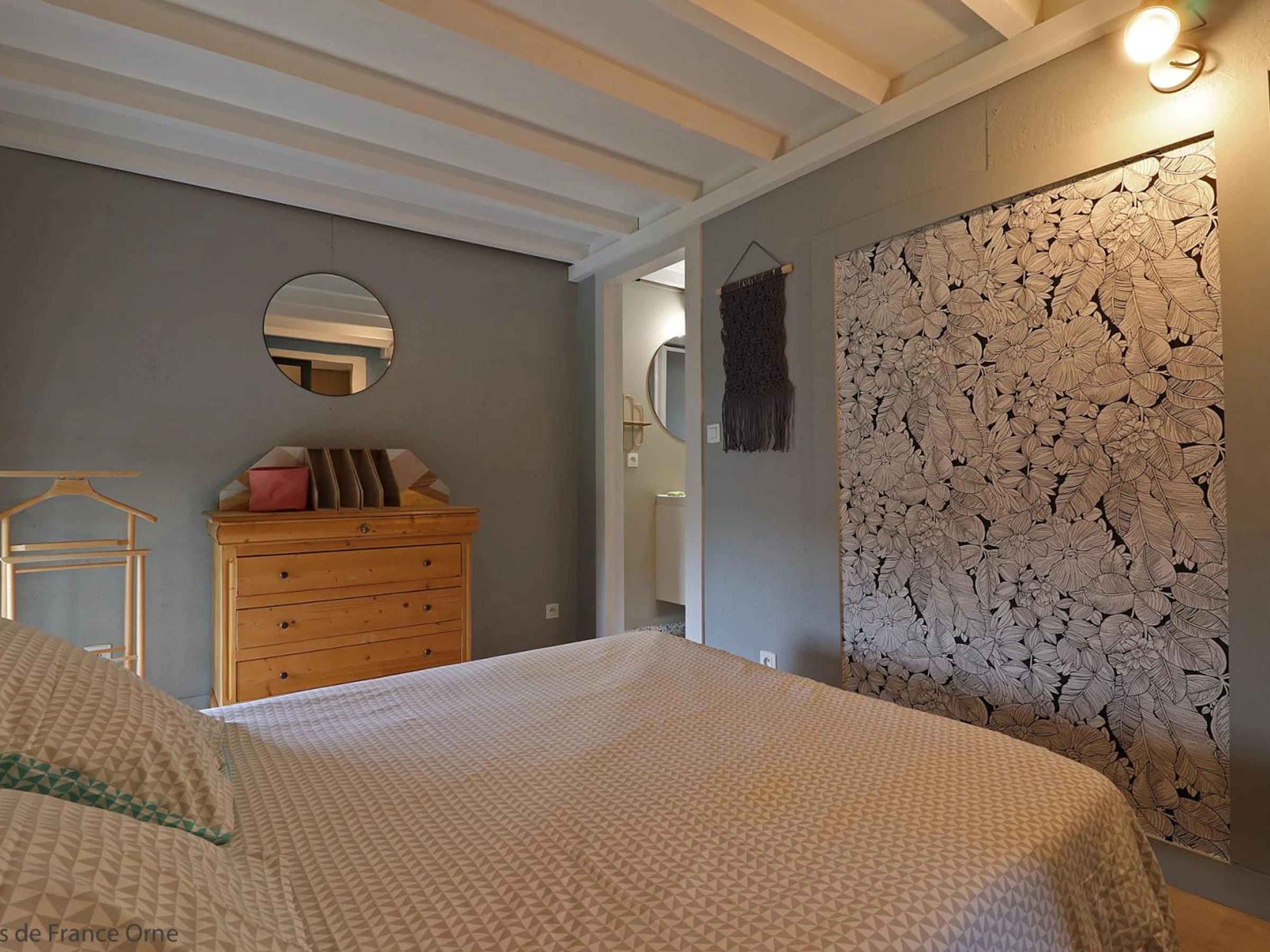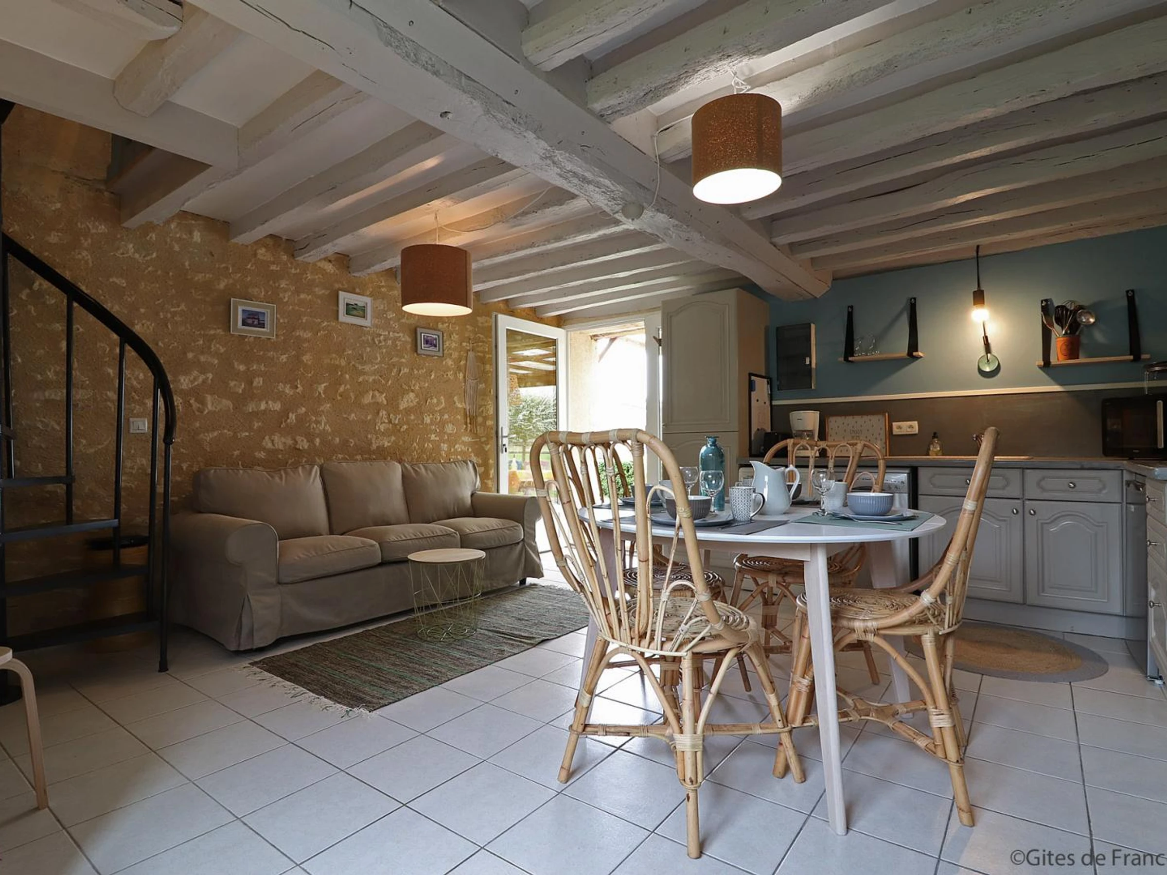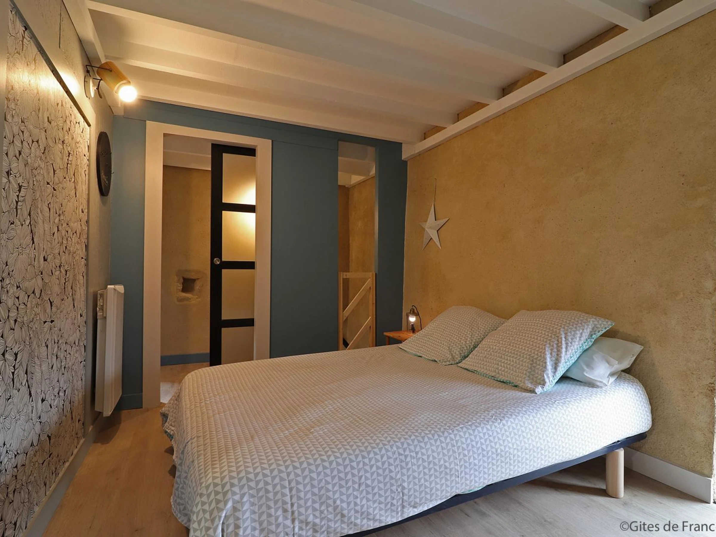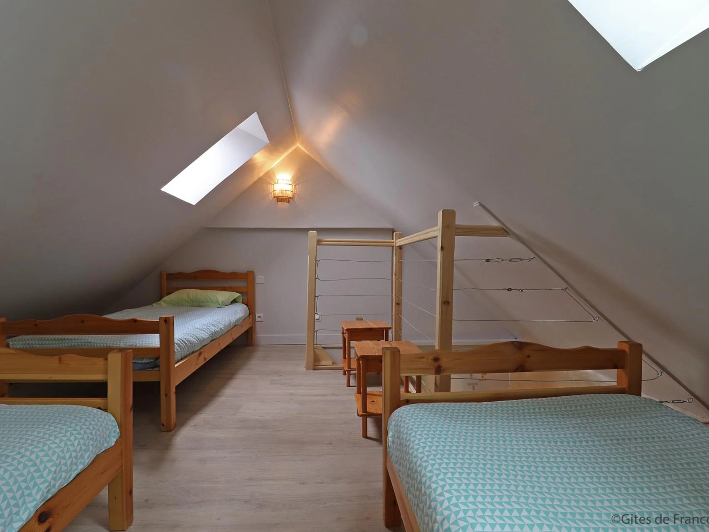Étage par escalier en colimaçon : chambre (1 lit 2 personnes), salle d'eau avec WC, mezzanine (3 lits 1 personne).