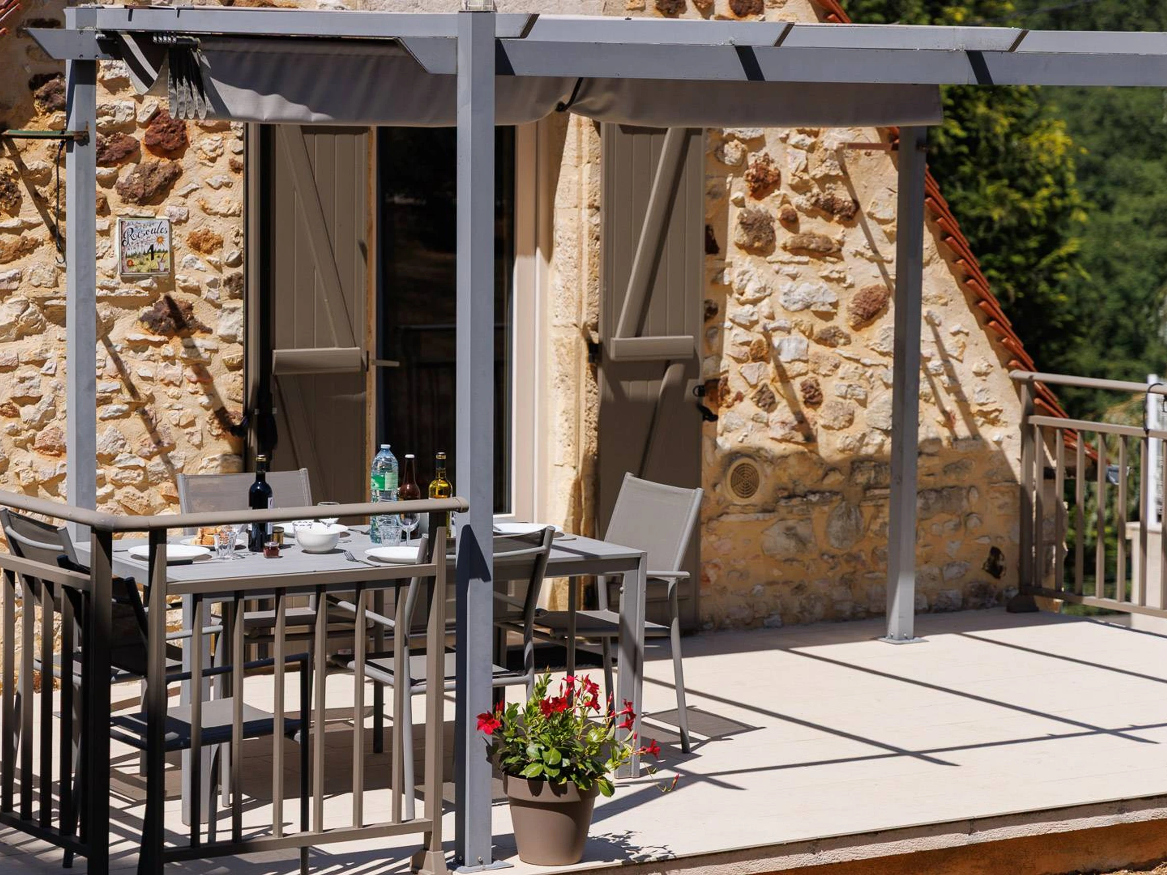 À l’extérieur, une vaste terrasse ensoleillée vous attend pour vos repas, siestes ou apéros, bercés par le chant des oiseaux. Grâce au store, vous pourrez moduler ombre et lumière selon vos envies.