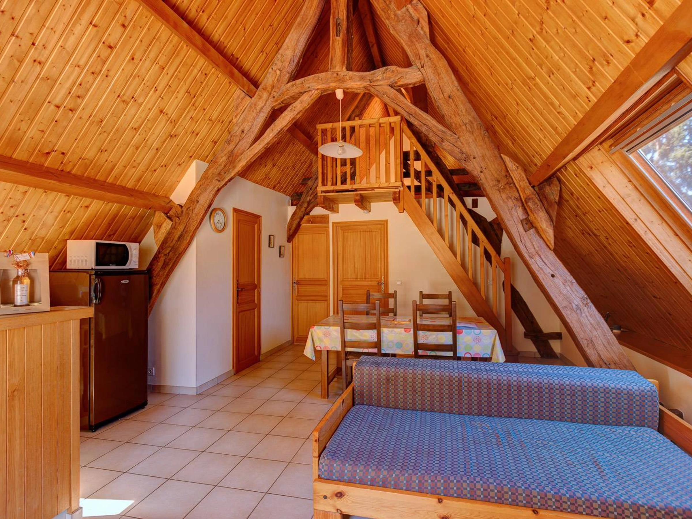 - une mezzanine avec 2 lits simples - l’accès à la mezzanine est réservé aux personnes âgées de plus de 11 ans, pour des raisons de sécurité.
