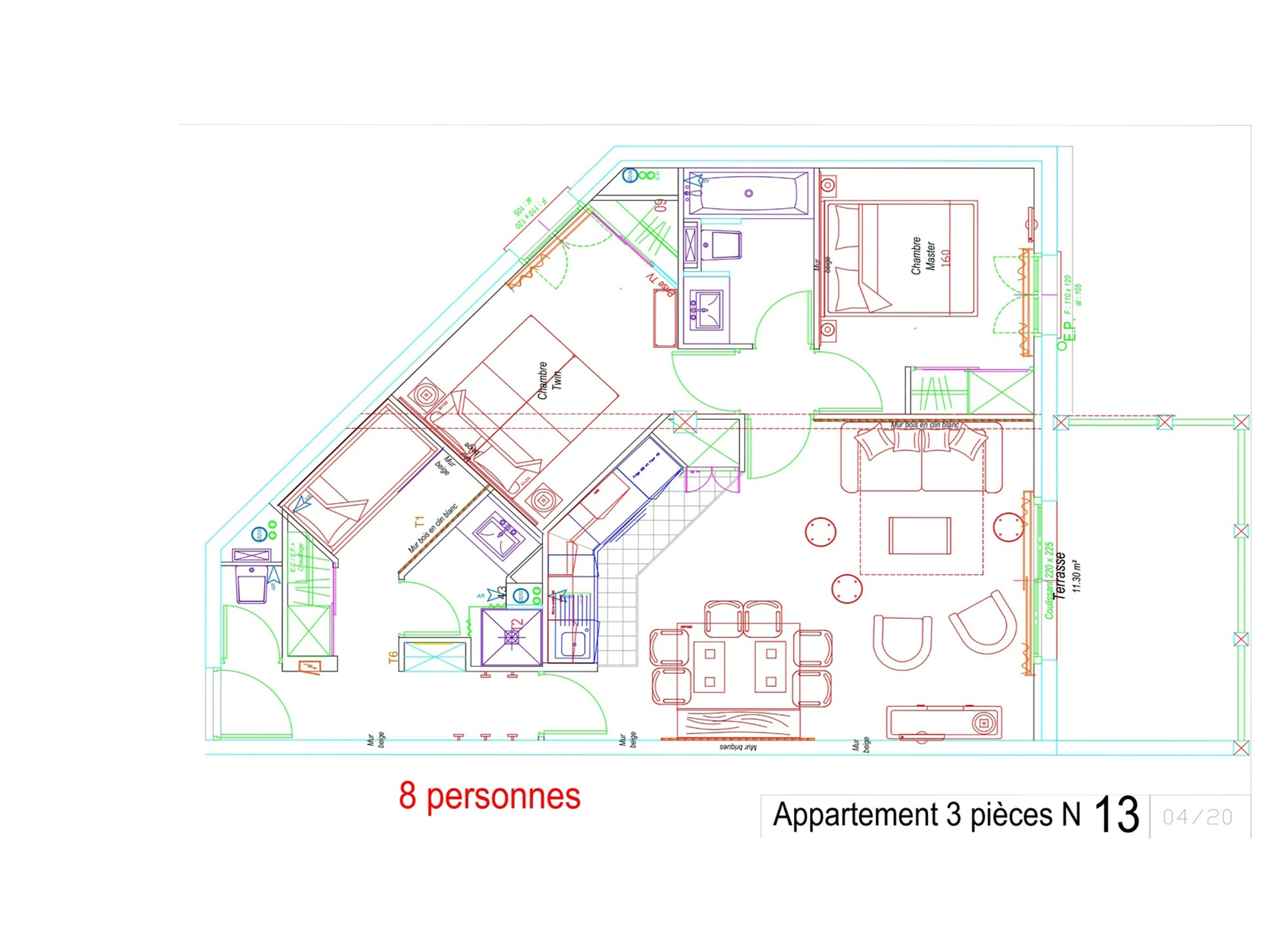 Résidence LE PORTILLO avec piscine, appartement 3 pièces pour 6/8 personnes, de 67m², exposé Sud-Ouest, vue pistes et station, situé 1°étage avec terrasse.