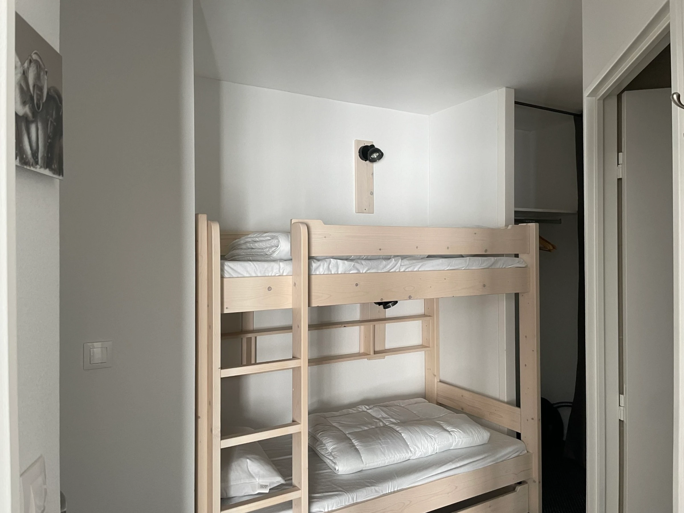 Entrée : coin montagne avec 2 lits superposés en 90.