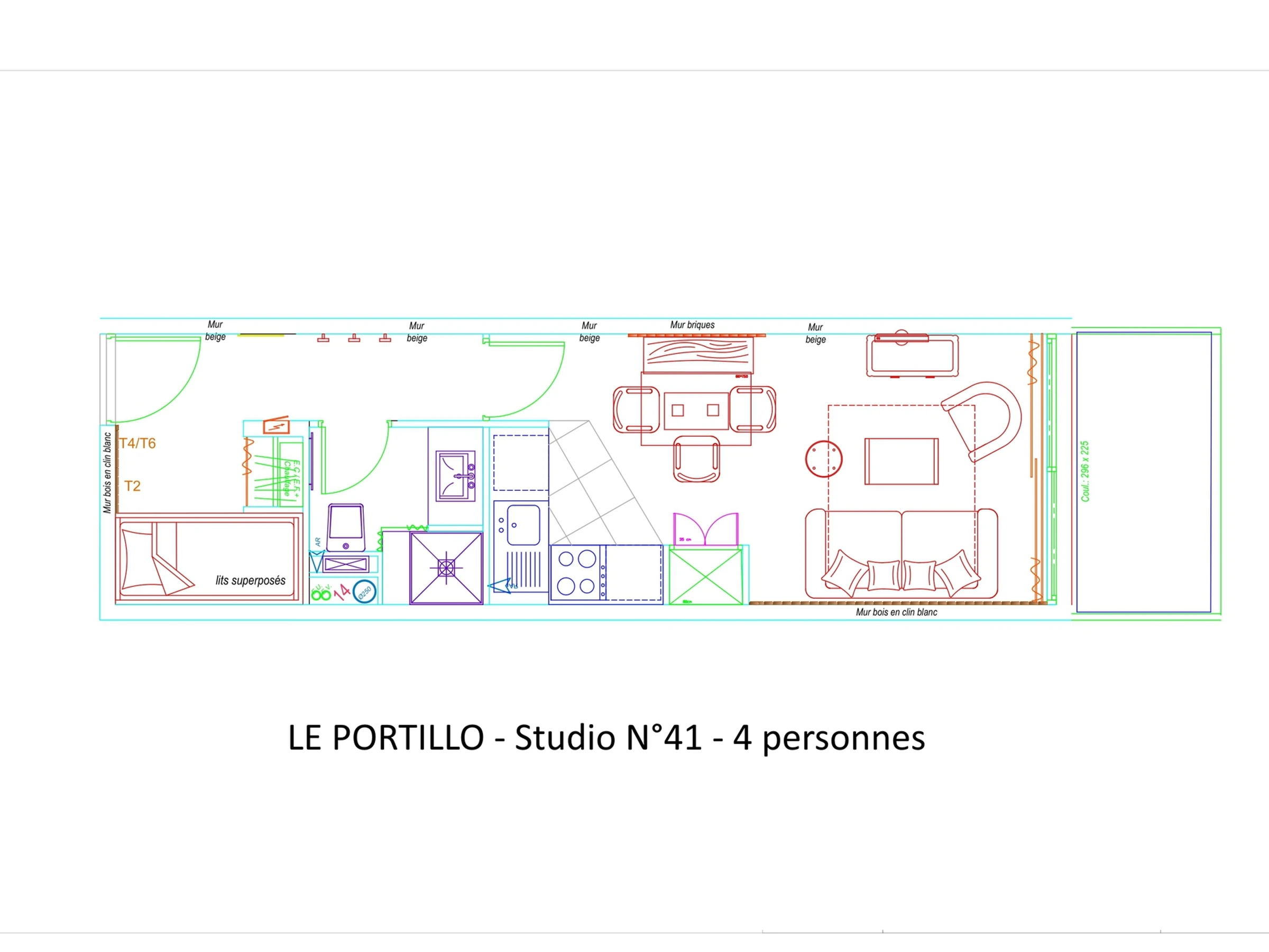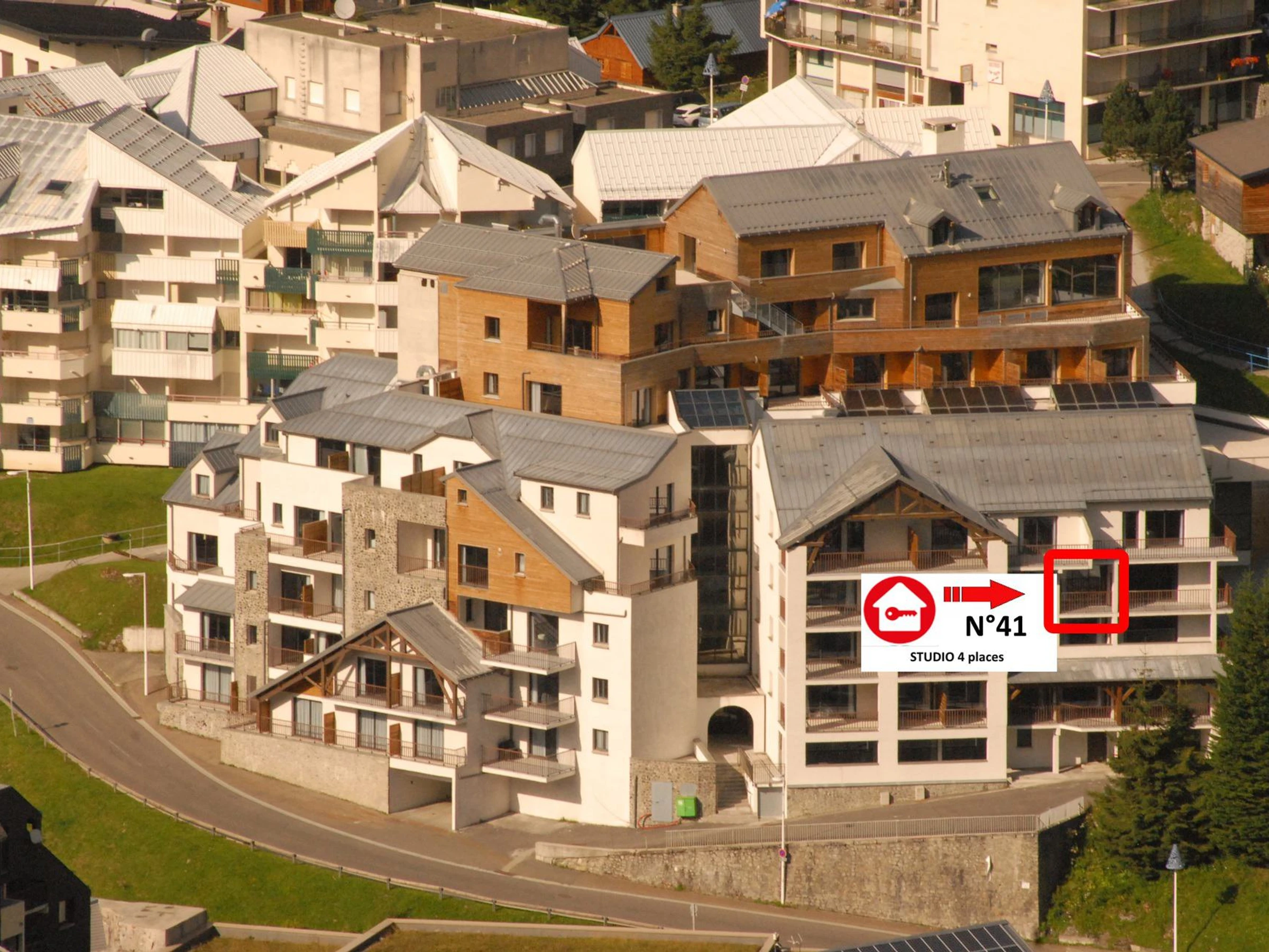 Résidence LE PORTILLO avec piscine, studio pour 4 personnes, 28 m², exposé Sud-Ouest, vue pistes et montagne, situé au 3°étage avec balcon.