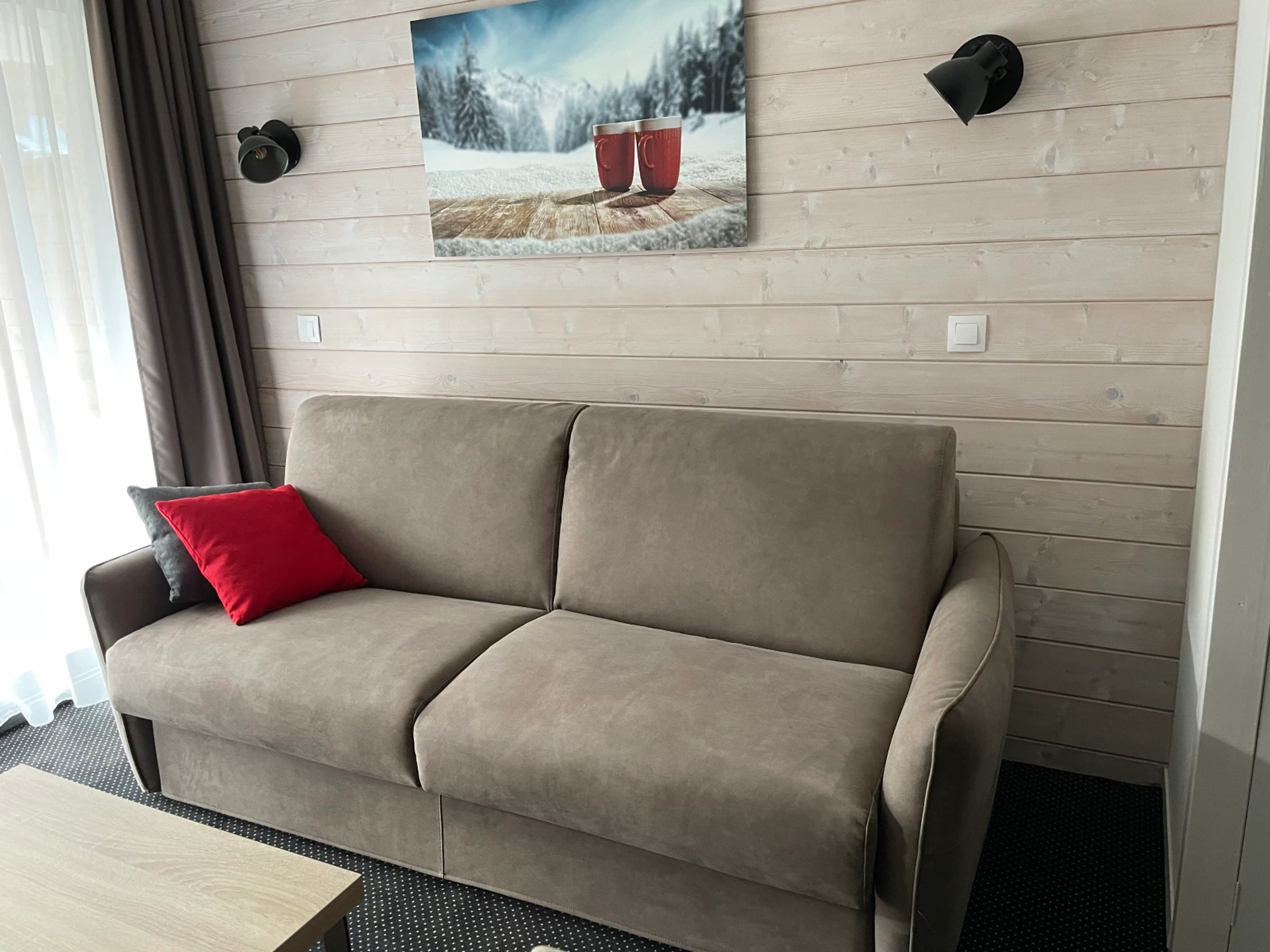 Entrée : coin montagne avec 2 lits superposés en 90.