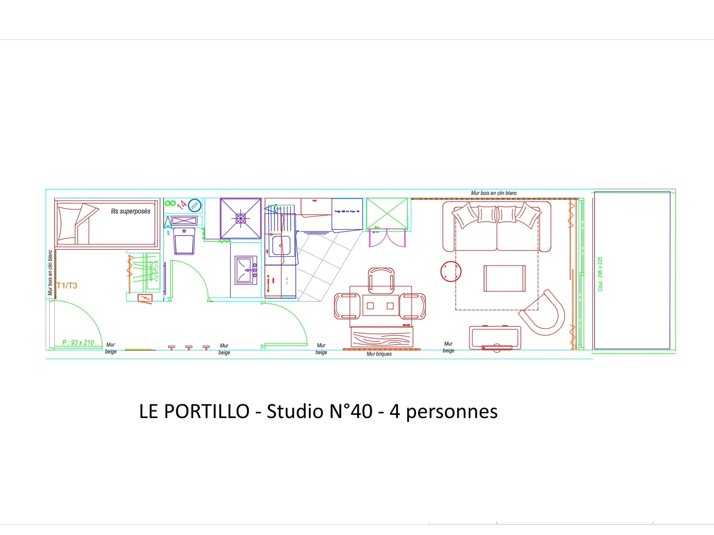 Résidence LE PORTILLO avec piscine, studio pour 4 personnes, de 29 m², exposé Sud-Ouest, vue pistes montagne, situé au 3°étage avec balcon.