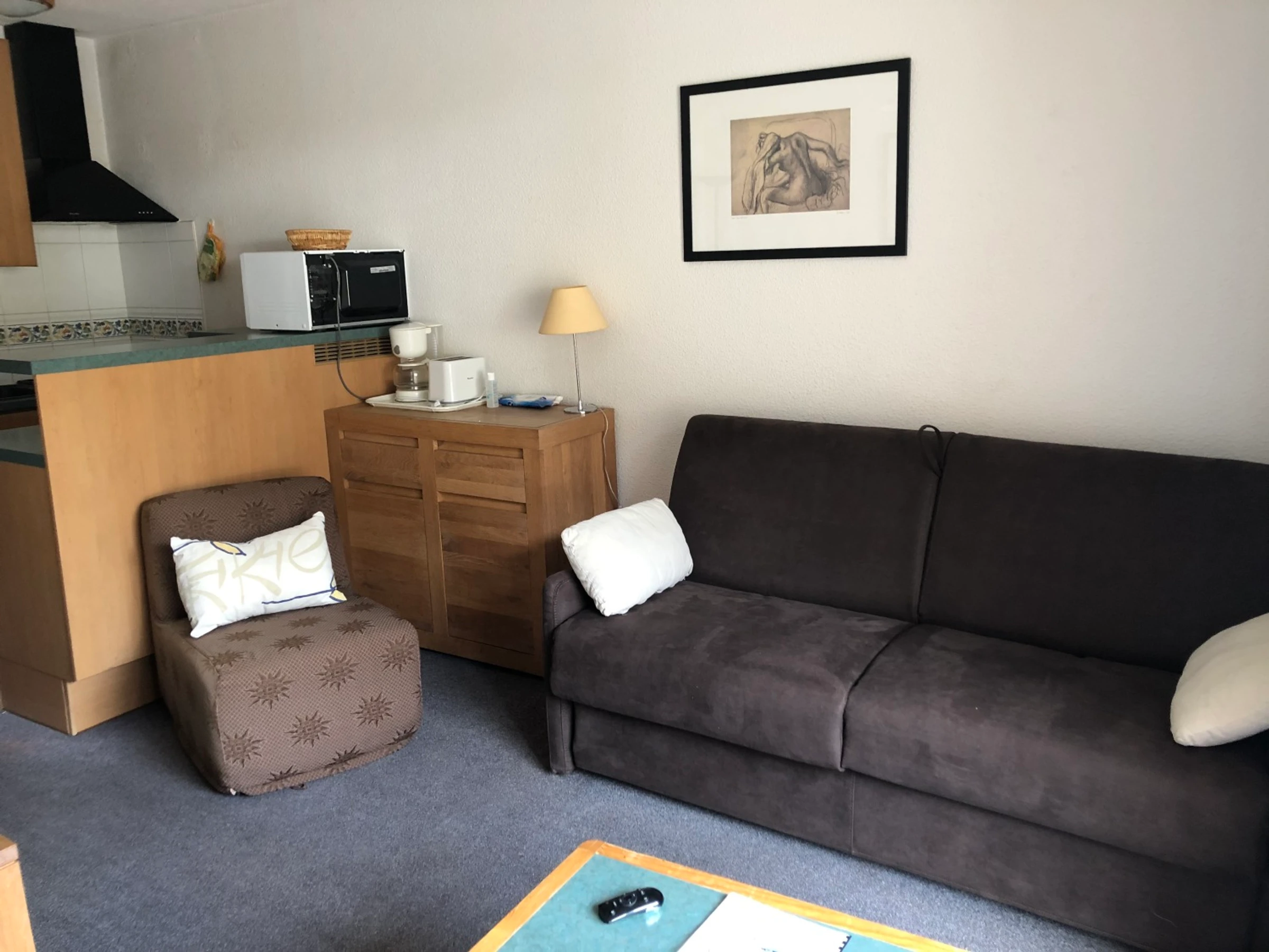 Résidence LES MARMOTTES, studio catégorie confort pour 4 personnes, 1°étage, vue pistes, 26m² , balcon exposé Sud-Est, placard à ski, chauffage électrique.