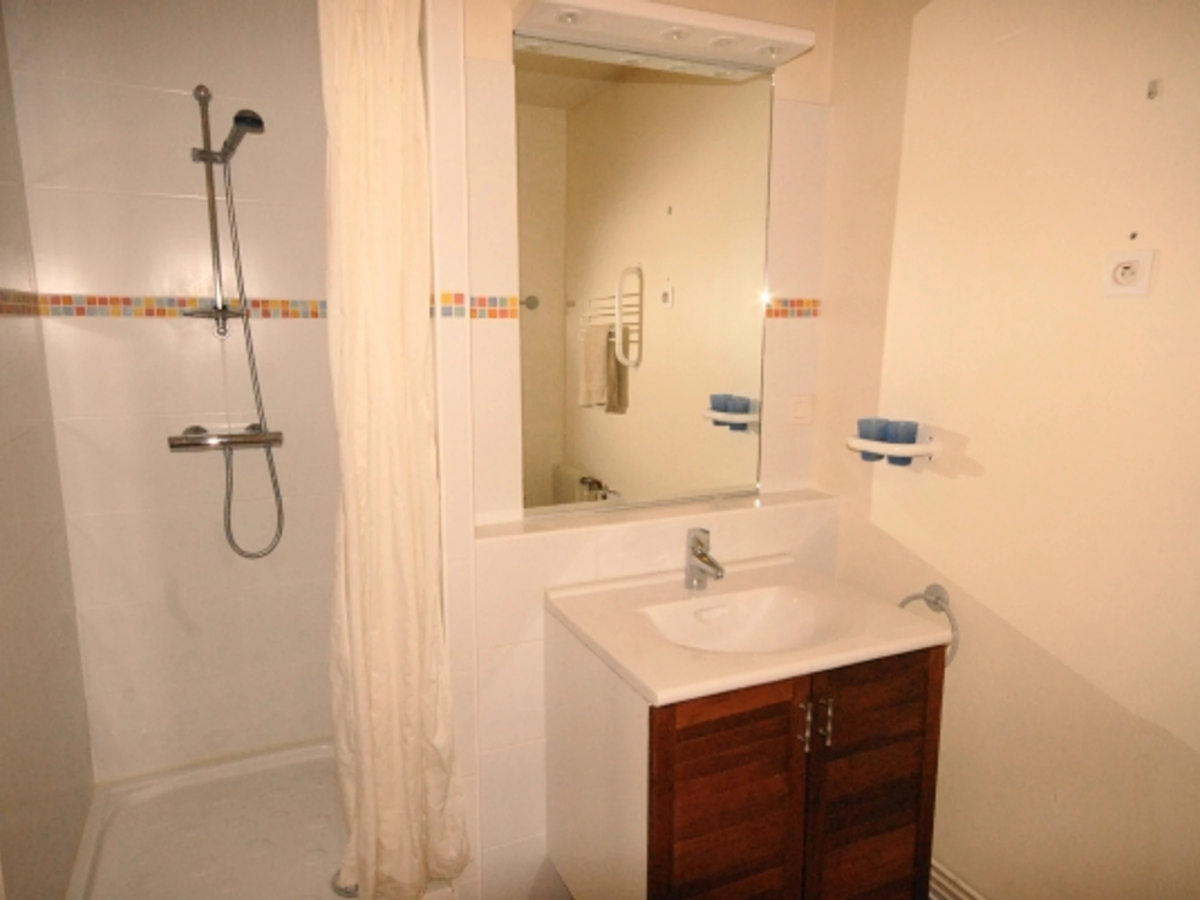 Salle d'eau douche, lavabo, WC, sèche cheveux.