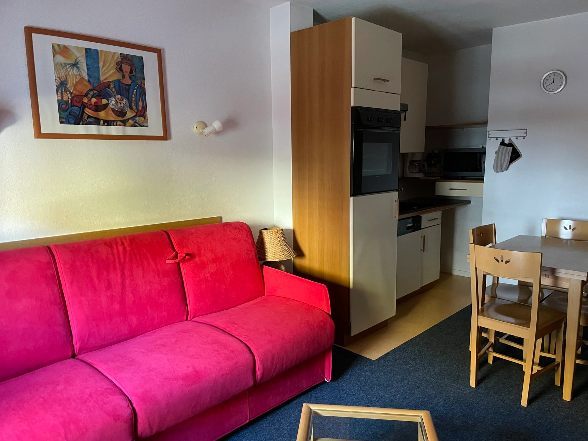 Residence LE CHALET avec piscine, studio pour 4 personnes, 2°étage, vue station, 29m², exposé nord-est, placard à ski chauffant, chauffage central.