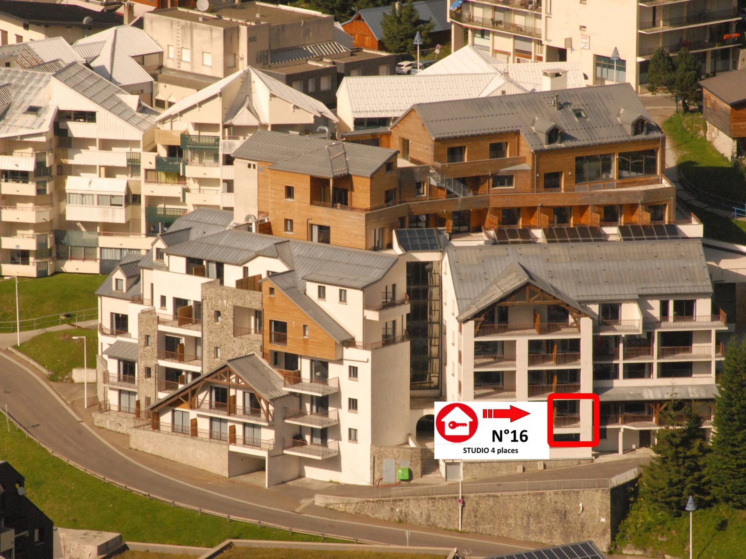 Résidence LE PORTILLO avec piscine, studio pour 4 personnes, de 29 m², exposé Sud-Ouest, vue pistes montagne, situé au 1°étage avec terrasse.