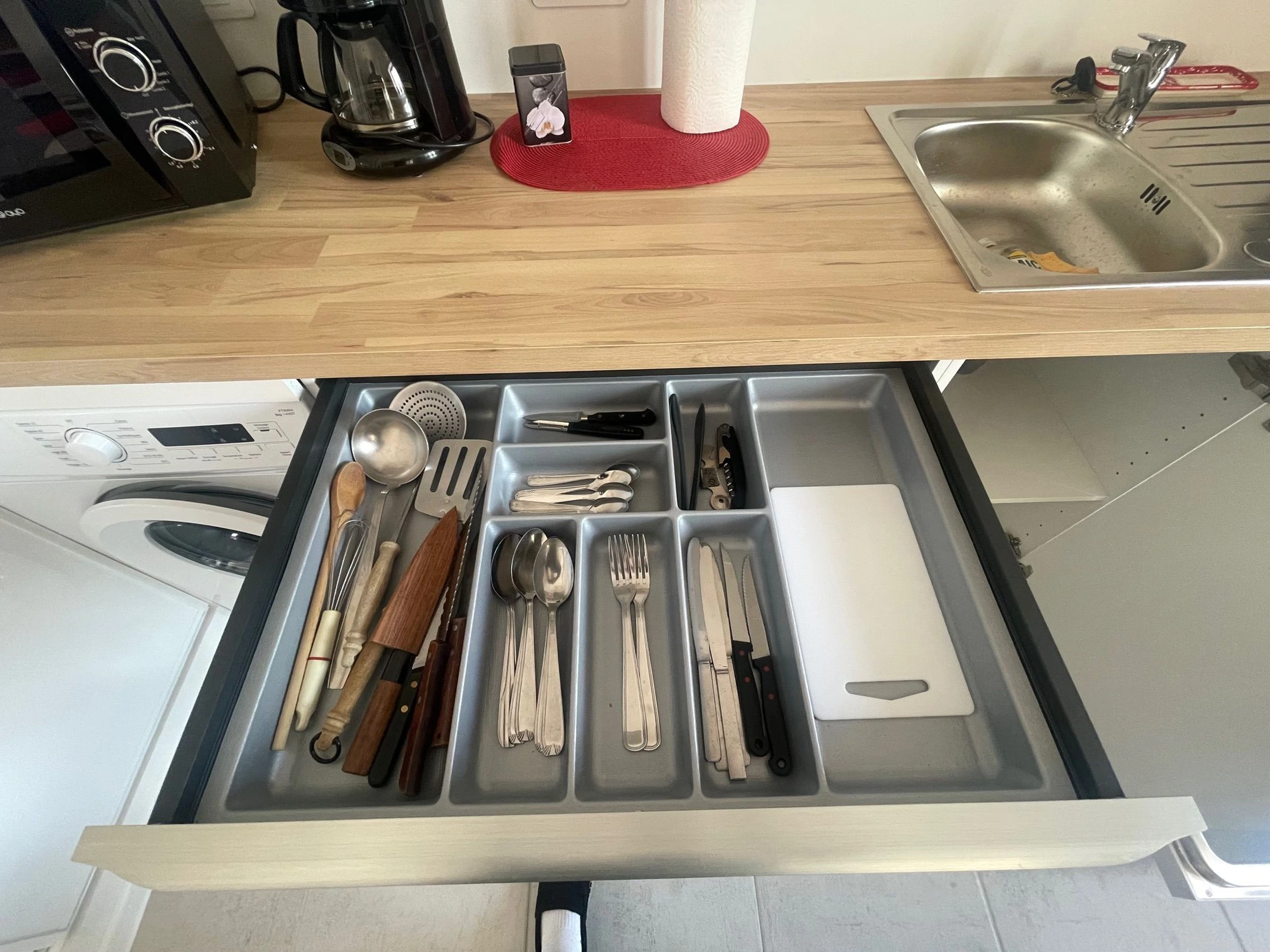 Cuisine équipée : plaques de cuisson, réfrigérateur/congélateur, lave-vaisselle, lave-linge, sèche-linge et étendoir, micro-ondes/grill, cafetière, bouilloire électrique et le nécessaire pour préparer vos repas en toute autonomie