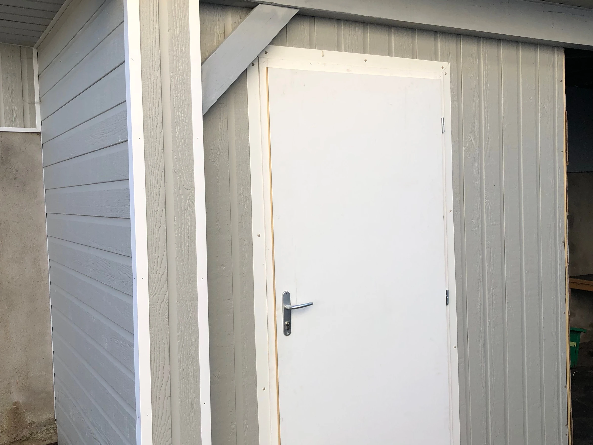 Hall d'entrée avec porte-manteaux mural et banc à chaussures.