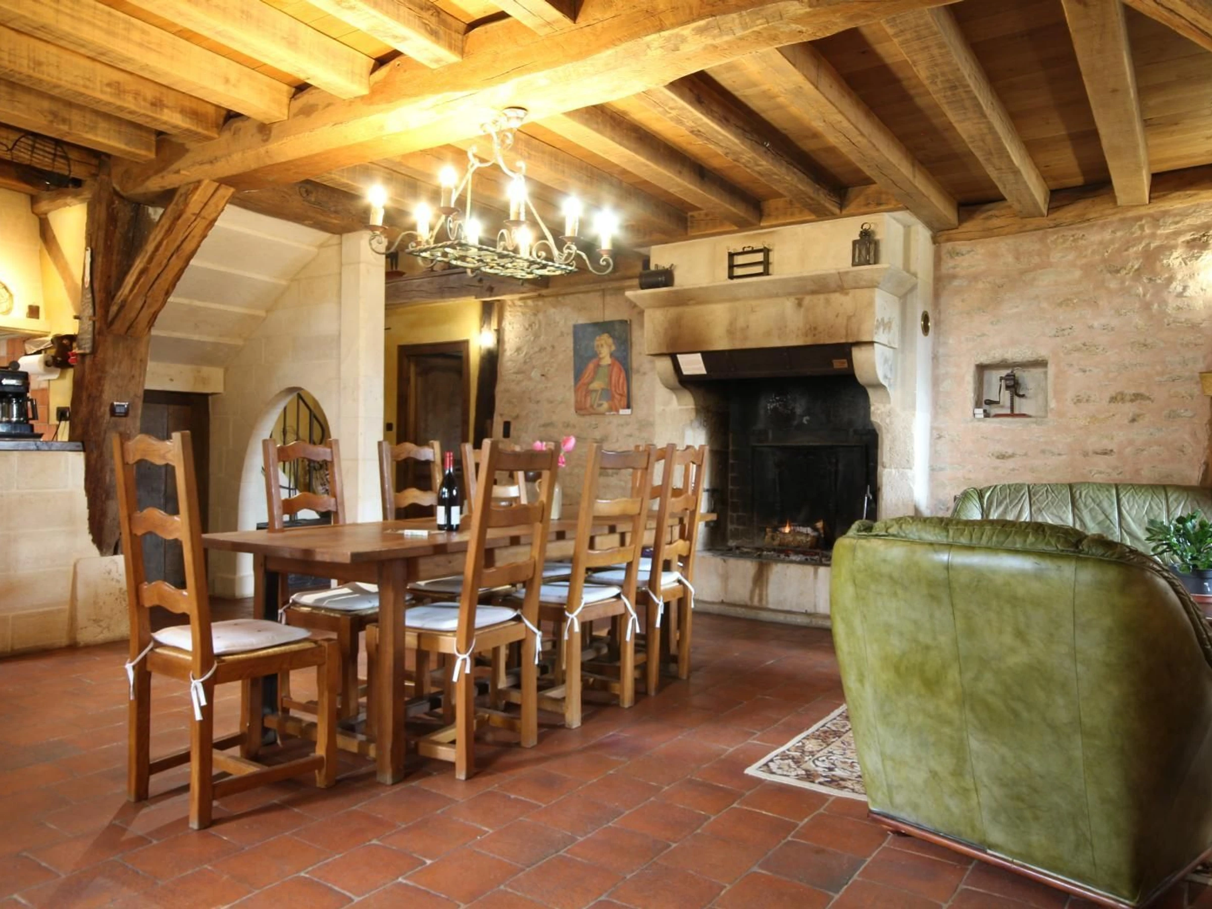 Le très grand séjour avec cuisine ouverte et espace salon , la cheminée monumentale et l'escalier tout aussi majestueux confère un charme d'antan indéniable.