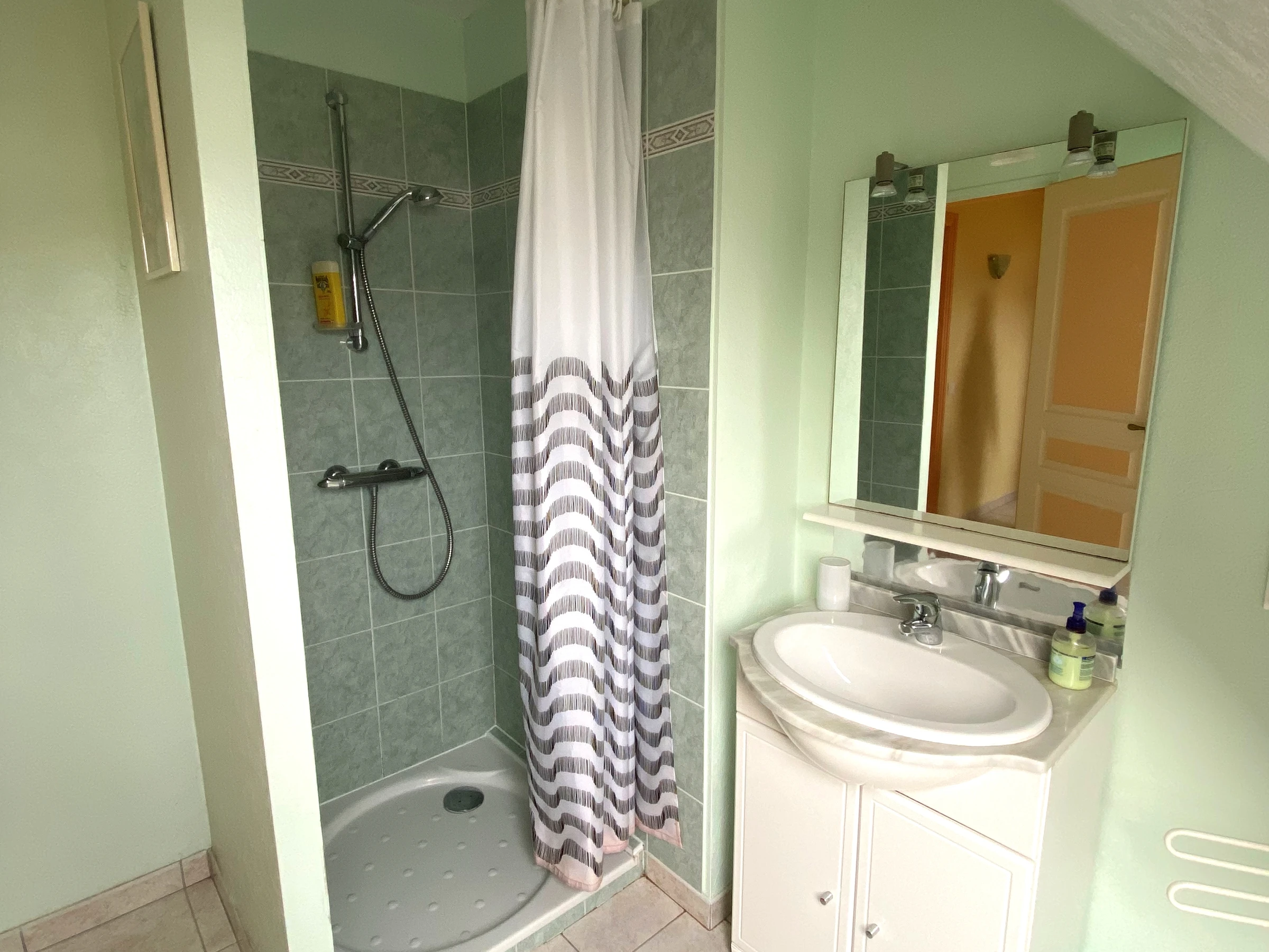 Coin salon: TV avec orange, internet, téléphone hifi. Livres et jeux. Douche, wc séparés.