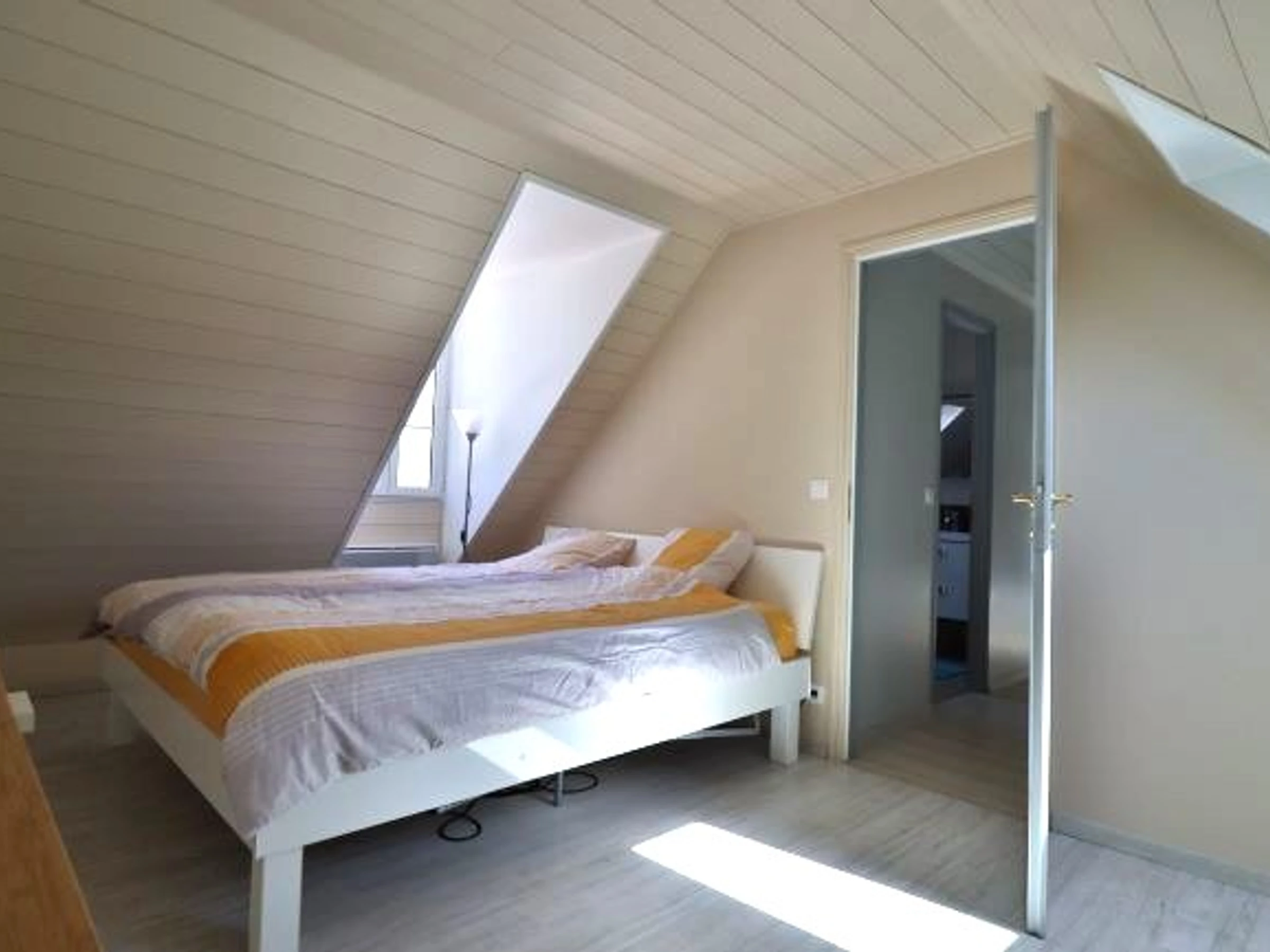 A l'étage , vous avez 2 chambres avec chacunes un lit en 140x190 spacieuses ainsi qu'une salle de douche et un wc séparé.