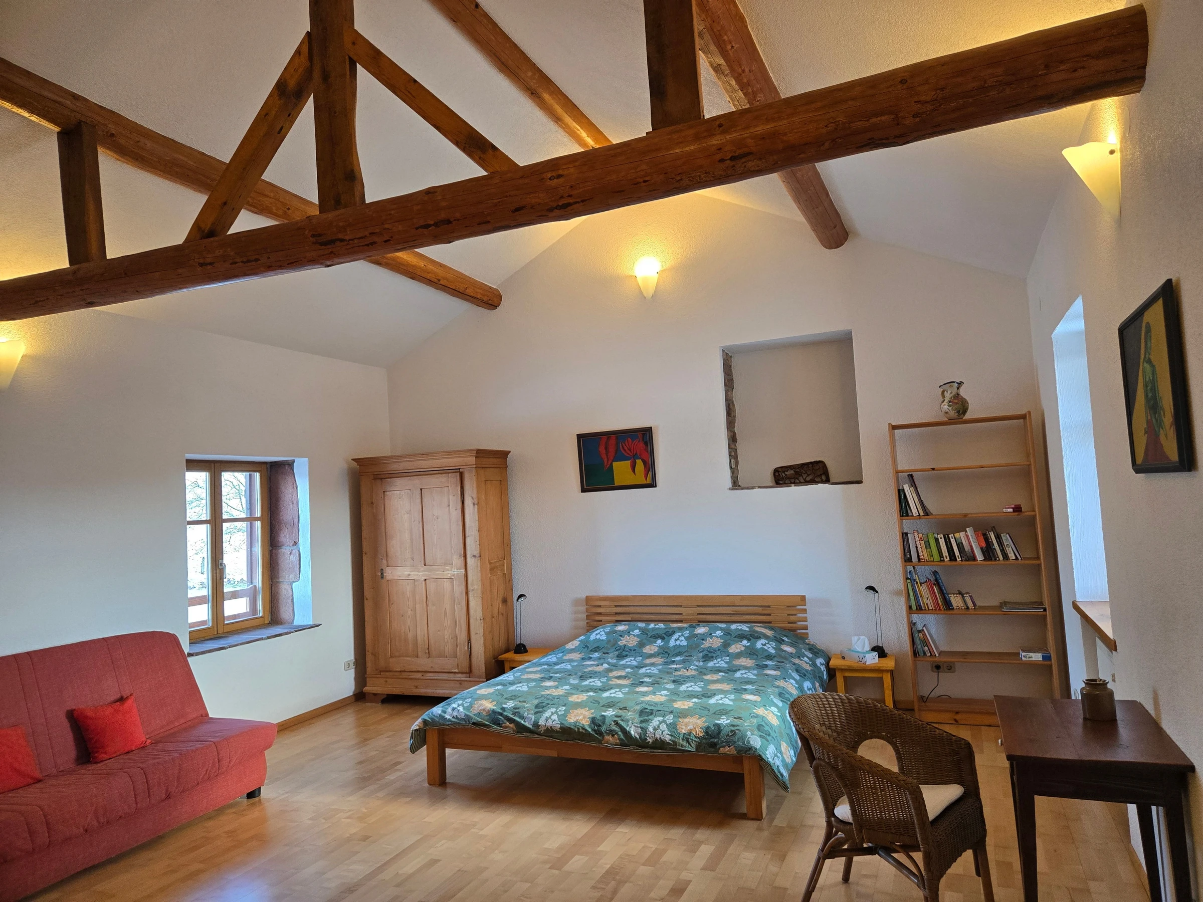 A l'étage, une chambre aménagée pour deux personnes avec couchage 180/200, salle d'eau avec WC.