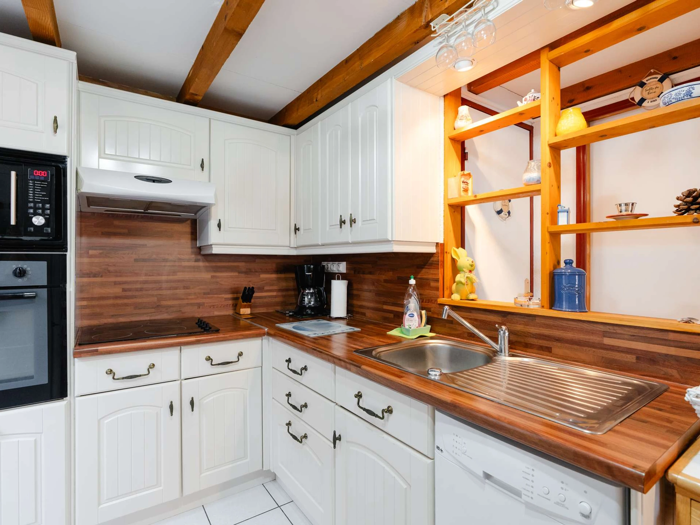 Il est composé au rez de chaussée, d’une véranda aménagée en séjour avec un canapé et télévision (chaines françaises et allemandes), puis un espace repas donnant sur la cuisine bien équipée (plaque vitrocéramique 4 feux avec hotte aspirante, micro-ondes, réfrigérateur avec compartiment congélateur, cafetière classique, bouilloire, grille-pain, lave-vaisselle) ; une salle d’eau avec douche italienne, lavabo, lave-linge, WC séparé, et une chambre avec lits superposés (140x190).