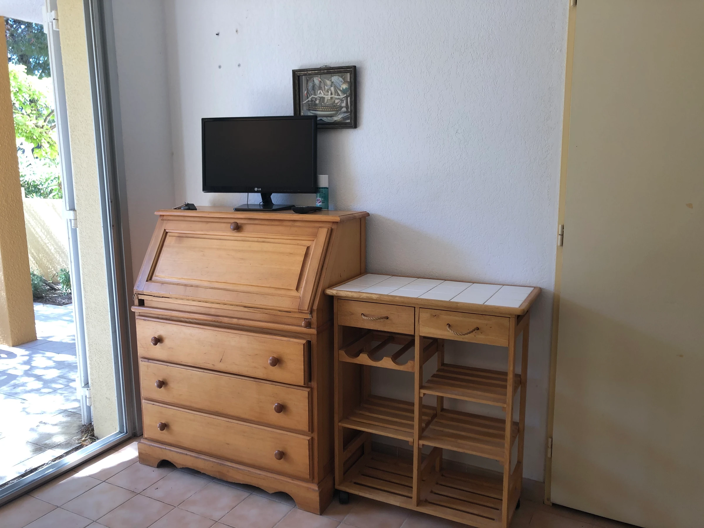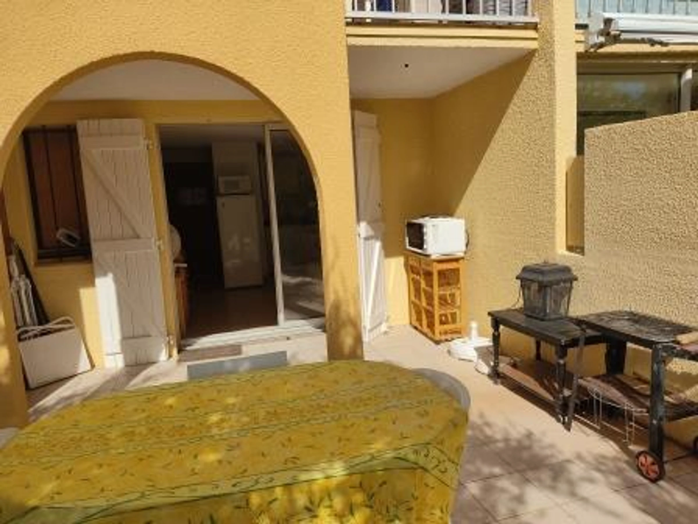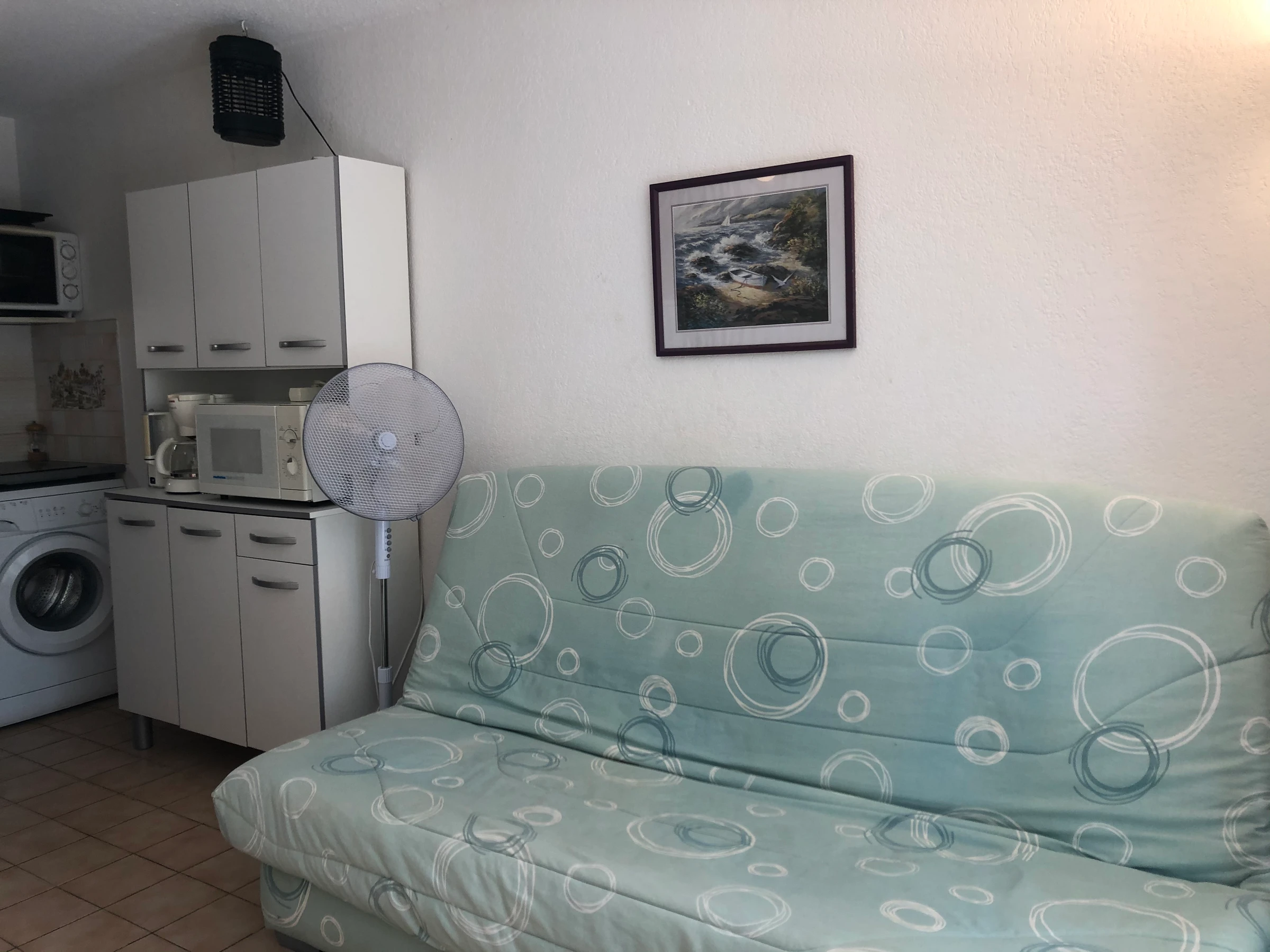 Séjour ( Clic clac 2Pers en 130) coin cuisine équipé et aménagé. Chambre ( climatiseur portable) : (2 lits superposés 90) Salle d'eau. WC indépendant.