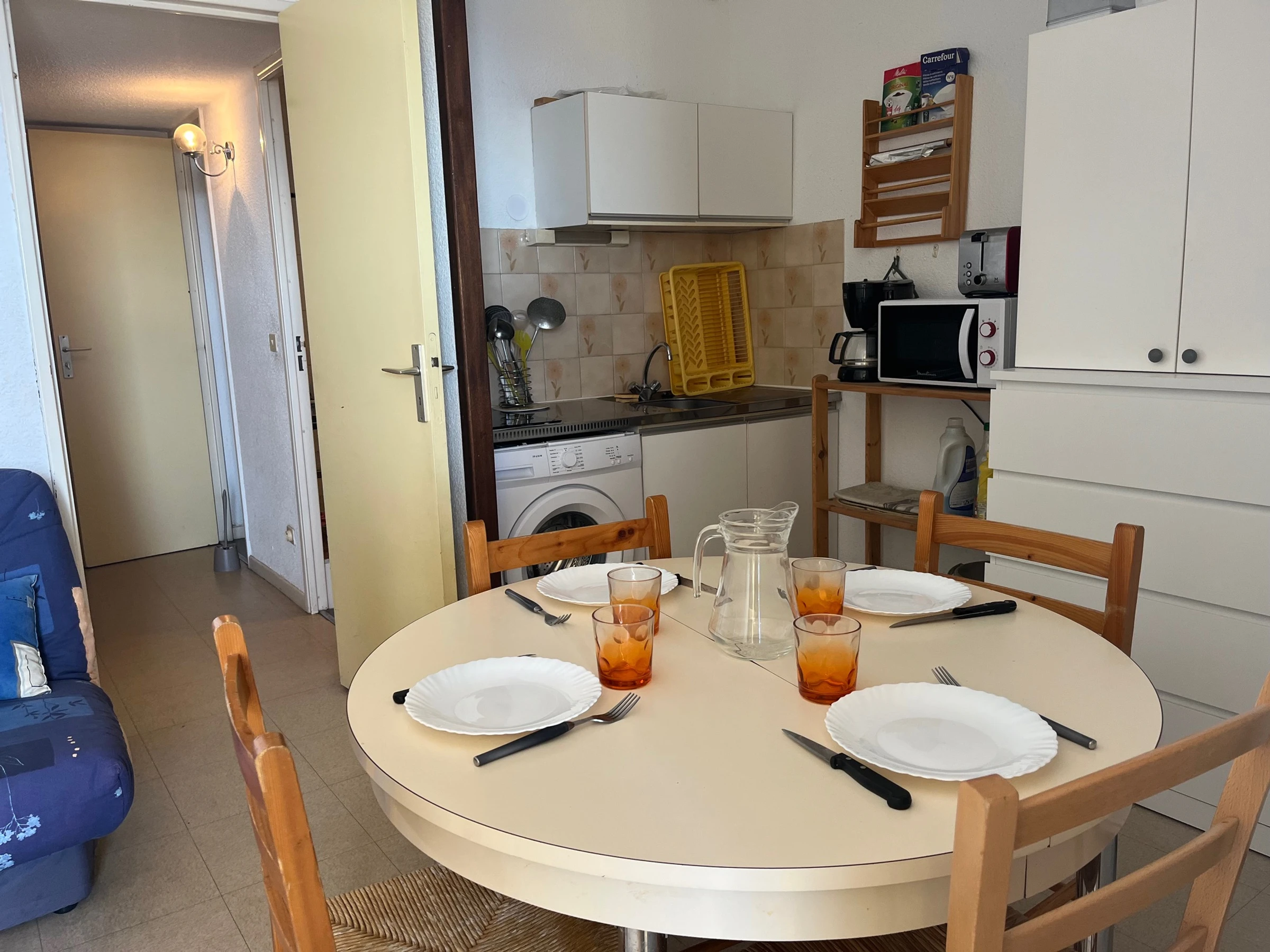 Parfait pour les petits budgets, au cœur de la station, T2 Cabine traditionnel & Fonctionnel de 27m2- idéal 4/5 pers , au 3éme étage , Ascenseur, Parking sécurisé , Belle & Grande PISCINE Collective. Commerces au pied de la résidence. Belle Vue panoramique sur le Port. Composé d'un Séjour ( Clic clac appoint 1 pers), TV ouvert sur couin cuisine équipé ( lave linge, Micro Onde, Réfrigérateur, plaques vitro) 1 Chambre ( 1 lit 2 pers) 1 coin Alcôve (2 x 80 superposes)