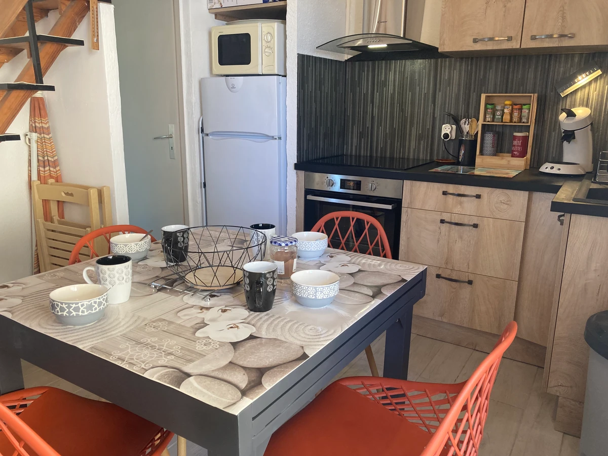 Equipements :senseo, micro ondes, plaque vitro, frigo congélateur, TV salon de jardin, climatisation.