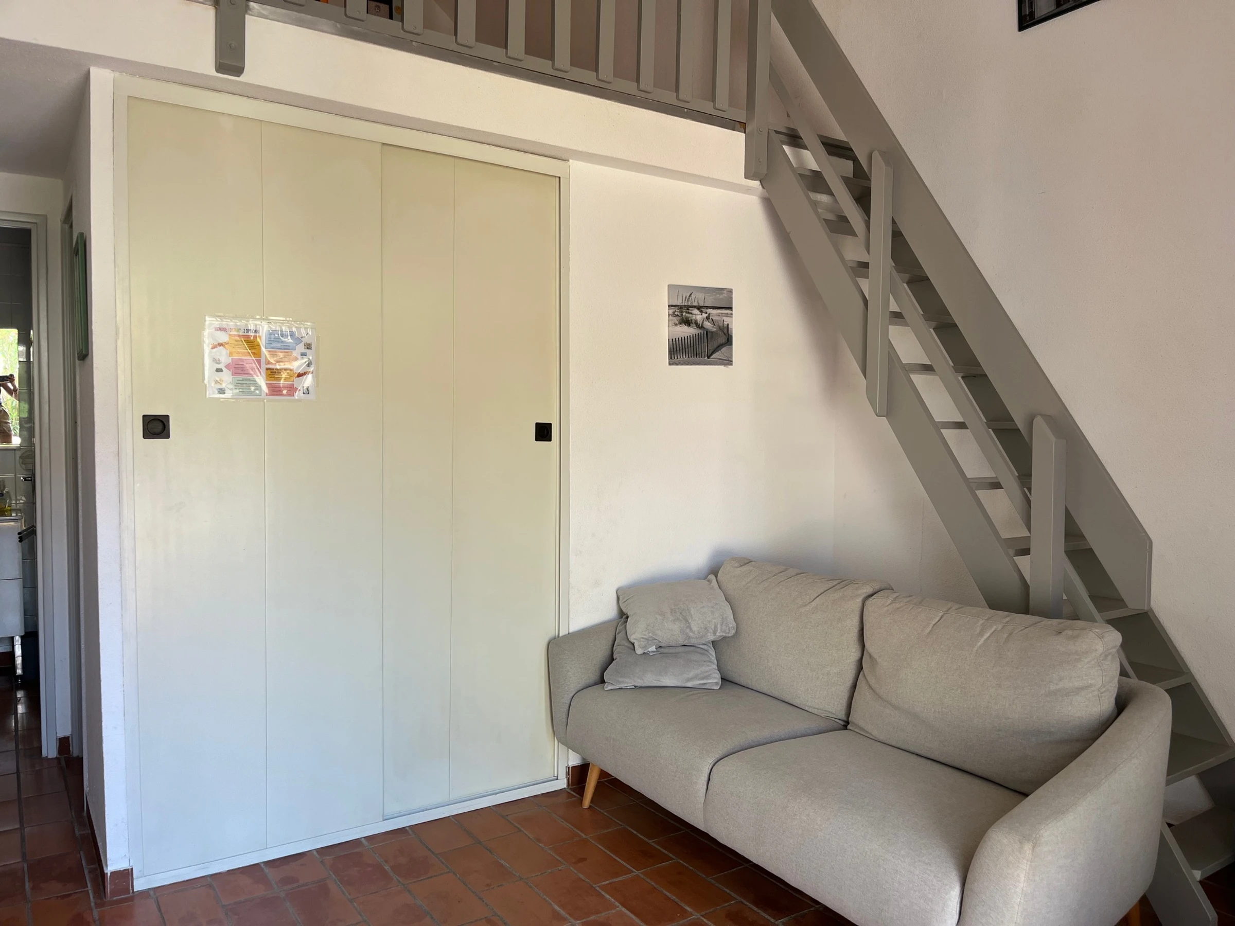 Au Cœur de la pinède et à proximité de la Plage du Grazel (300 m), Coquette Villa mitoyenne T2 Mezzanine de 35m2 idéale 6 pers et son Parking Privé.